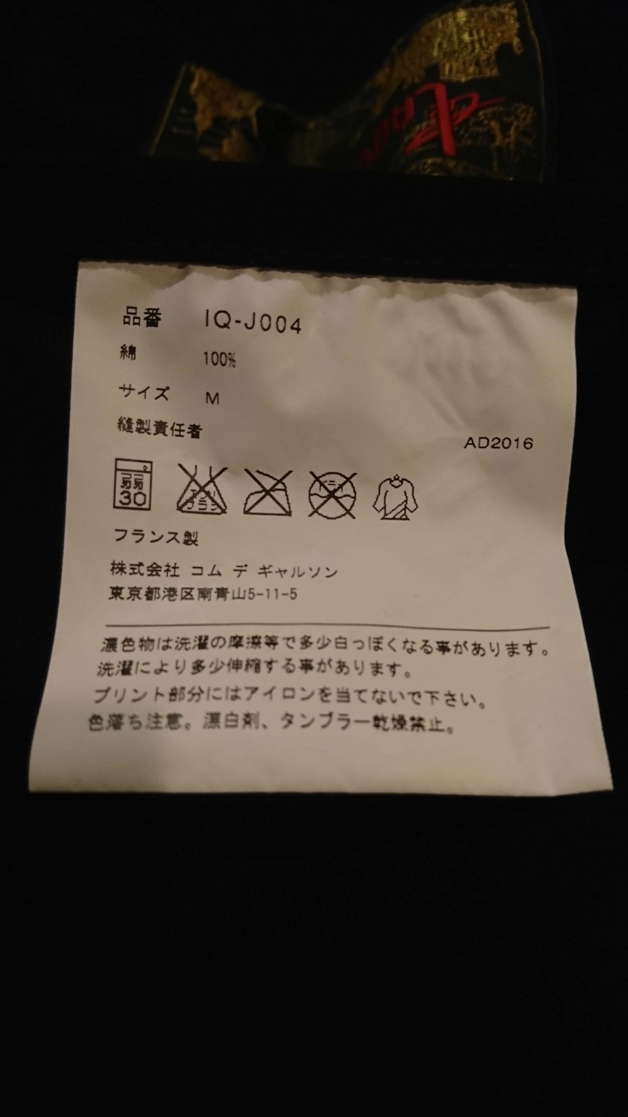 COMMEdesGARCONSのプリントが入っています。全体的に色褪せしてますが破れ等はありません。MADE IN FRANCE。