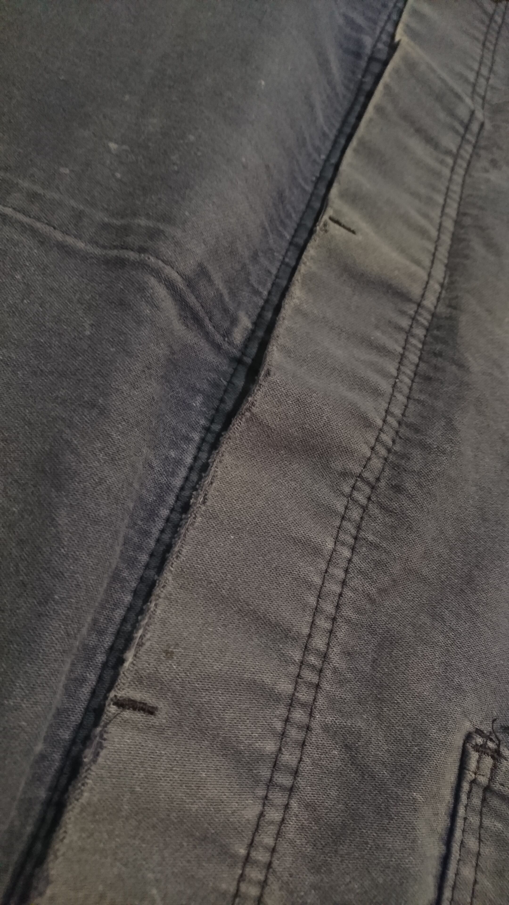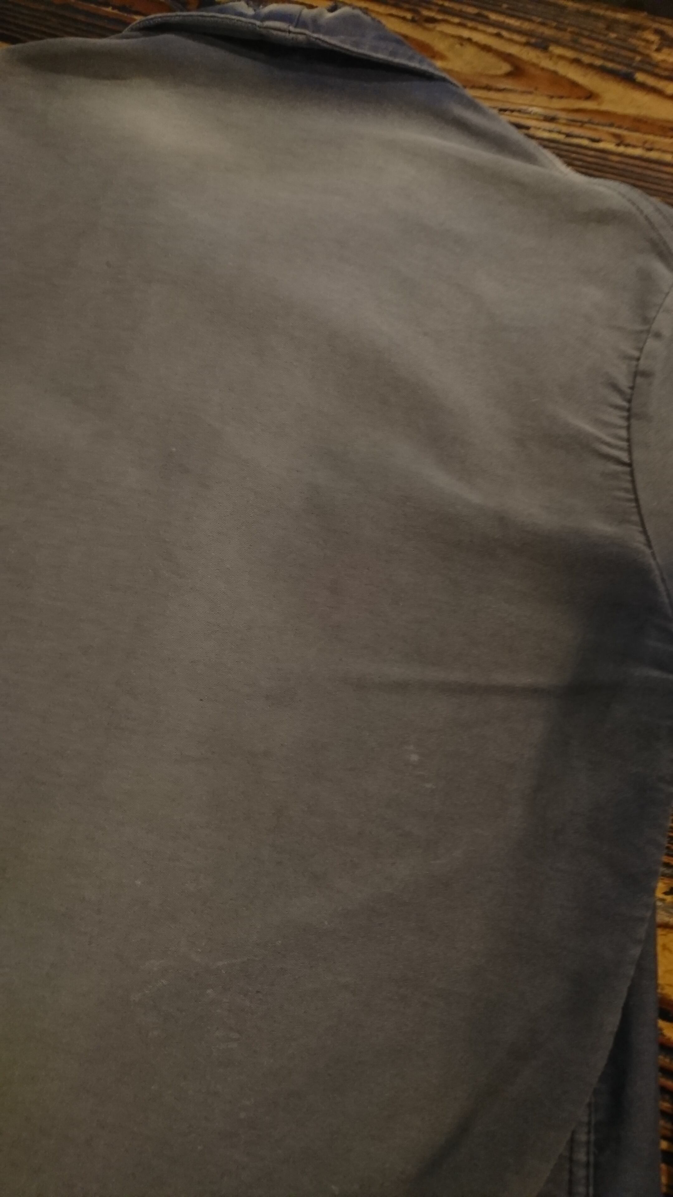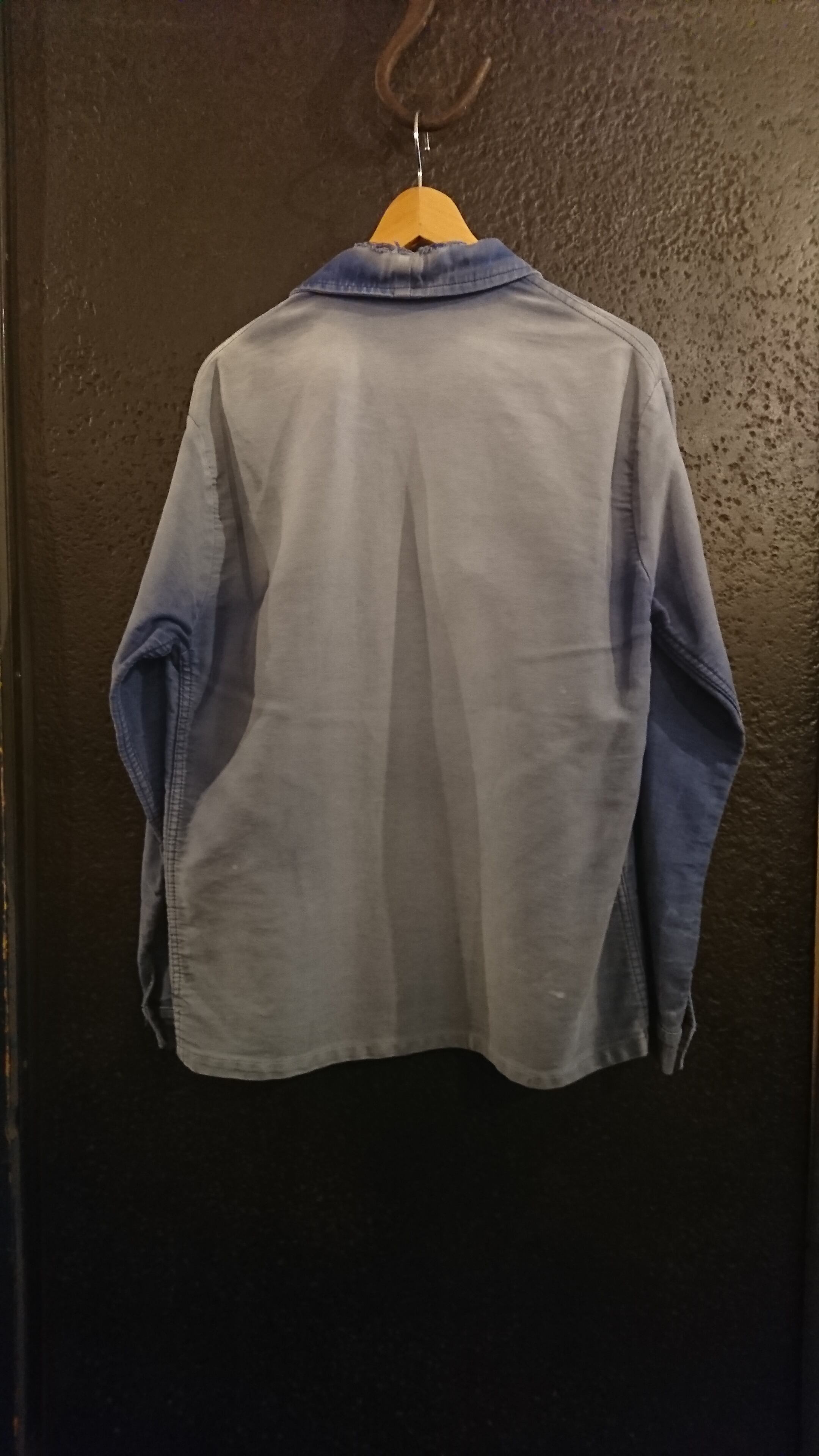 ヴィンテージ フレンチワークのモールスキンカバーオールになります。比翼仕立てのタイプで通常のタイプに比べ少ないかと。襟部分に傷、全体的に色褪せ、ペンキ汚れ等ありますが着用に問題はありません。フレンチワーク モールスキンの着こまれ経年変化したこの雰囲気はアメリカ物のワークアイテムとはまた違う格好良さプラス上品さすら感じれます。
