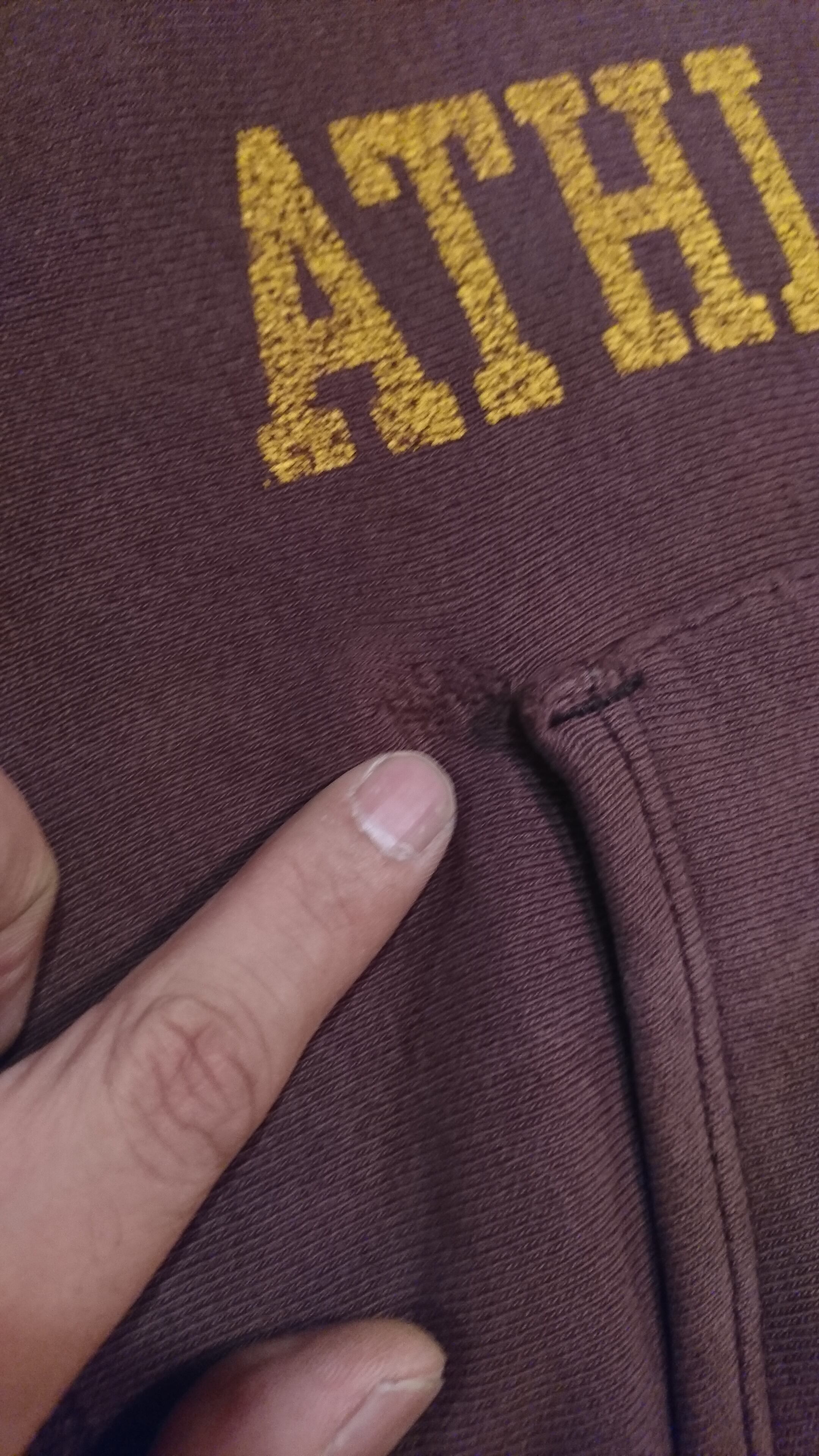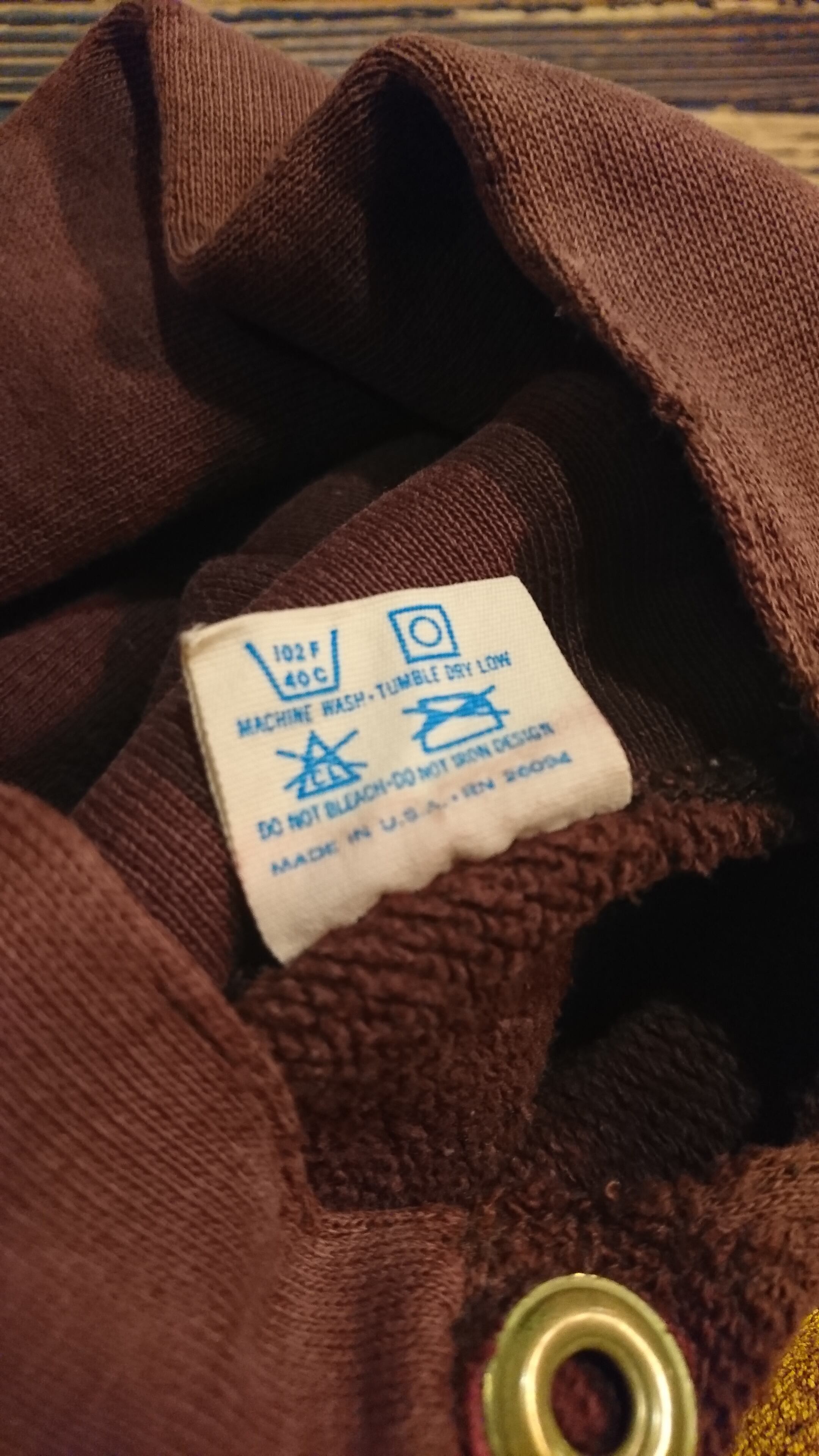 ブラウンカラーのフードで三連プリント。