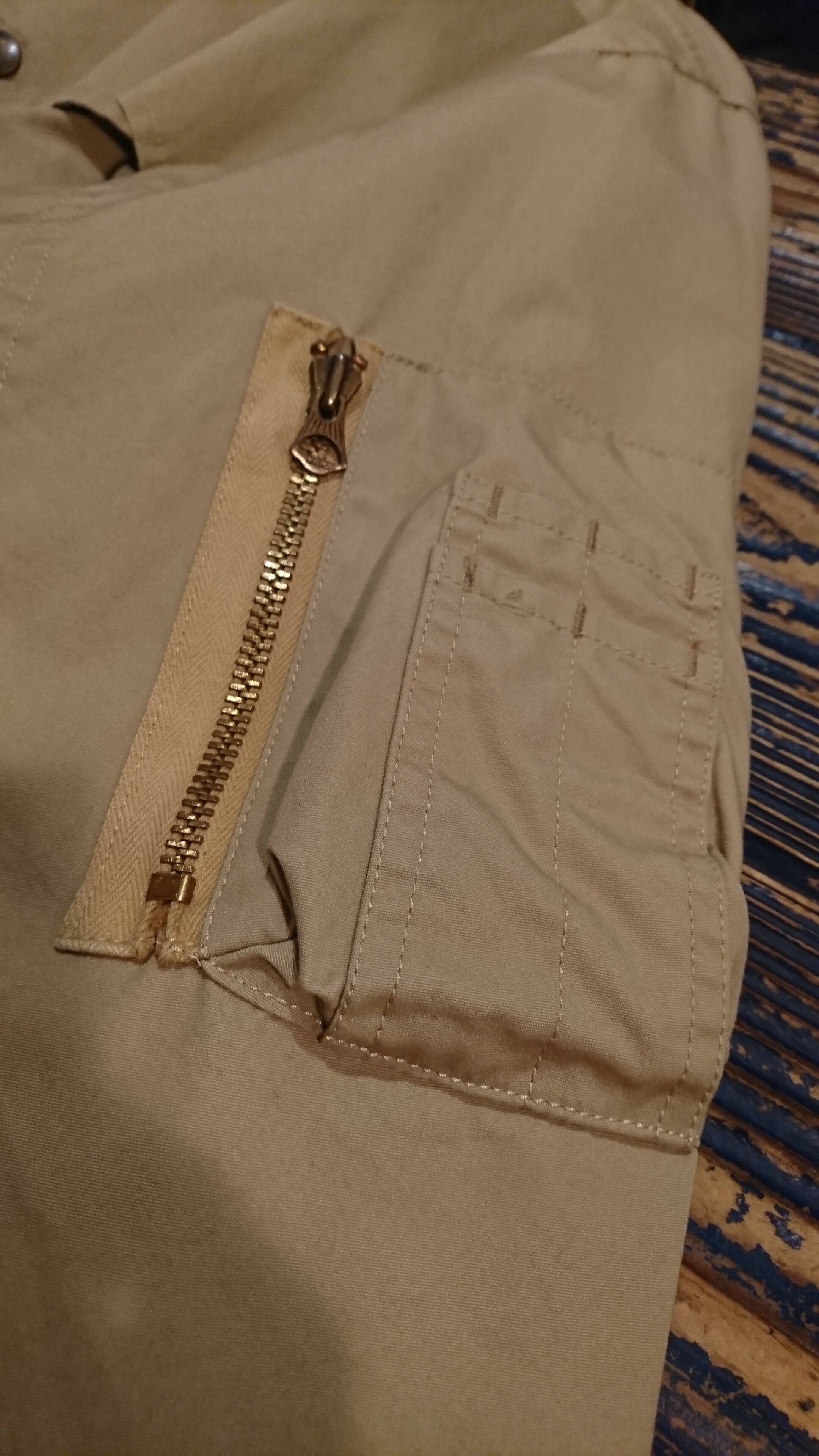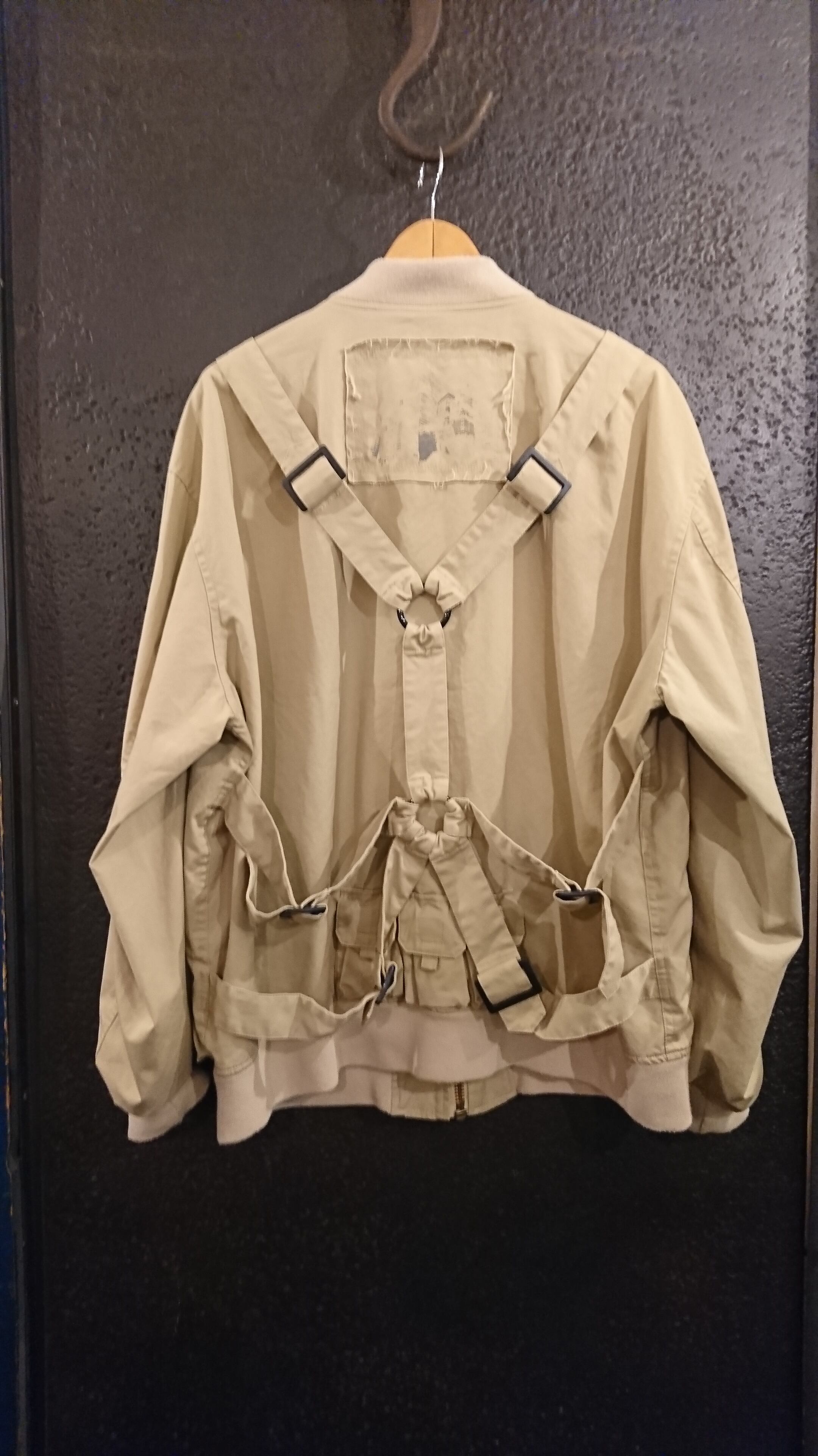 MA-1のようなデザインでフロントと右袖、背中にパッチつきます。背中のハーネスがインパクトあり。コットン素材で中綿は無し。