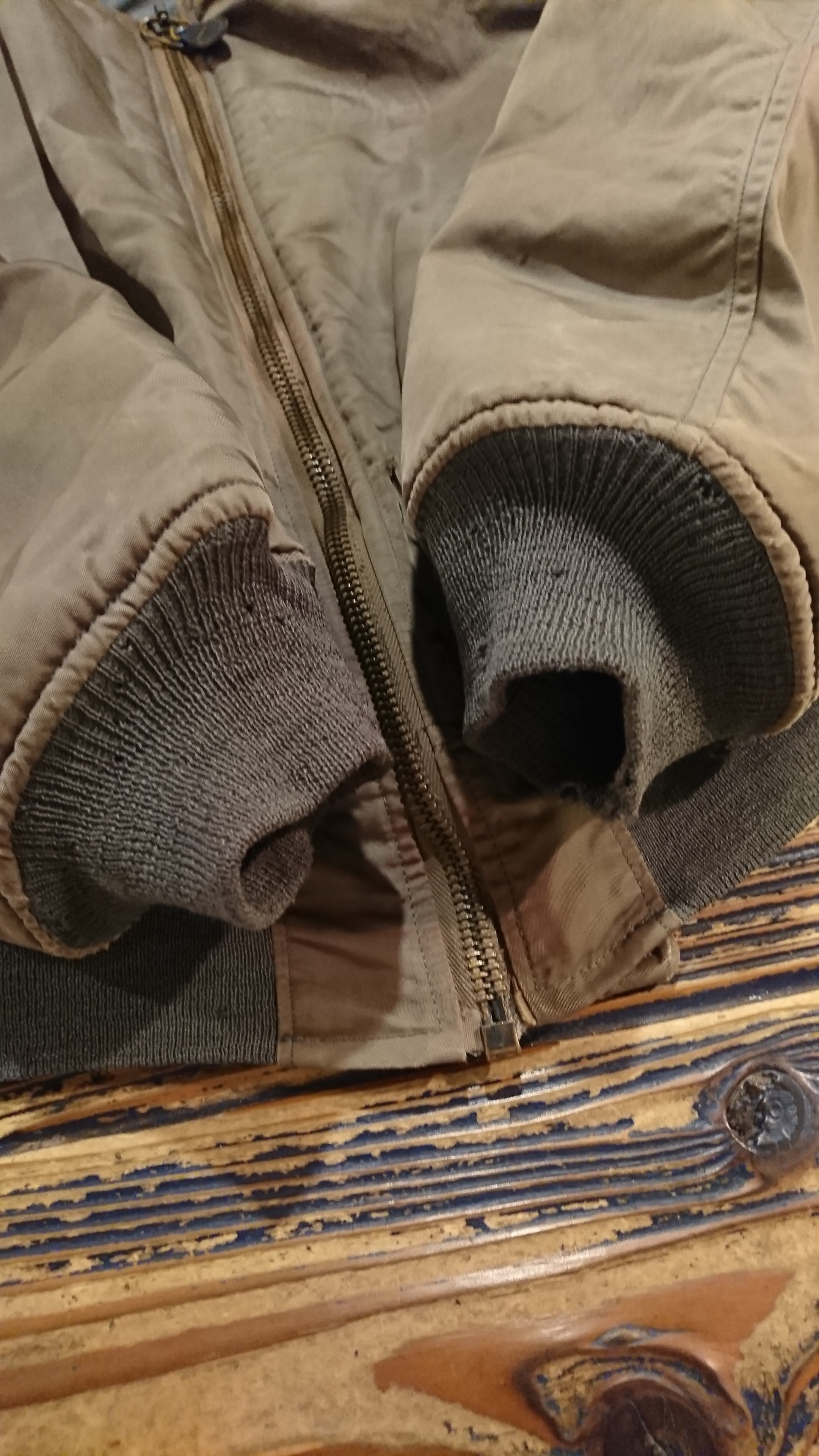 リブ部分に傷、シェル部分の左胸上にピンホール、色褪せ等ありますが着用に問題はありません。