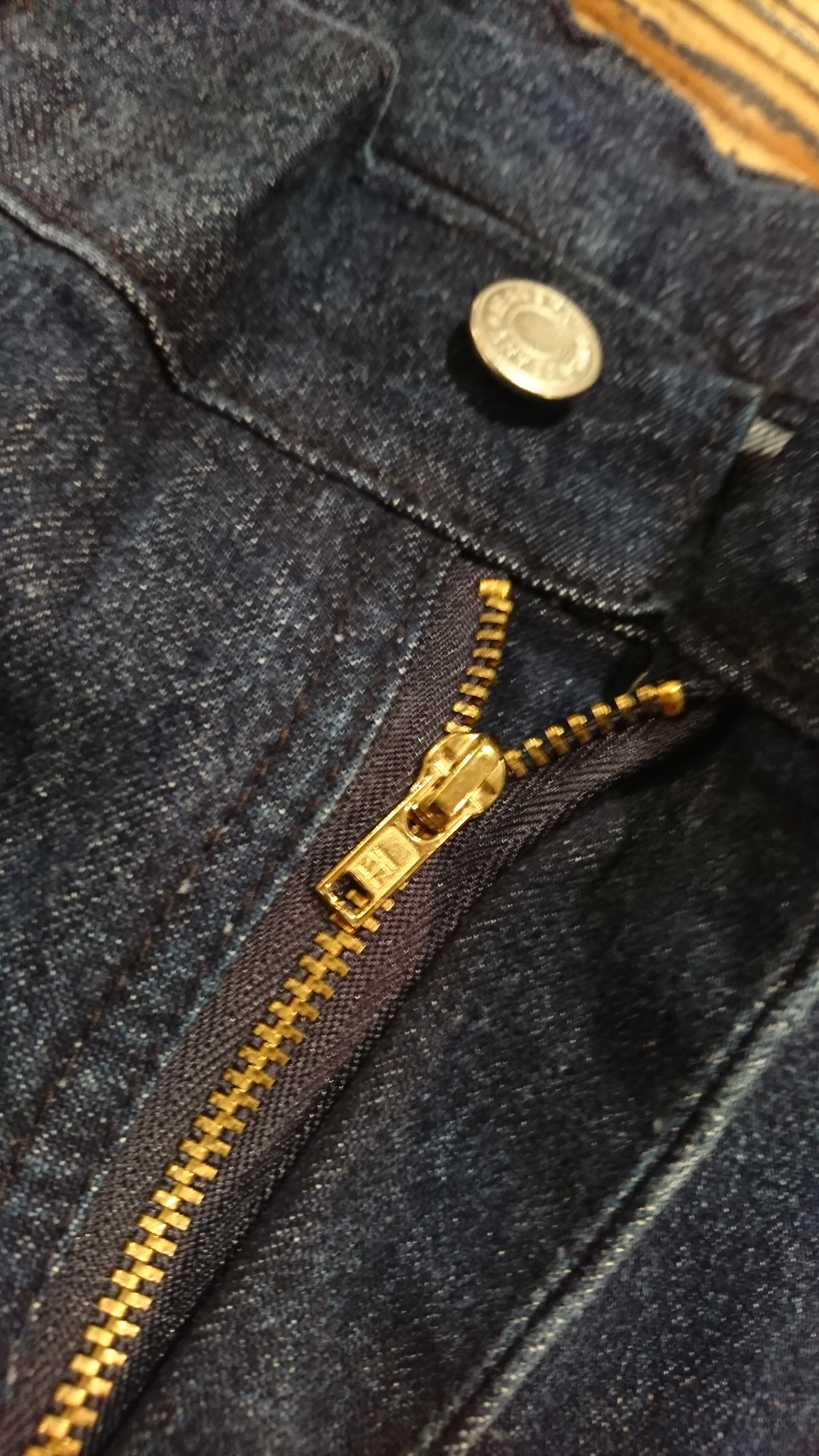 まるでデニム製のチノパンツを履いてるかのよう。フロントはジッパー使用で5ポケット。