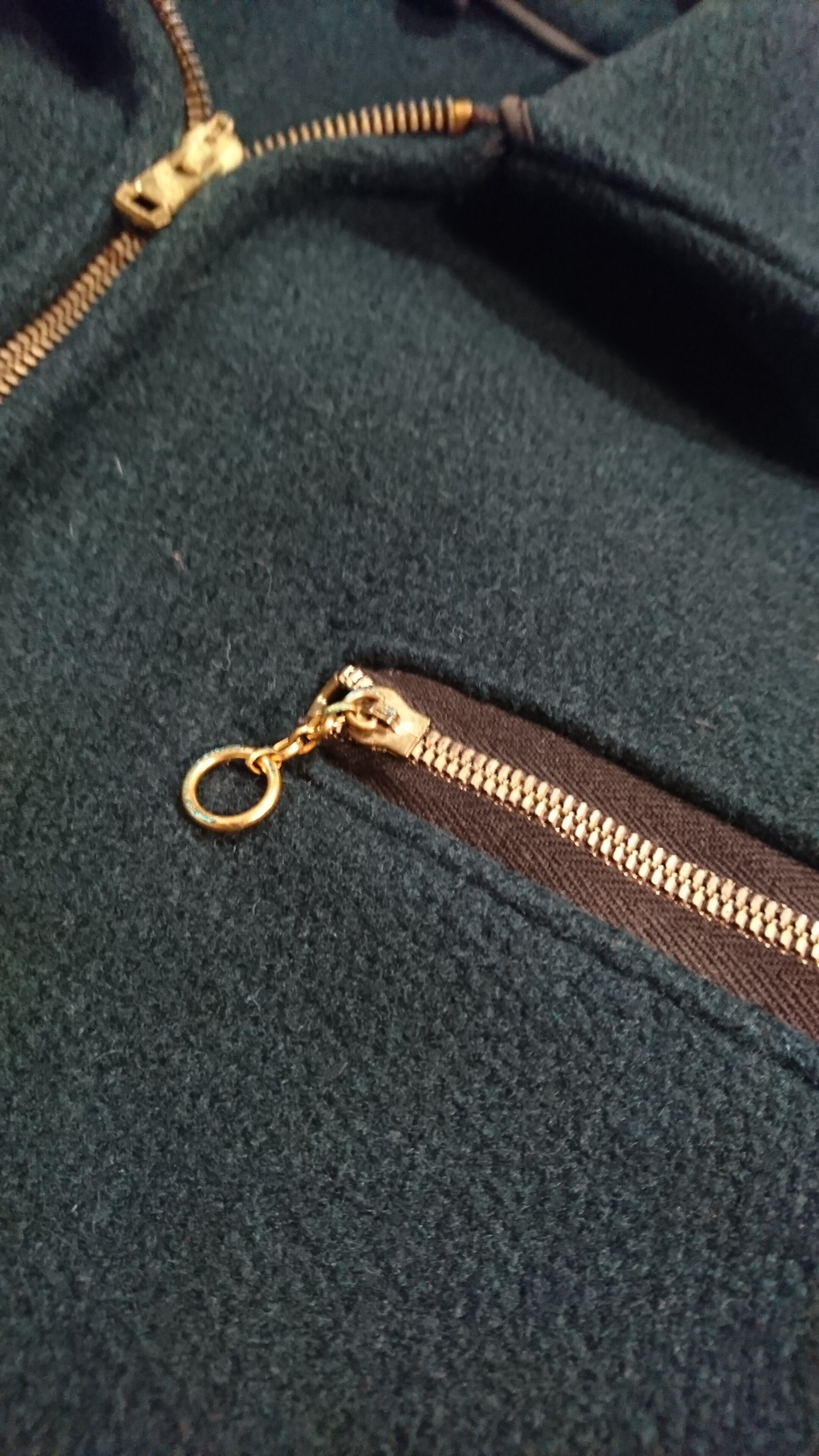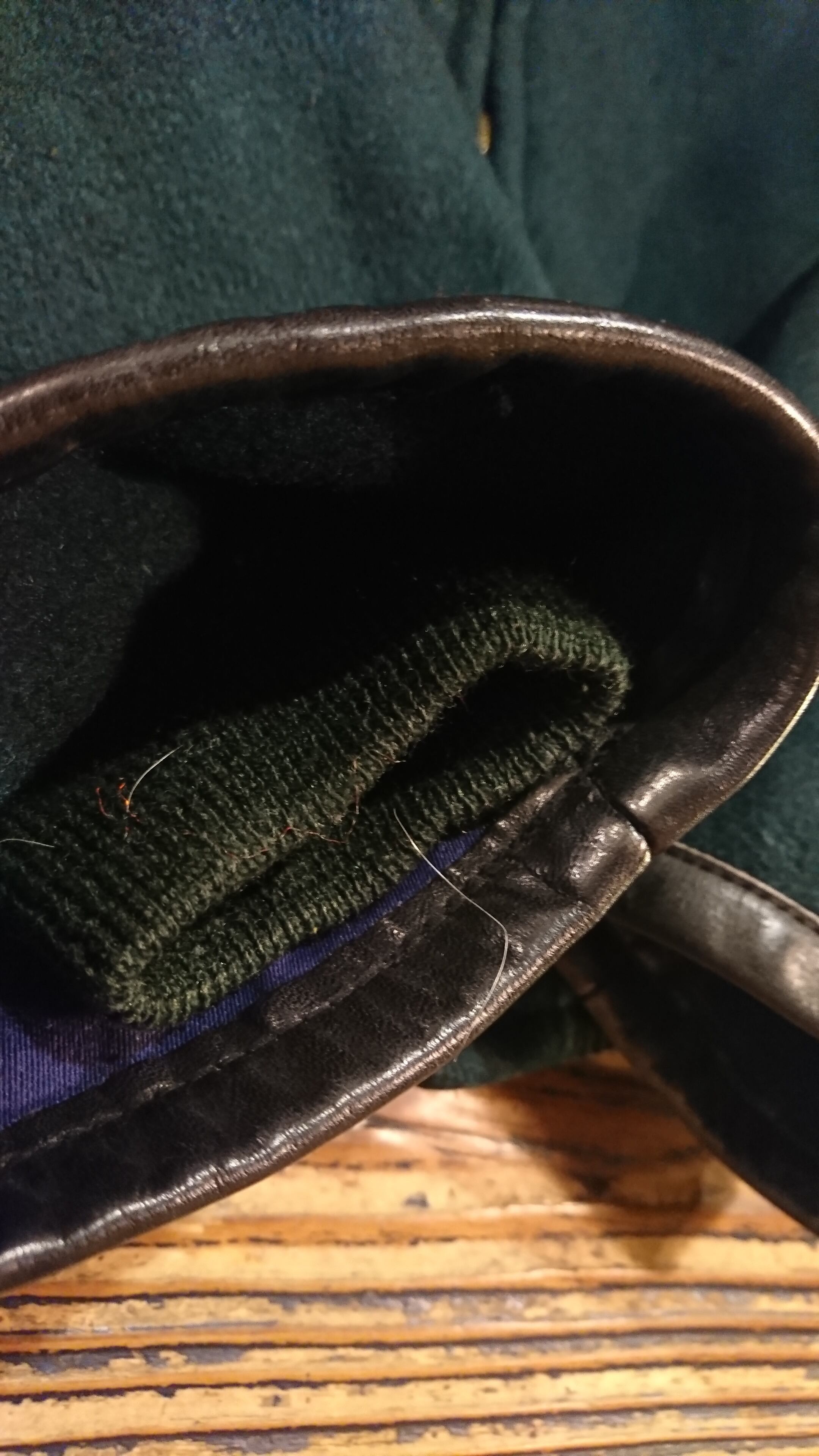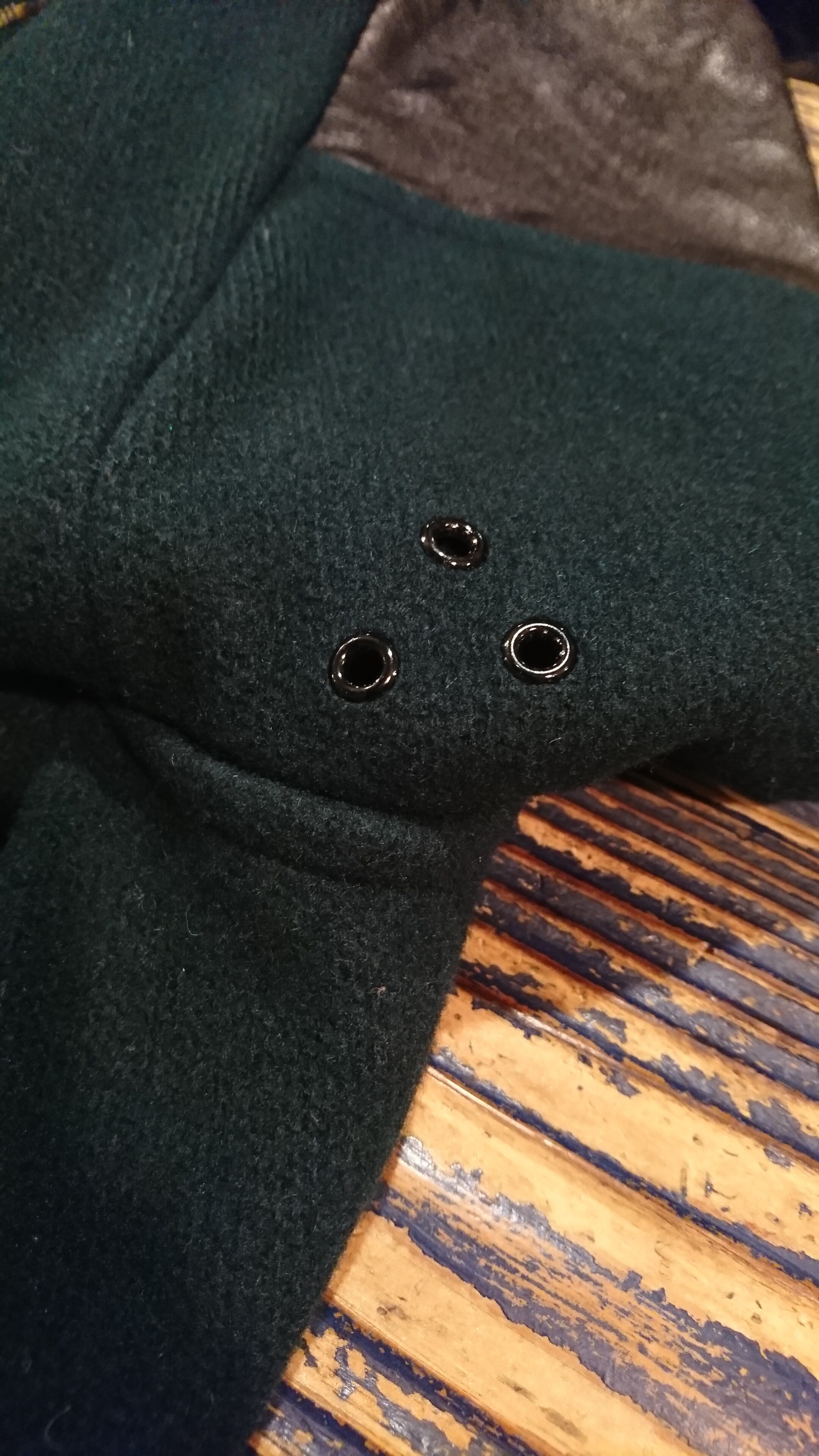 グリーンカラーで肘から袖口までレザー切り替え。ポケットの淵はレザーパイピング。