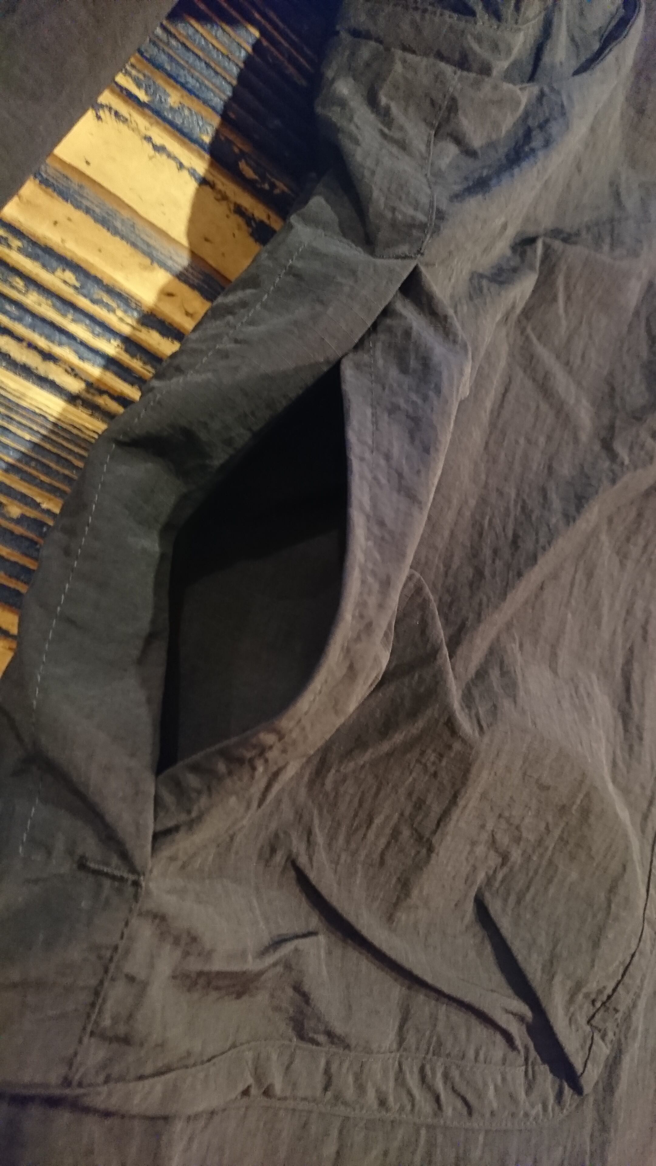 張り巡らし、背面のポケットの形状はヴィンテージの米軍C-1ベストのデザインを落とし込んでいます。シワ感の強い撥水リップナイロンを使用。