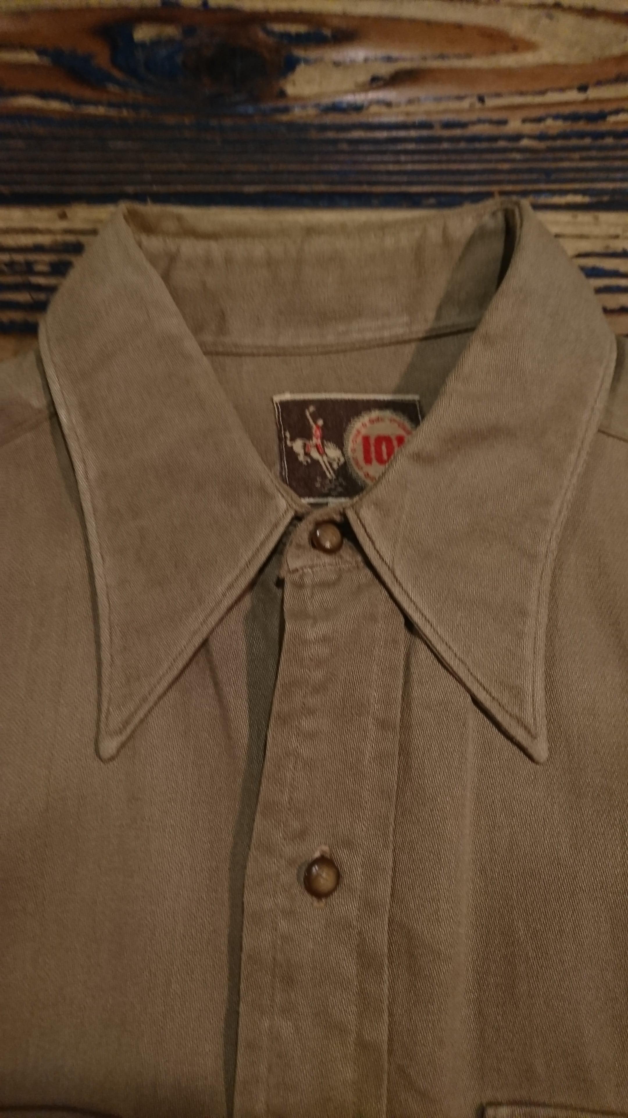 40年代 101ブランドのウエスタンシャツになります。コットンサテン生地で前の持ち主かデッド