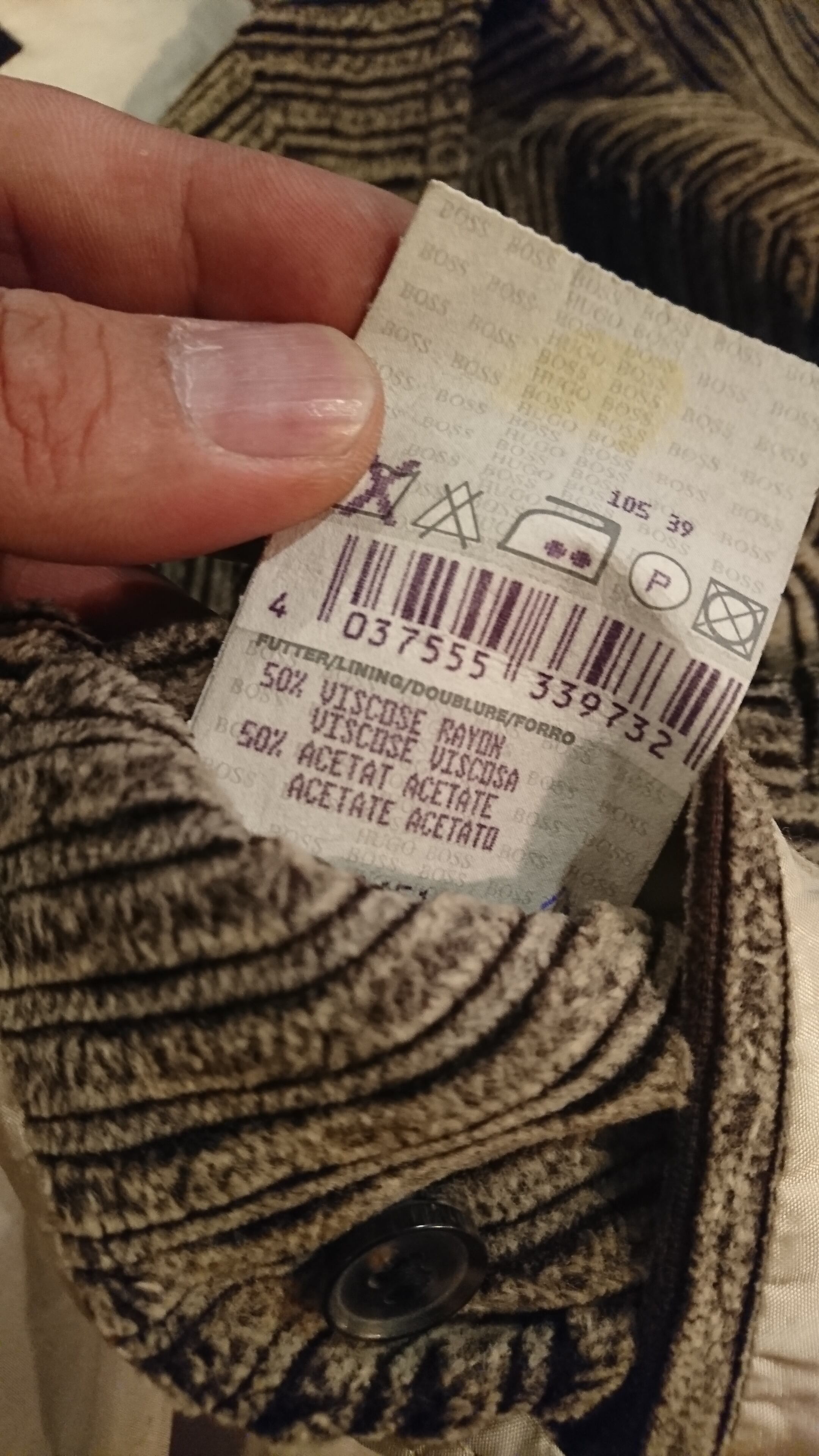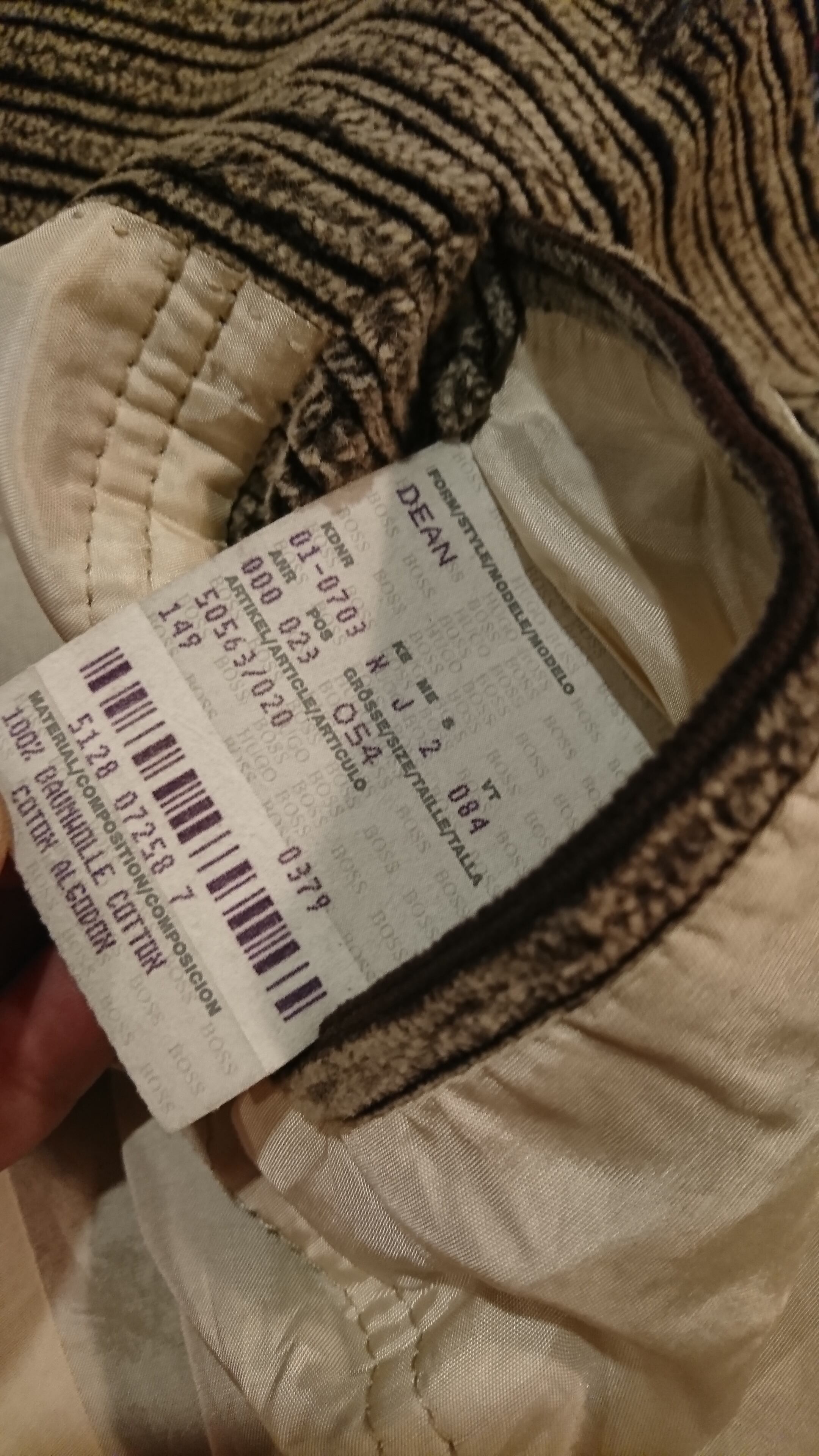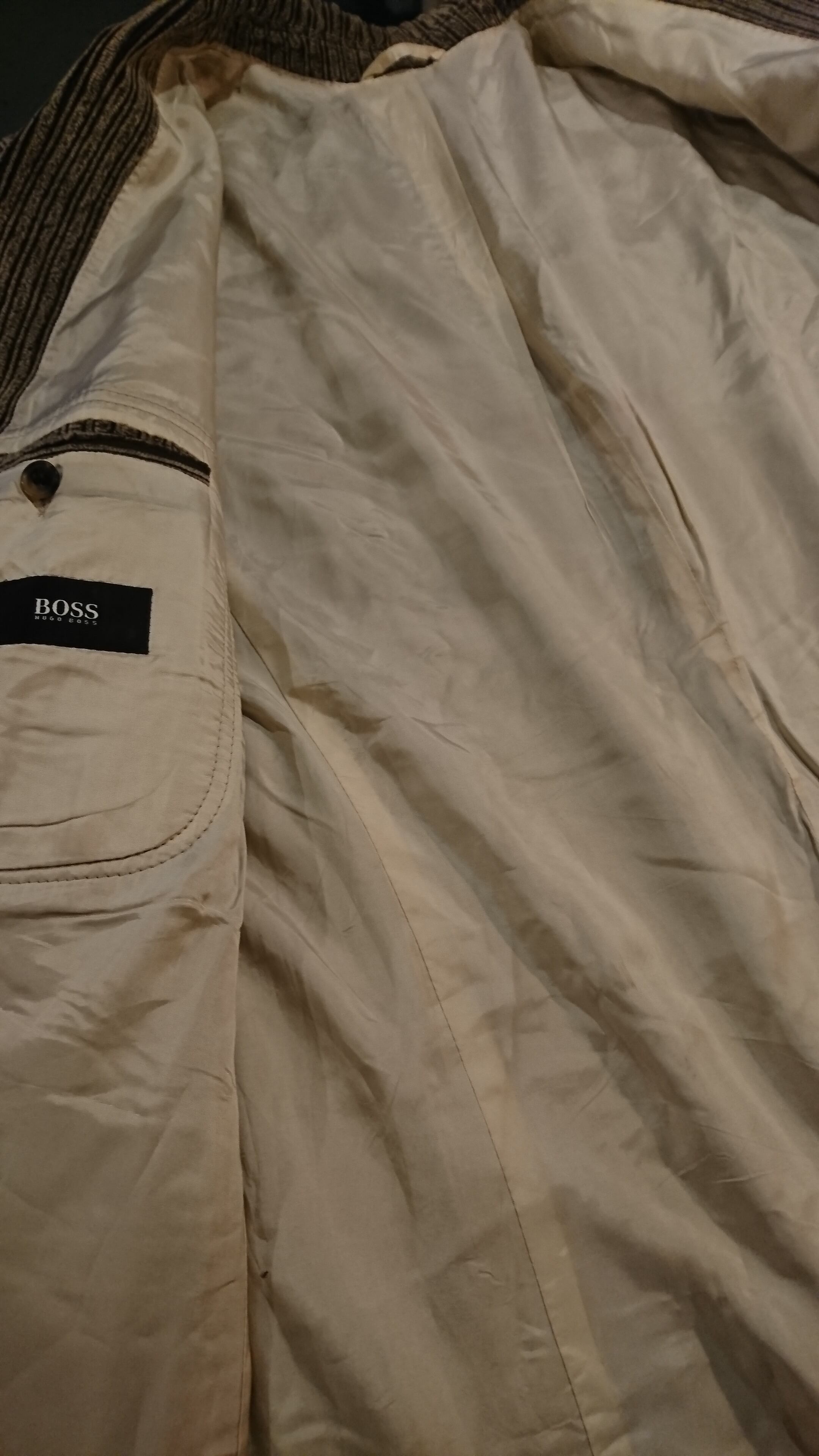 HUGO BOSSのテーラードジャケットになります。太畝のコーデュロイで両袖肘下から袖口にかけてナイロンで切り替え。ガシっとした質感ではなく