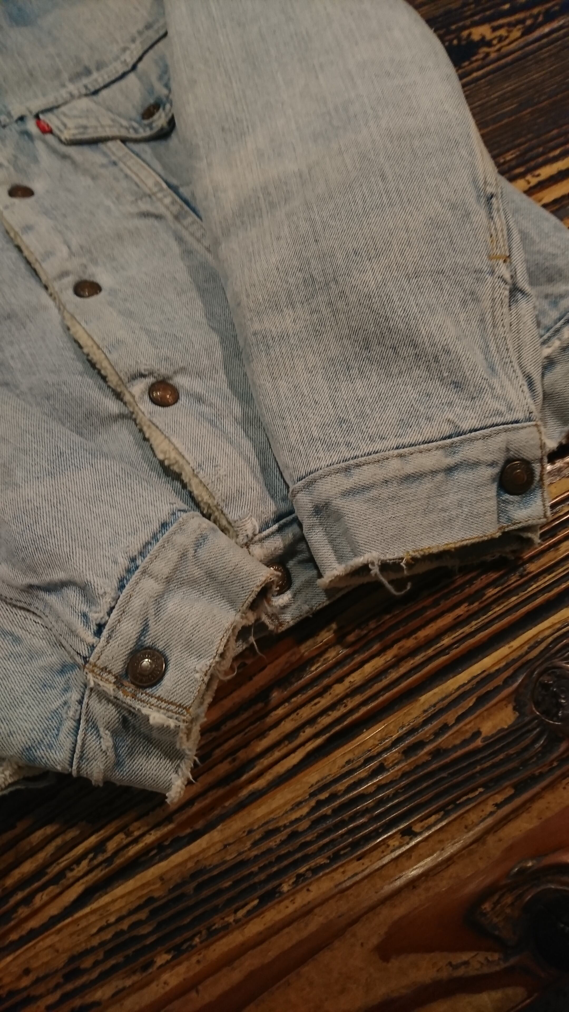 両袖口、裾の擦れ傷と両袖カフス上にステッチ入れ直してる箇所がありますが、そこも雰囲気。