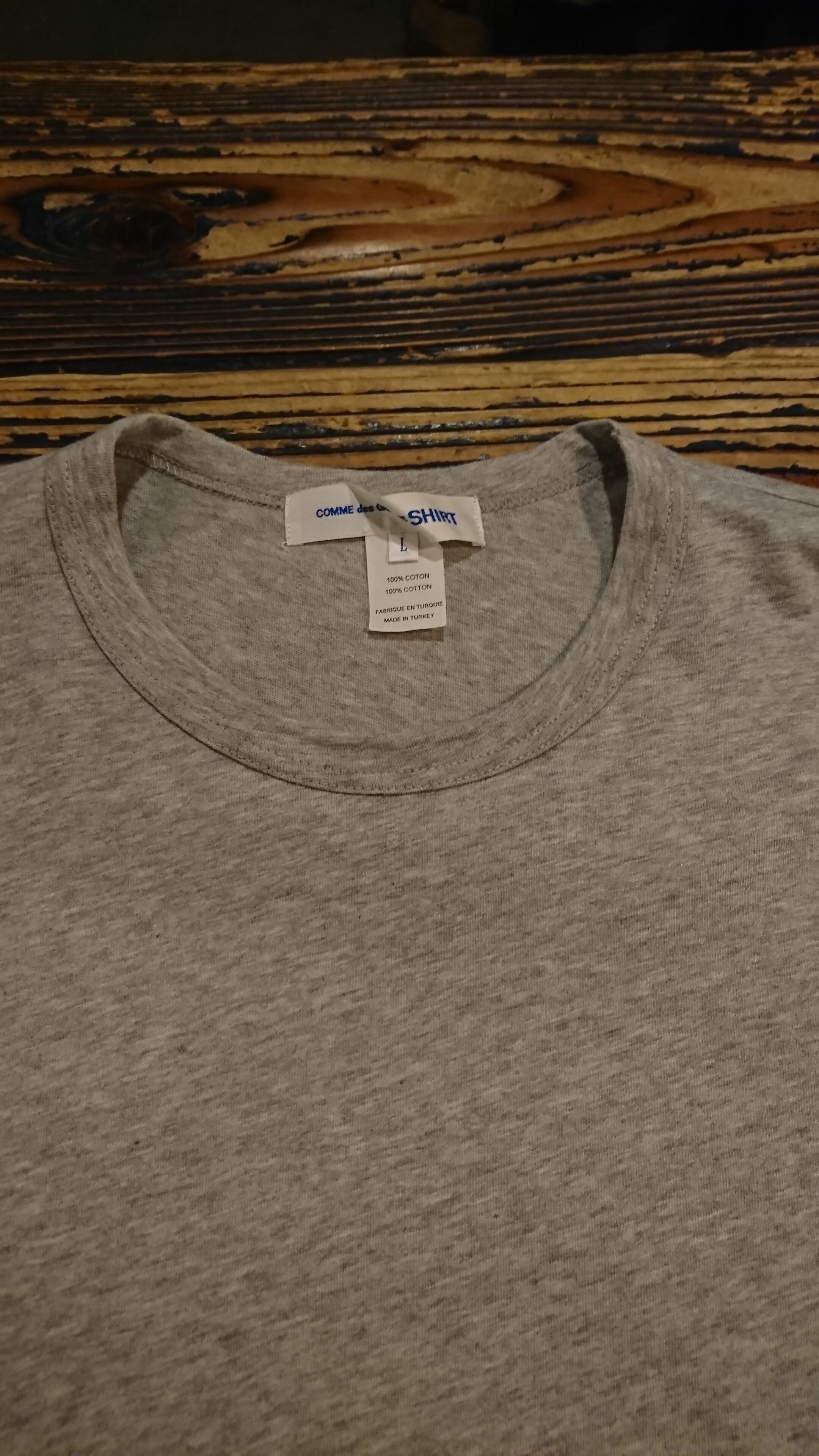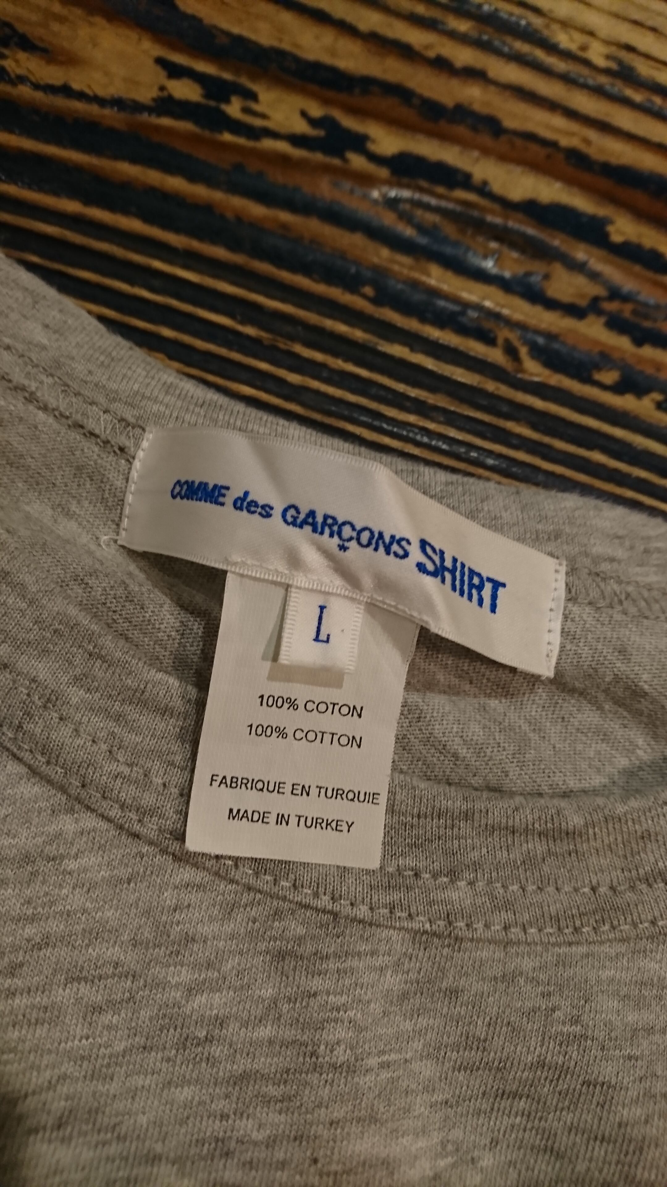 グレーカラーで裾にCOMMEdesGARCONS SHIRTのロゴプリントが入るシンプルなデザイン。