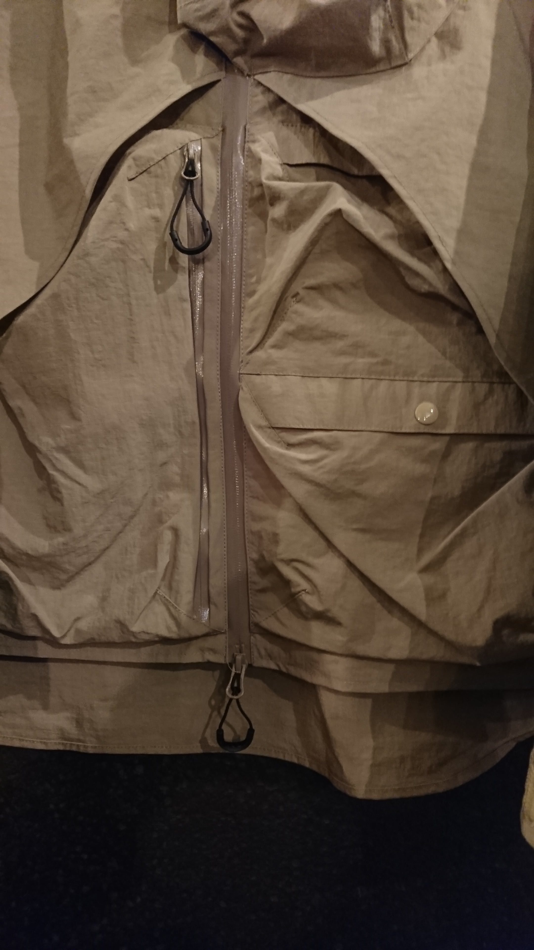 この型に合うように。さらにレイヤードをかまし、裏側まで雰囲気をよくした。素材はシワシワ撥水ナイロン100%。