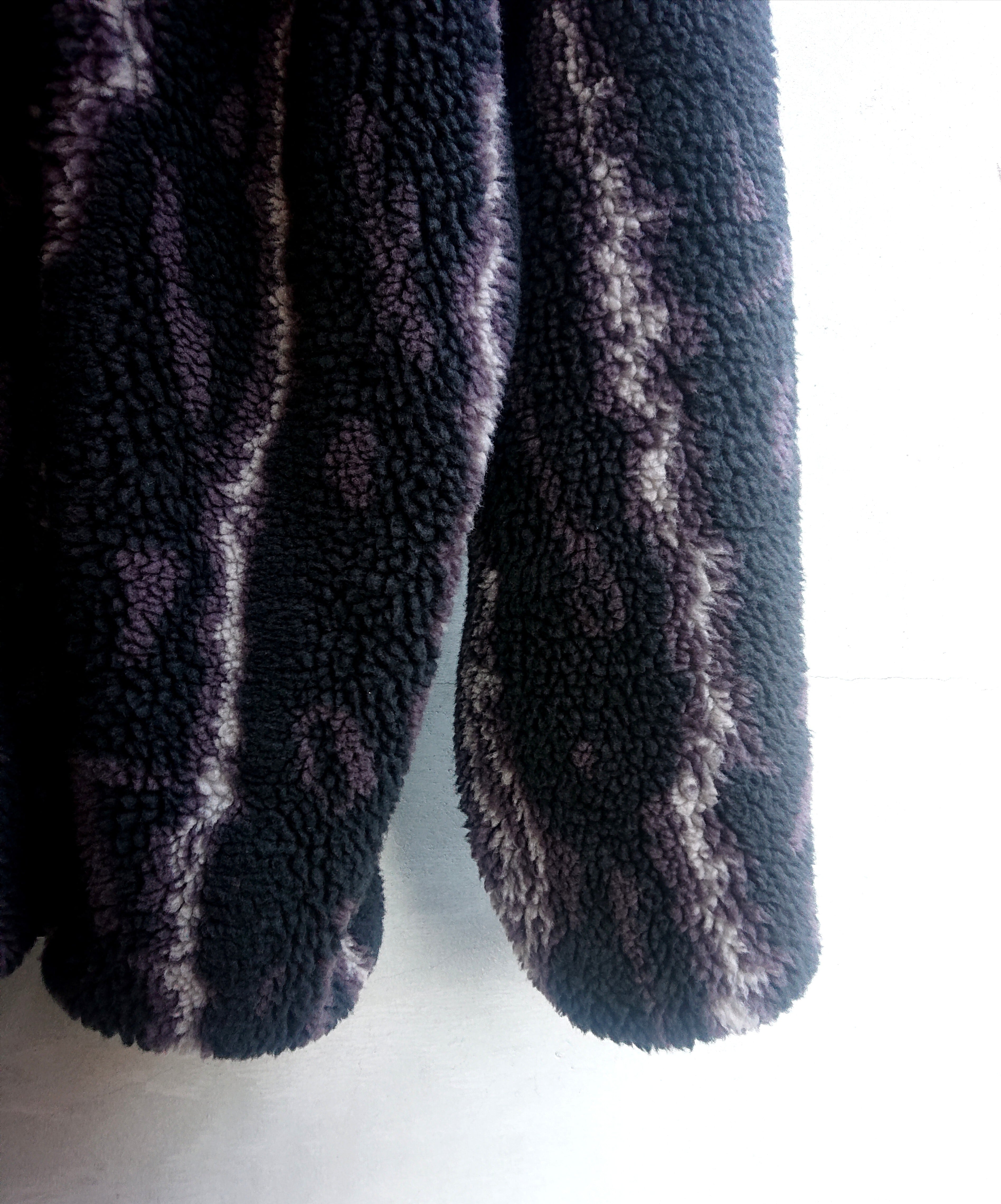 70年代にクライミングブランドのアイコンとして使われたピッケルや、カラビナやロープを柄の中に落とし込んだサンダー柄のフリース生地を製作。生地のグラウンド黒色は炭黒をイメージし