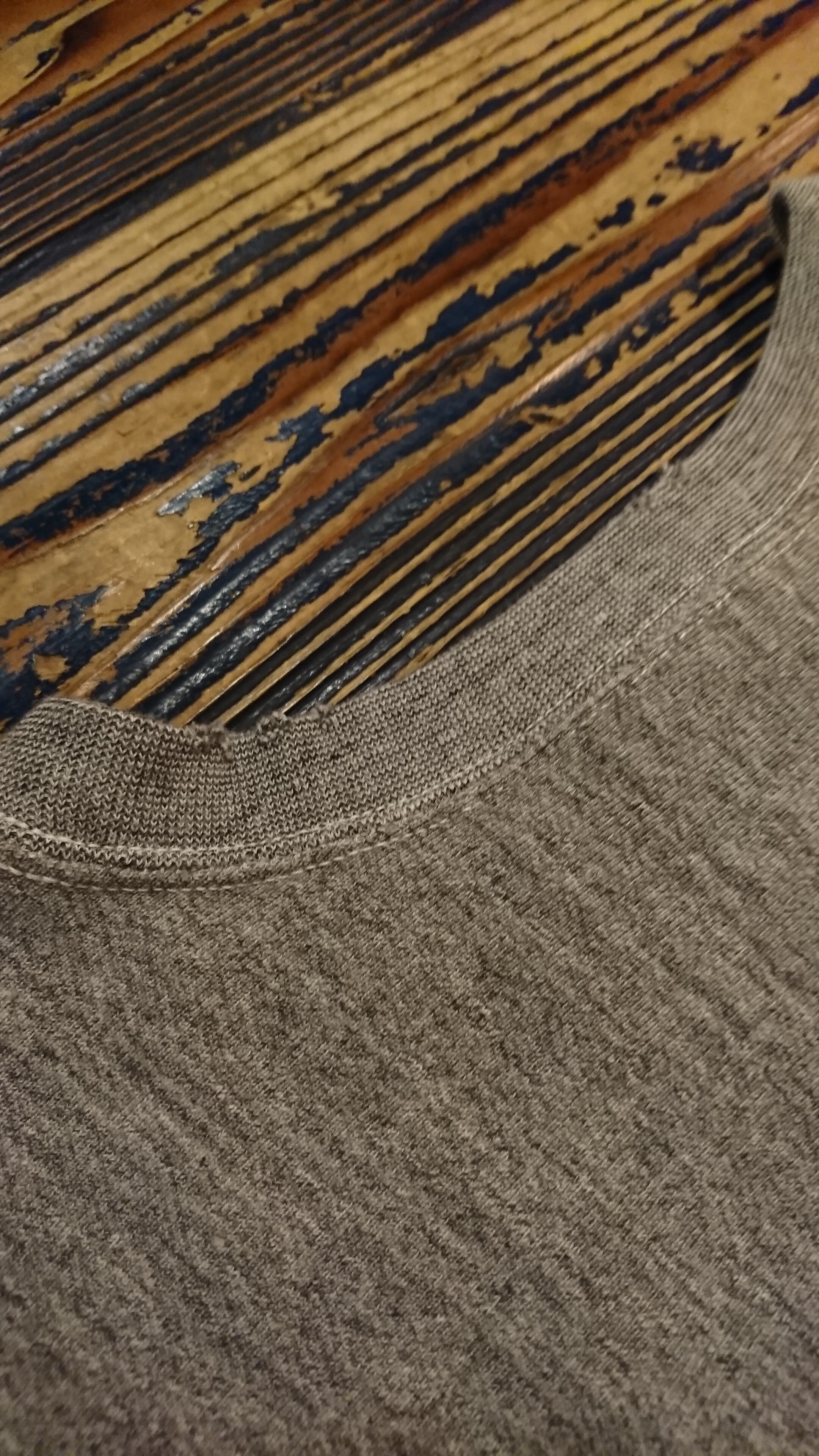 JACKSON MATISSEのクルーネック リバースタイプのスウェットになります。フロントに同じ生地で一部貼り付けたデザイン。ステンシルプリントも良い感じです。肩や両袖のやけやダメージ加工してるタイプなので雰囲気もある1着。