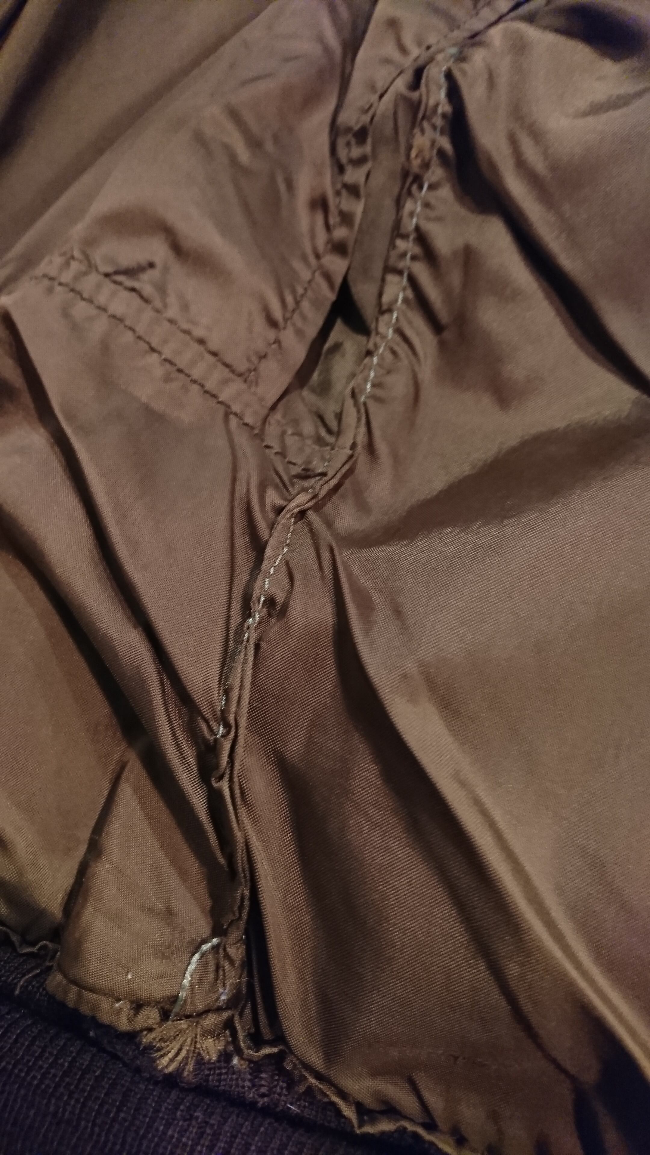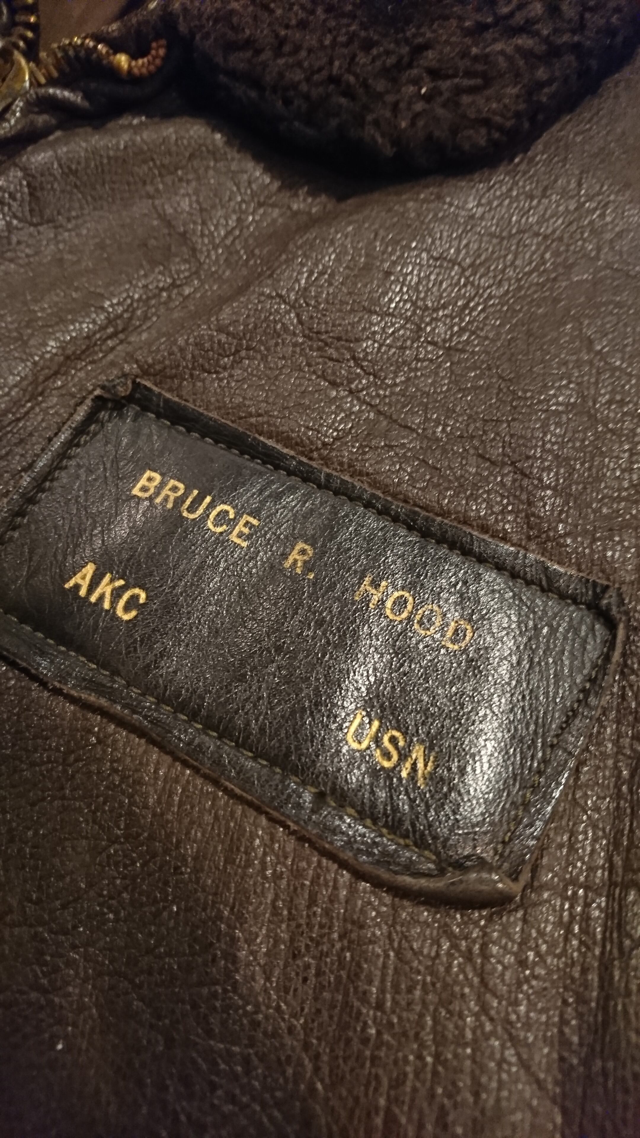 襟はアクリルファーボア。腹部のフラップにU.S.Nパンチ。黒タグの刺繍文字。左胸にネームタグ。