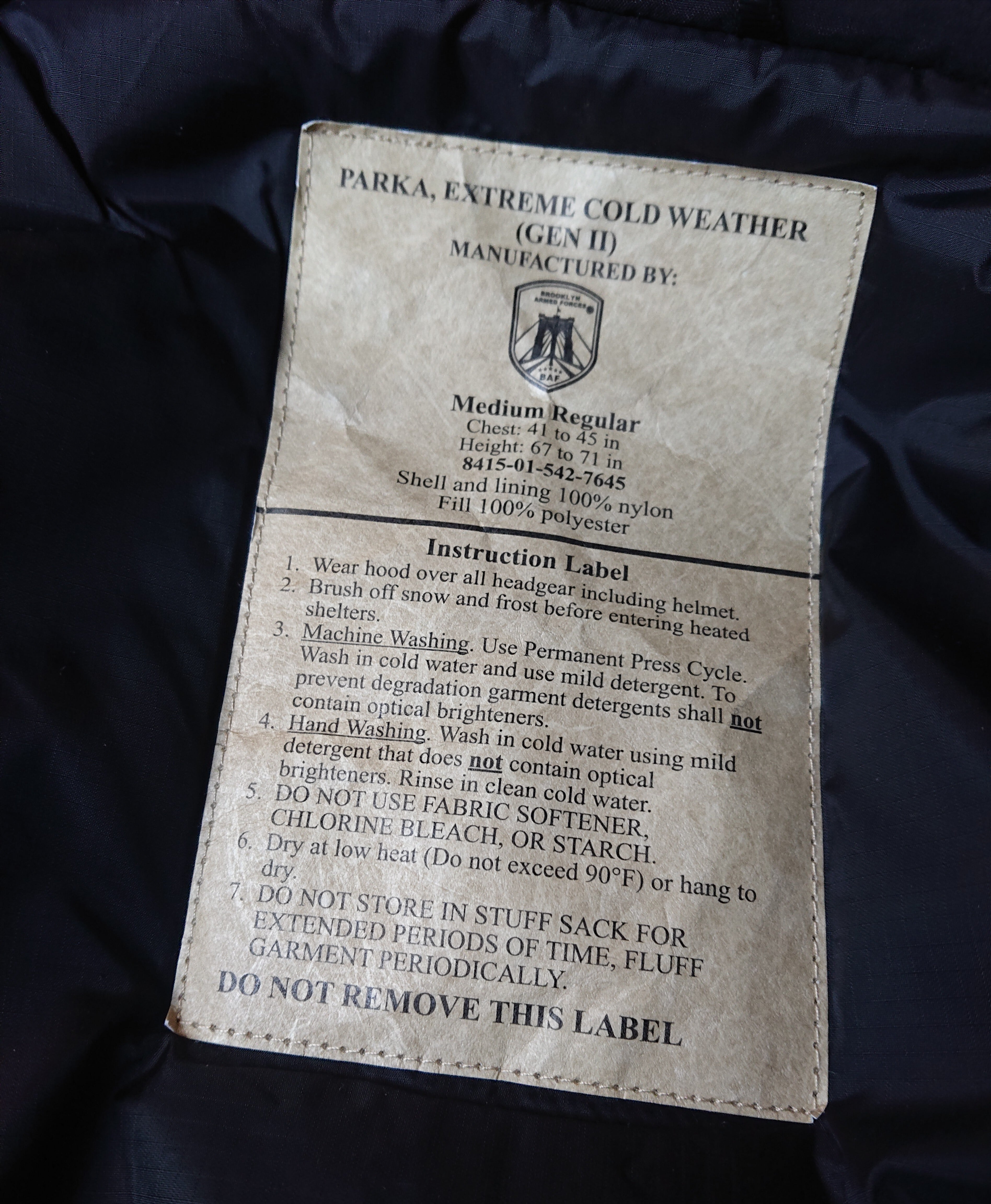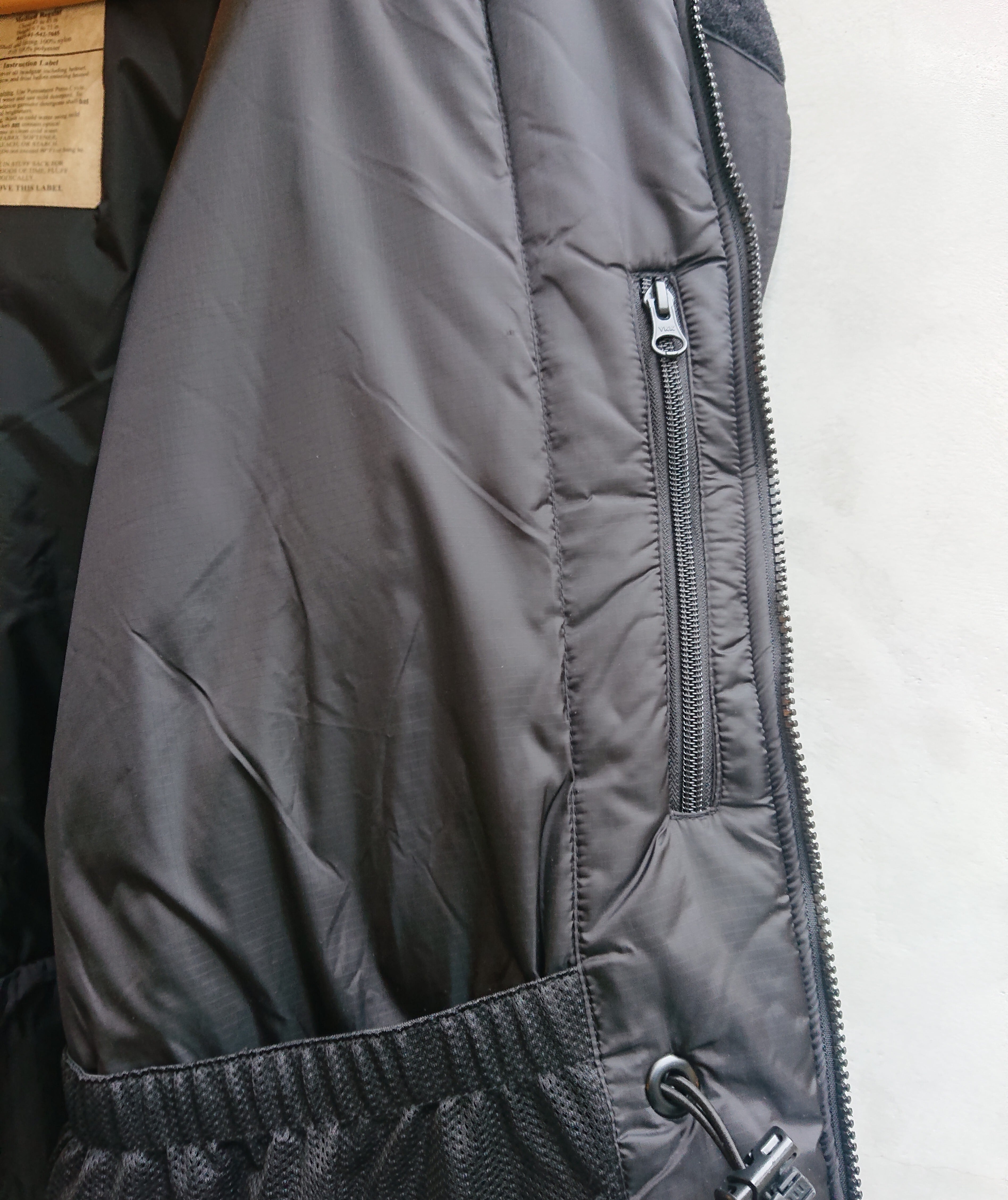天然のダウンに比べ、水濡れに強く、過酷な環境で長時間活動する兵士の体温を保つという意味でダウンよりも有用なインシュレーション(断熱材)として広く使用されています。ダウンウェアと違い、羽がとびだしたり手入れに手間がかかる事がなく洗濯機で洗えて軽量でやわらかな風合いが特徴となっています。