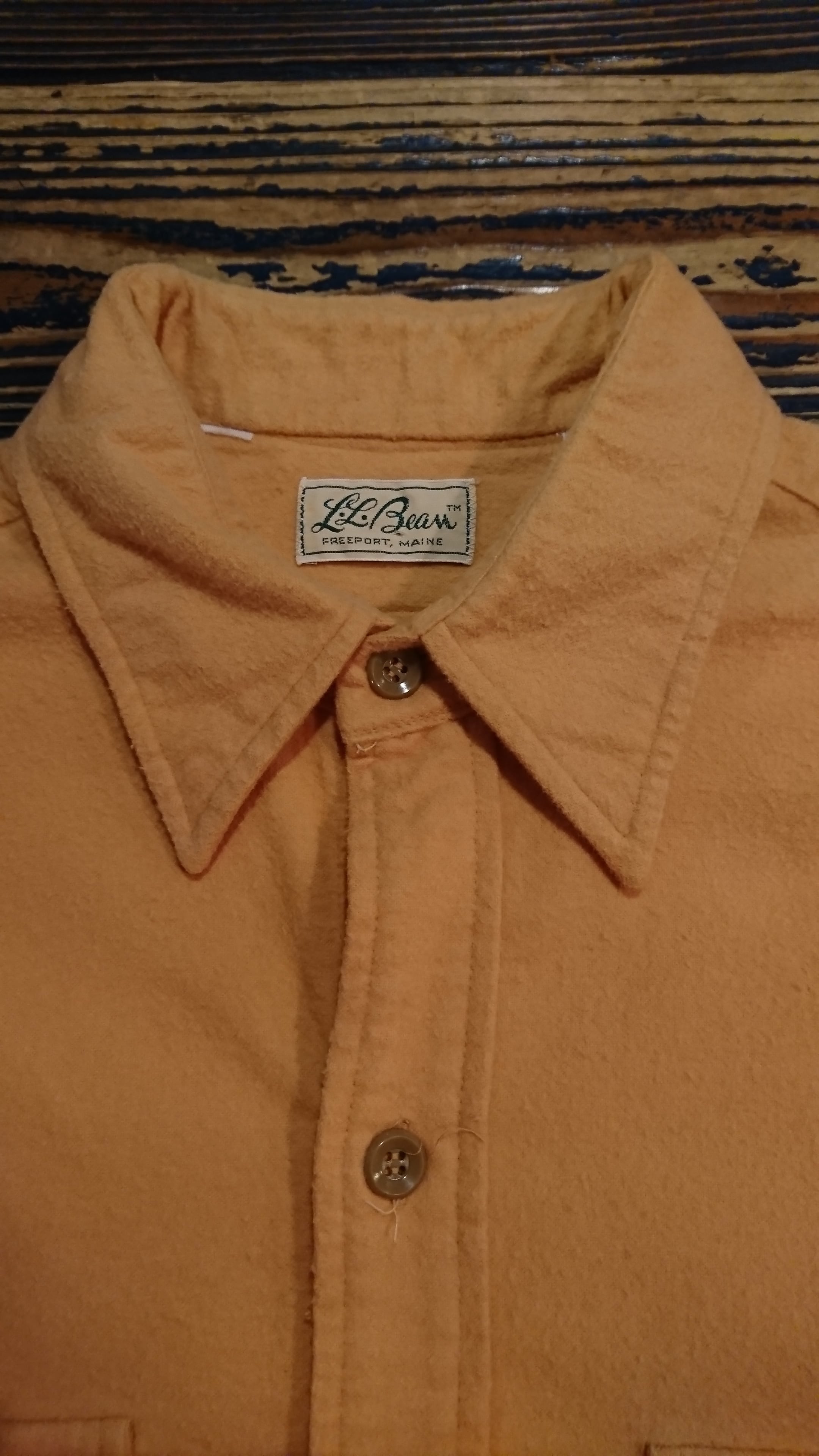 70年代 L.L.Beanシャモアクロス シャツになります。筆記タグのタイプ。コットンで表面を起毛させた生地で肌触りも良く着やすい1着。