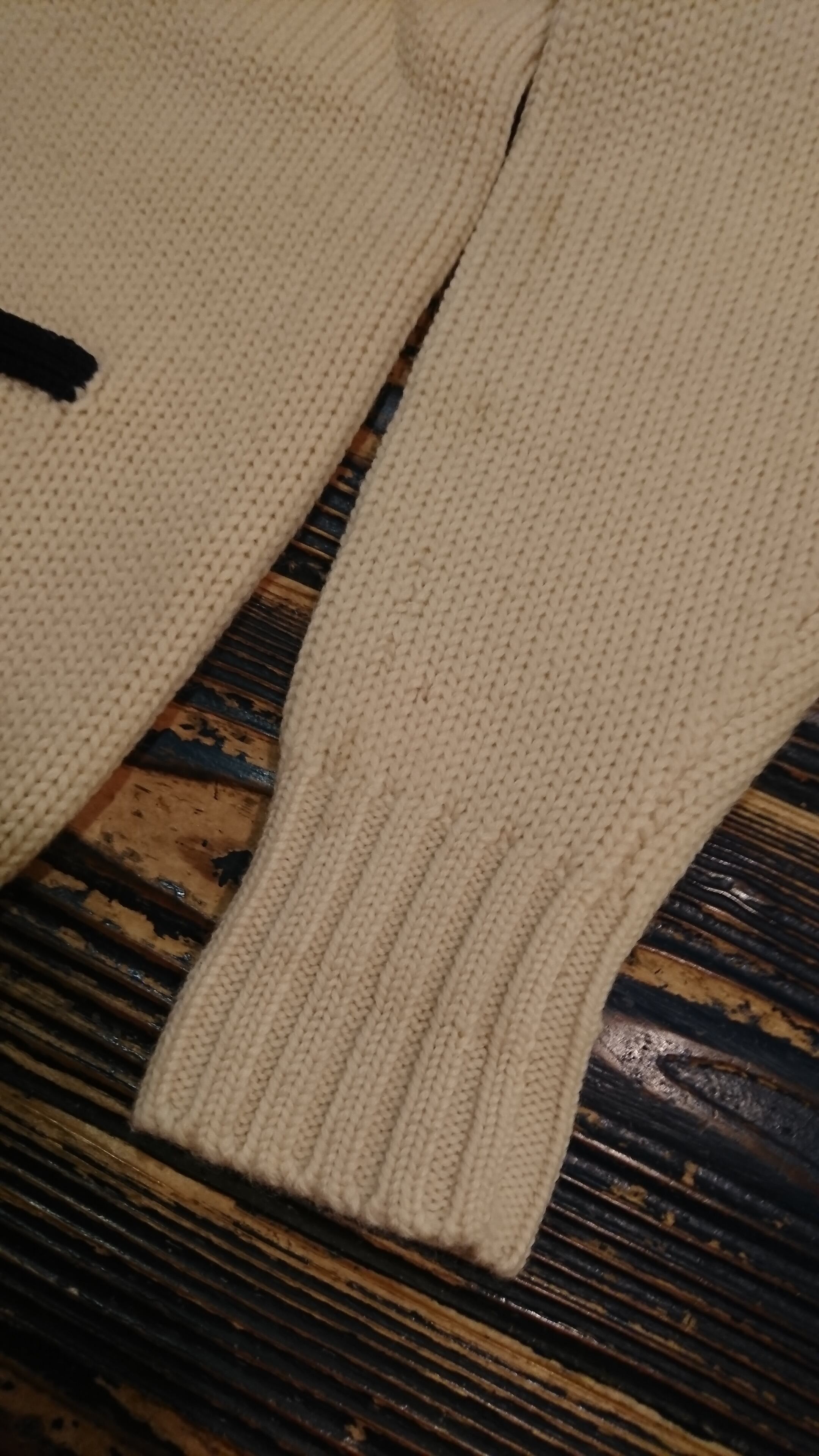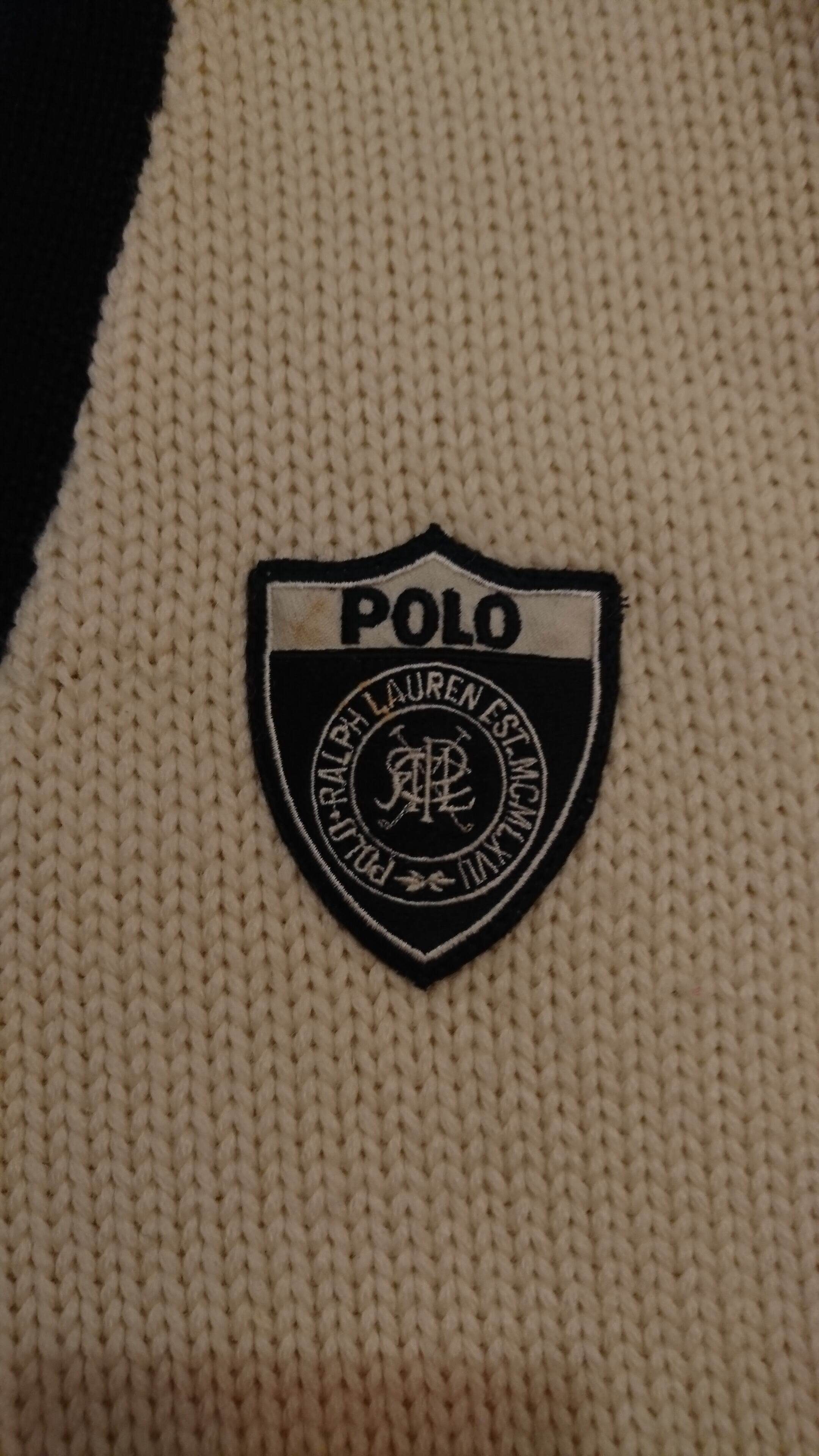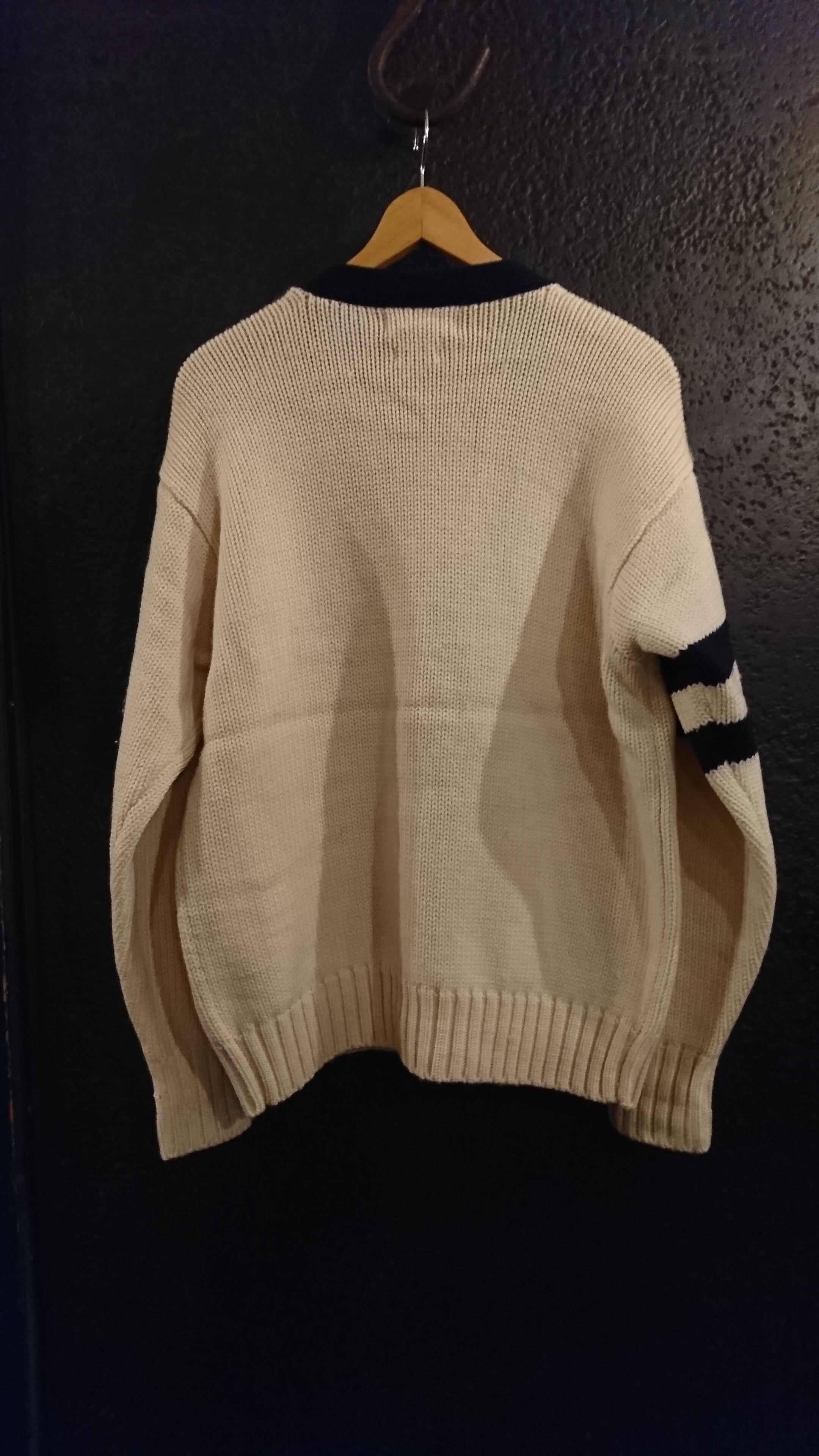 Ralph Laurenのレタードカーディガンになります。ホワイトとネイビーの配色。