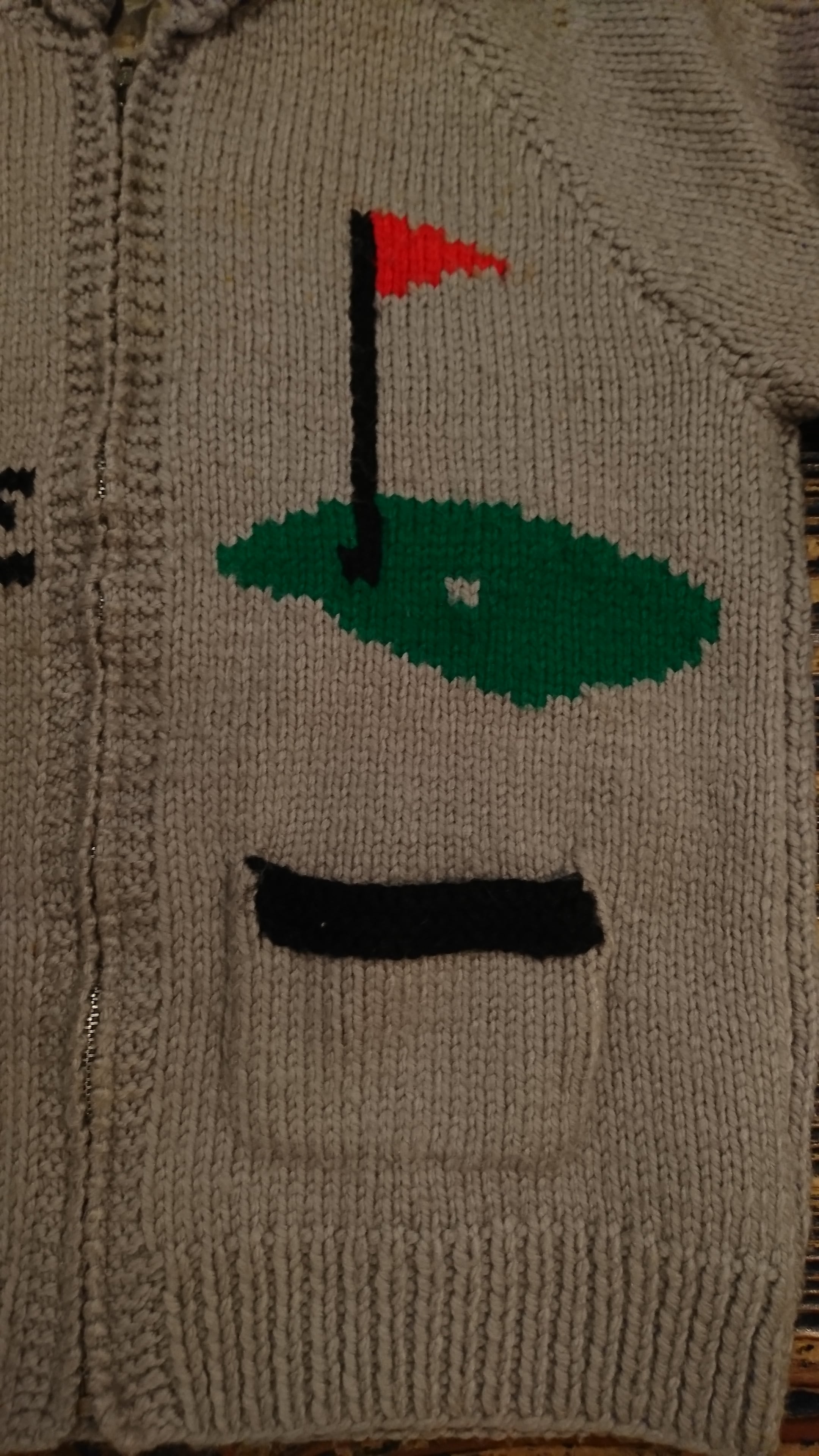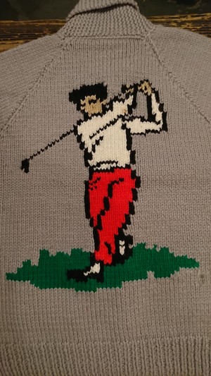 ゴルフ柄のヴィンテージ カウチンセーターになります。ラグランスリーブで裏地ありのタイプ。