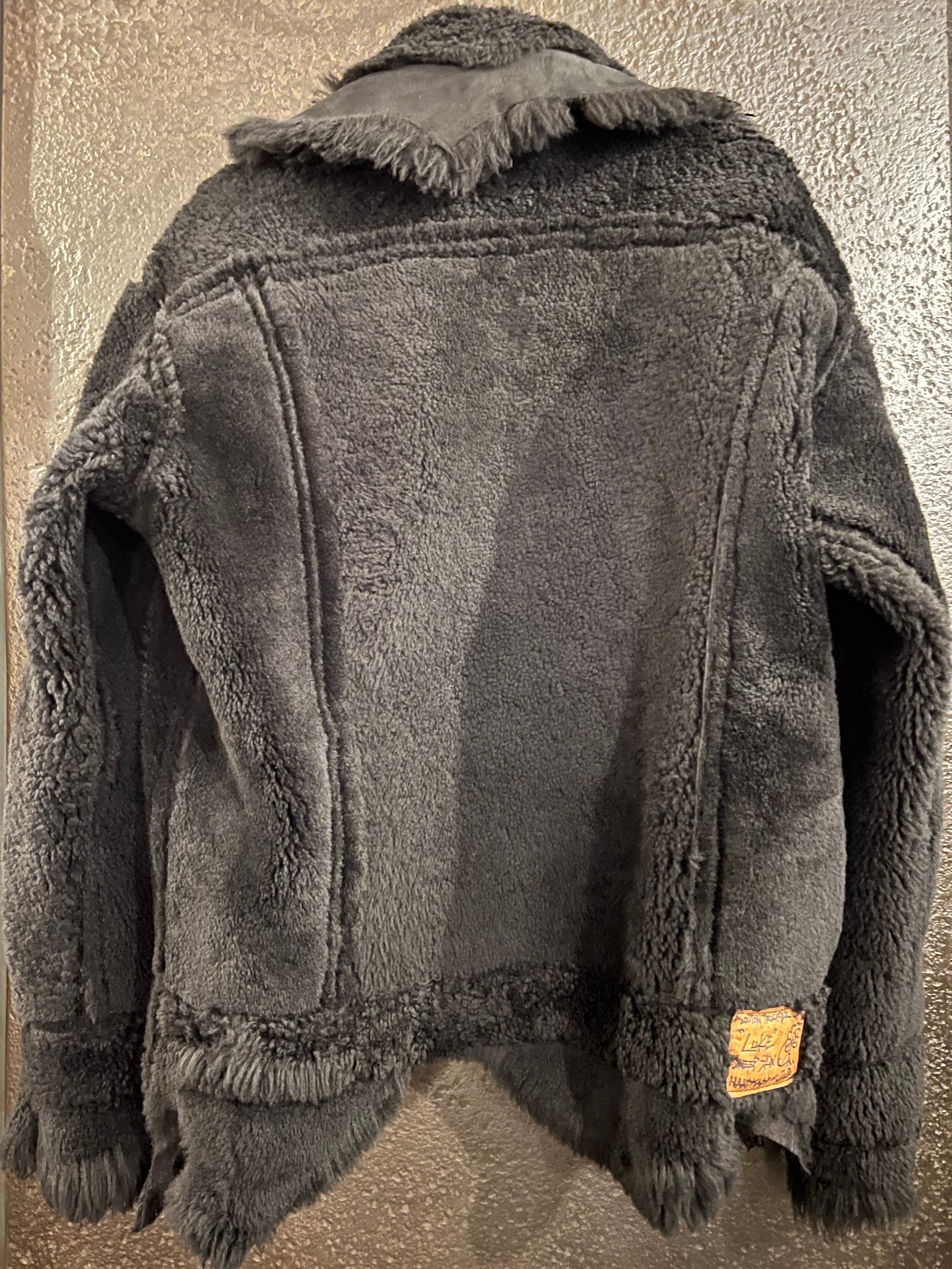 全て断ち切り(切りっぱなし)で処理し、エリ、ポケット、ヨーク、裾、袖口は元々のムートンが持つナチュラルエッジをデザインとして落とし込んでおりますので、どれも全く同じ物が存在しない完全なる一点物になります。