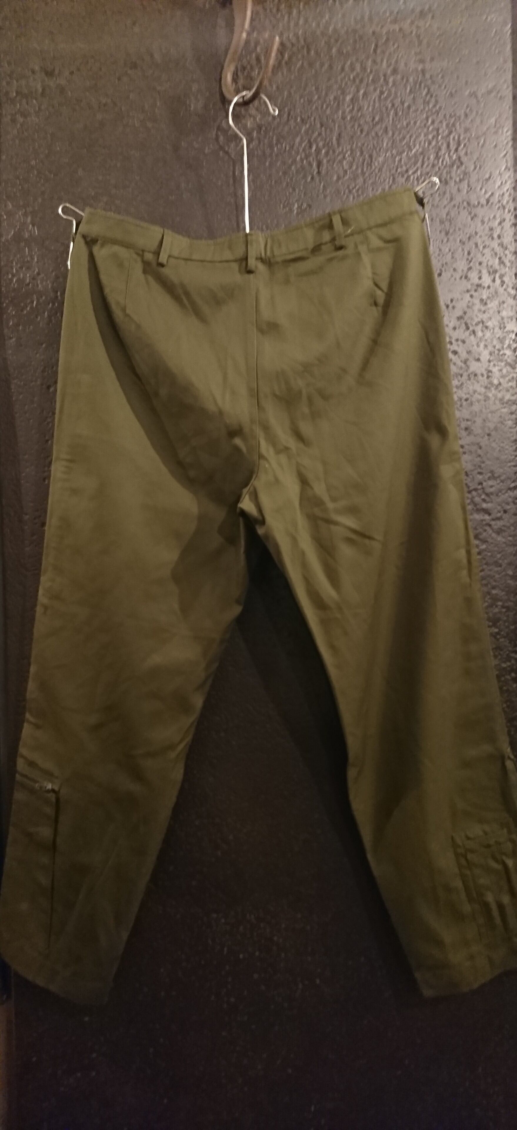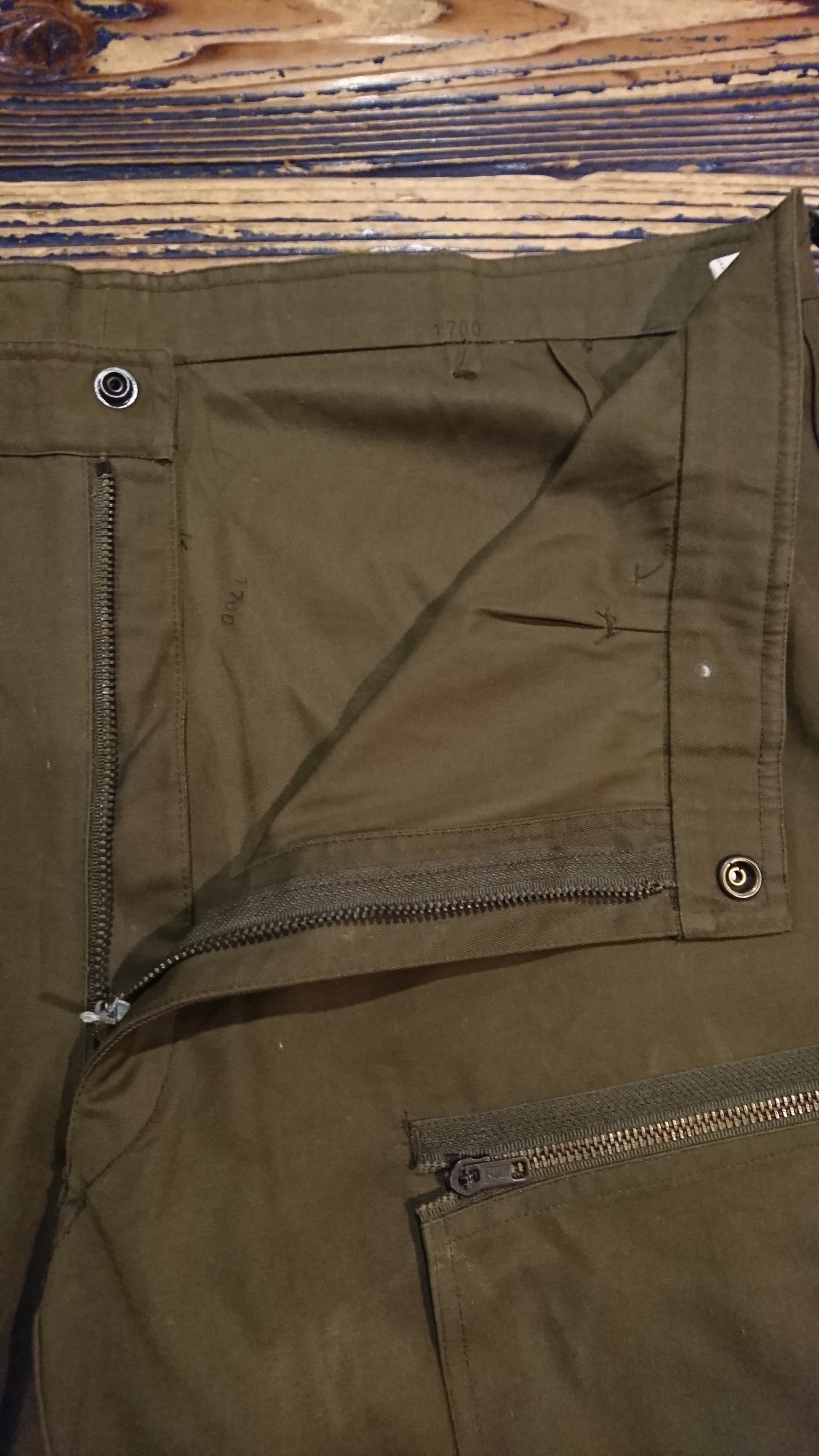 パラシュートやグライダーなどによるエアボーン戦術を実施する空挺部隊で使用されていた希少性高いパンツです。シルエットも綺麗でジッパーを使用したポケット、右足裾につくフラップポケット等デザイン性ある一本。雰囲気あるスタイルから綺麗目なスタイルにと幅広く使っていただけると思います。