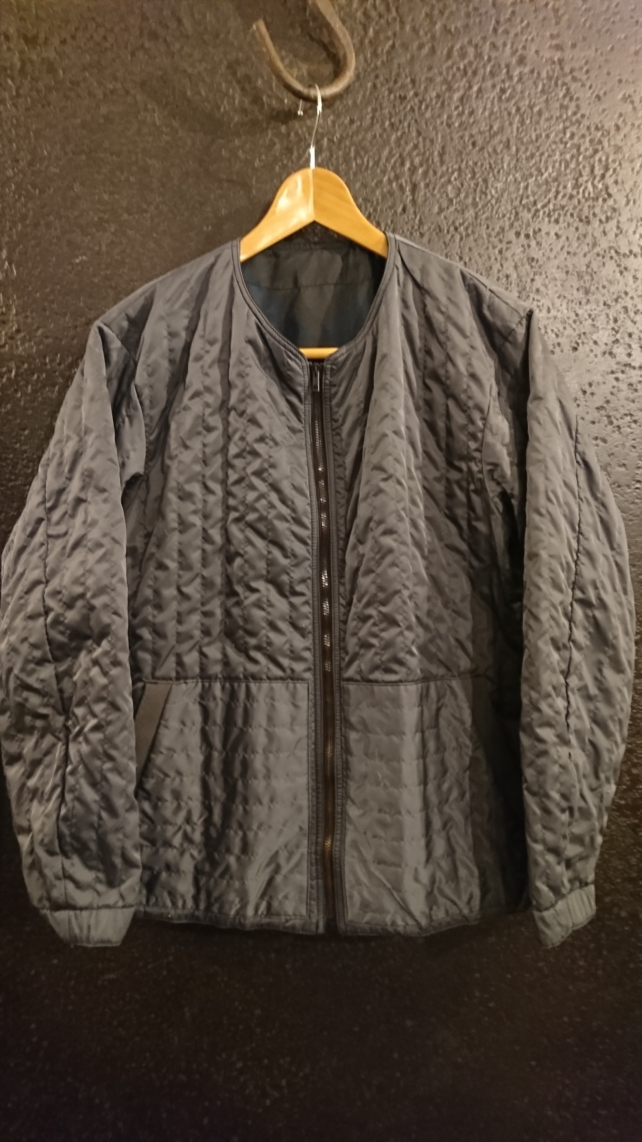 US AIR FORCE LINE CREW JACKETモディファイ。極寒の空母作業での誘導作業時、プリマロフトの中綿が保温性を発揮するモディファイバージョンとして製作。紺色の市松模様は、L-2A表地と裏地の色を採用。キルティングリバーシブル仕様。