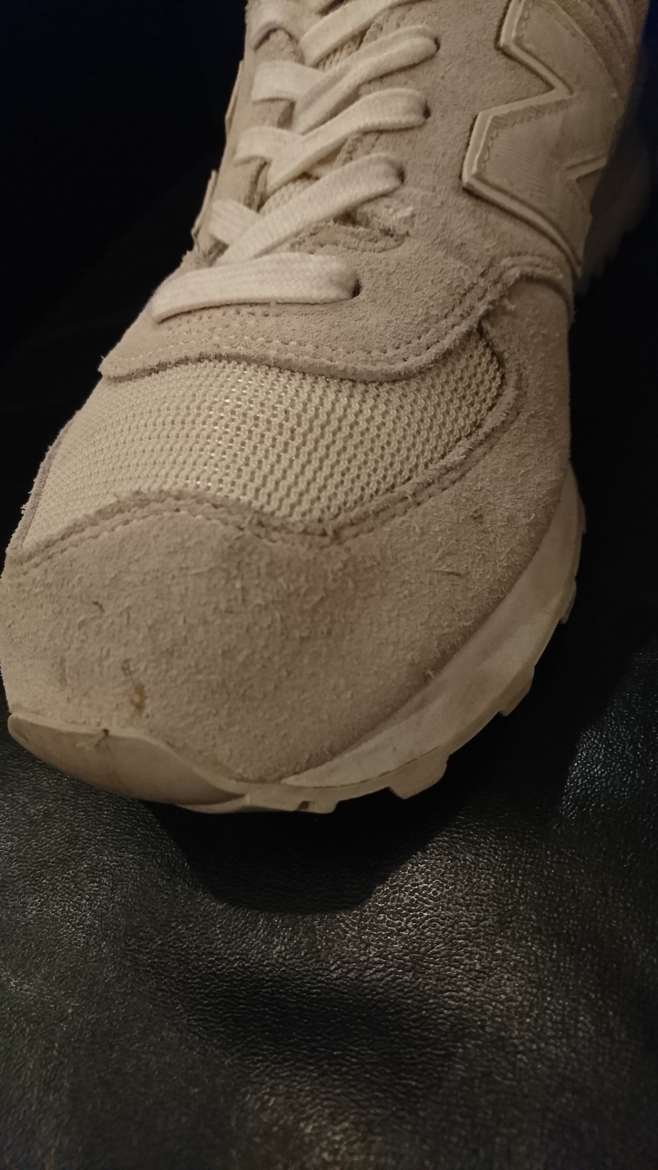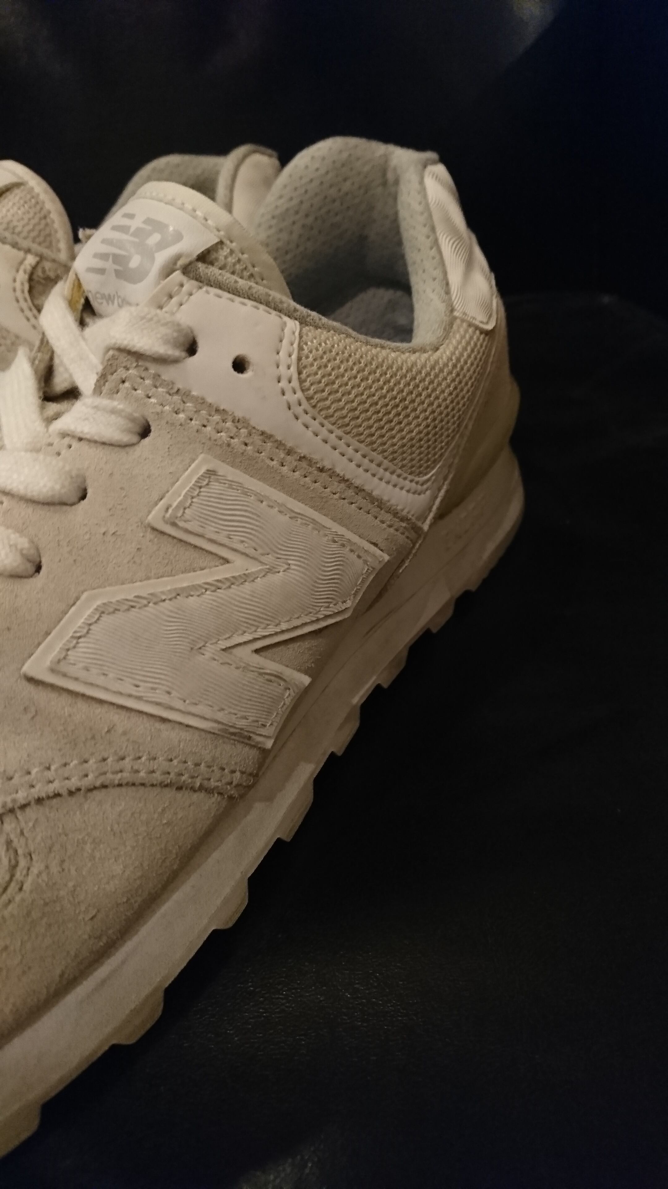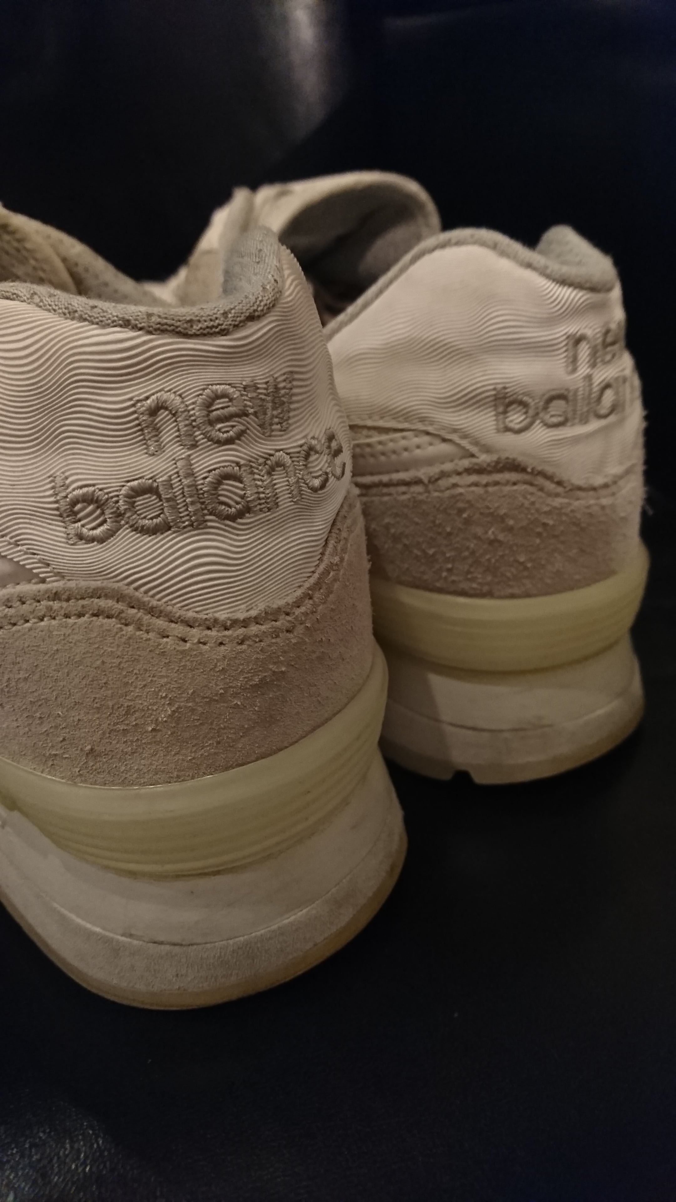 574はタウンユースとしても使えるようリリースされたモデル。576のように丸みのあるフォルムも特徴。カラーはライトグレー。着用ありでスエード部分に多少汚れと、右足のナイロン部分に1.5㎝程の傷があります。ソールの減りも少ない一足です。MADE IN VIETNAM。