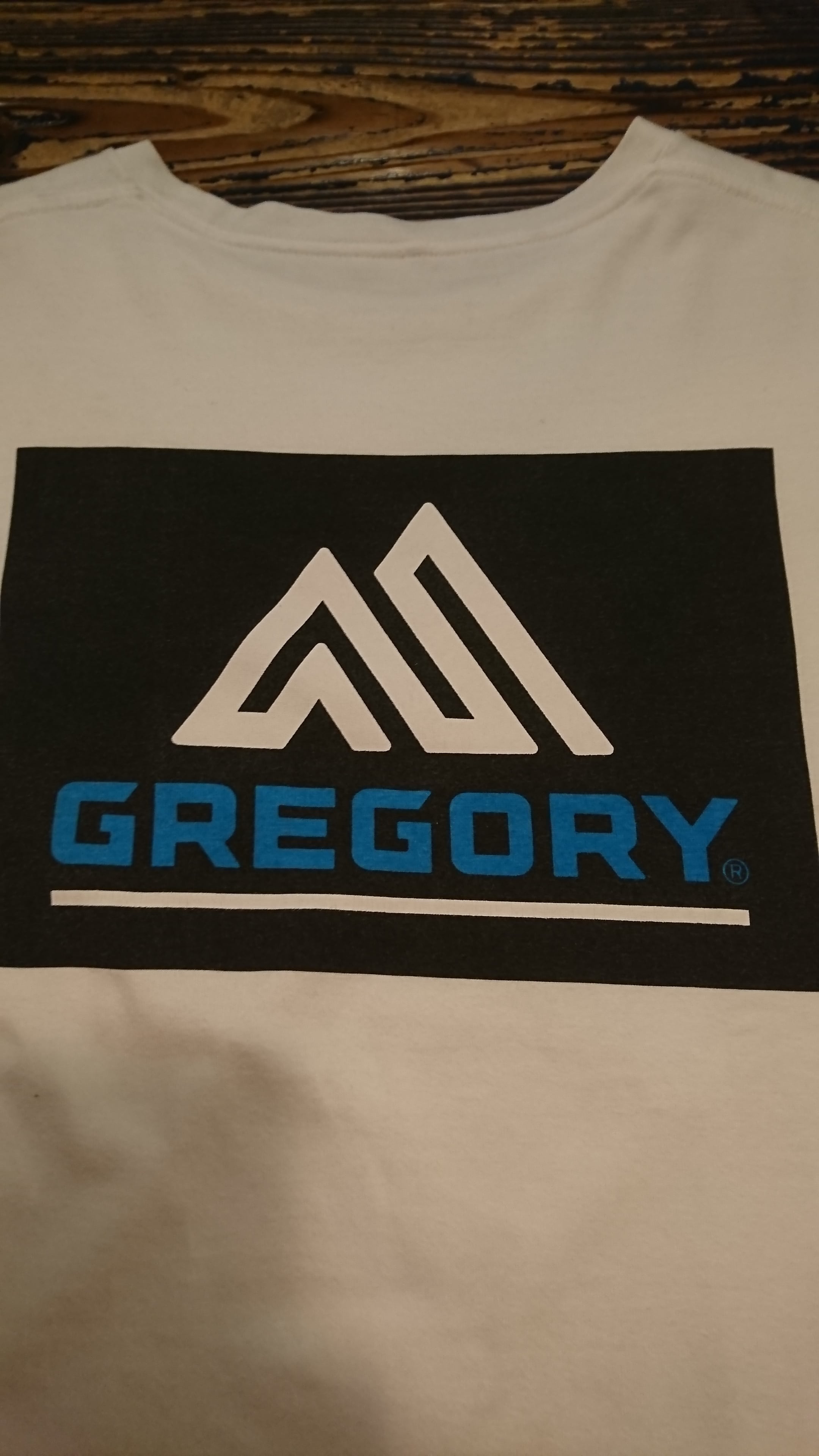 胸ポケットにプリント。背中にはGREGORYロゴの
