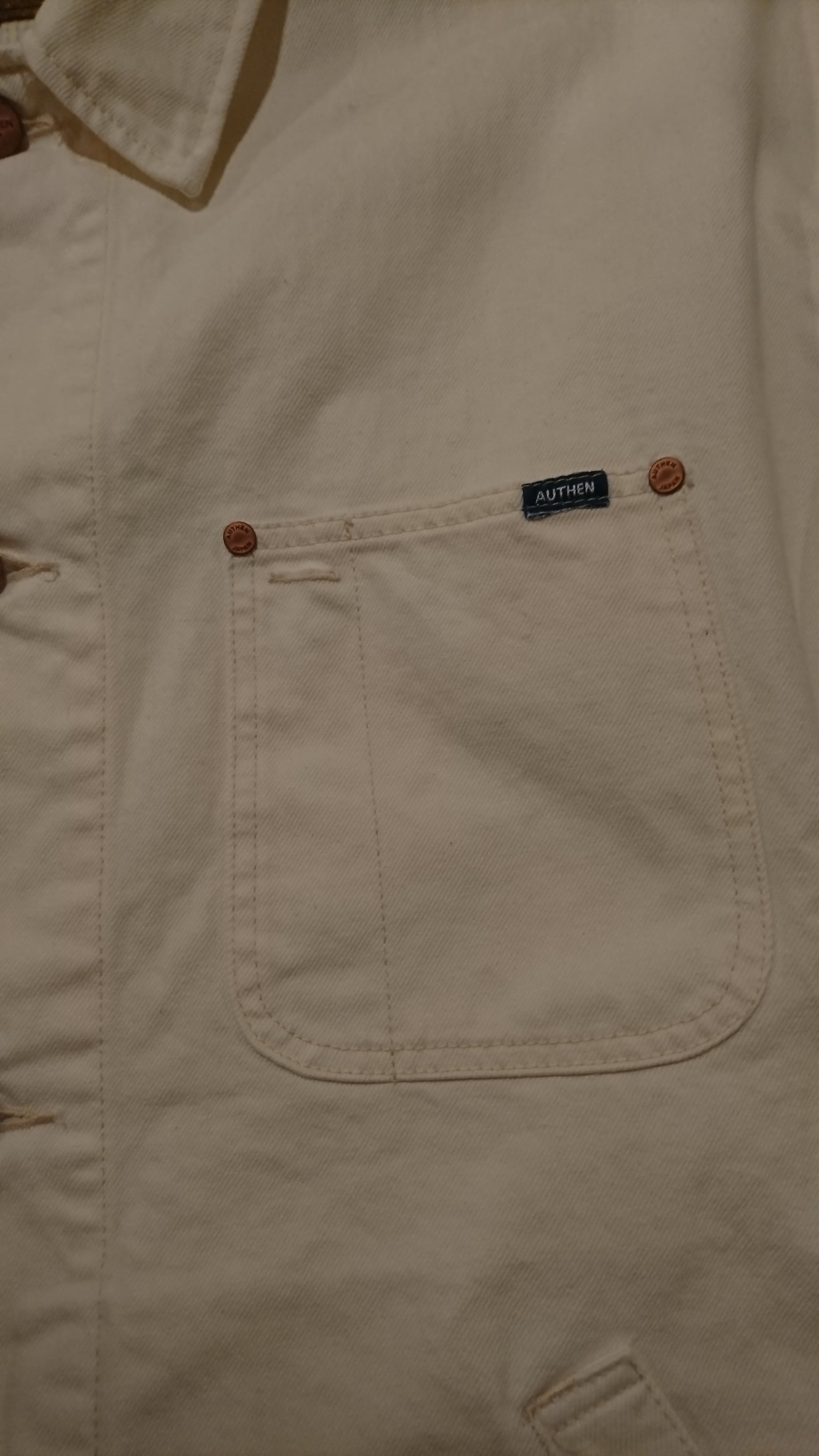 着るのも魅力。ホワイトデニムはまたブルーデニムとは違う印象に。COTTON 100%。MADE N JAPAN。