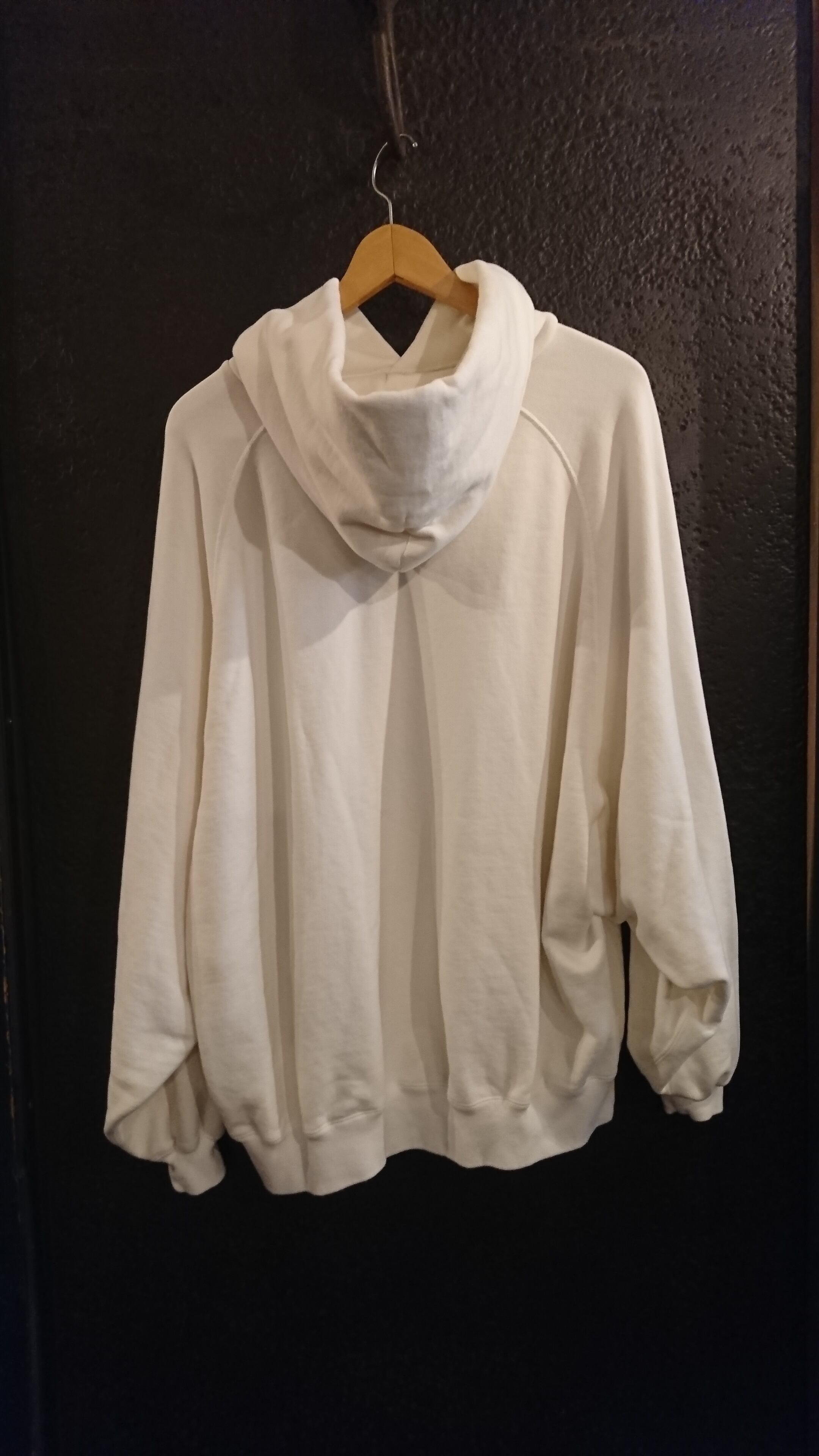 吊り編み風のリラックスしたテンションと着れば着るほど極上の柔らかい風合いの増す裏毛素材を採用。ヴィンテージスウェットシャツを彷彿させるフラットシーム縫製仕様やリブディテールに
