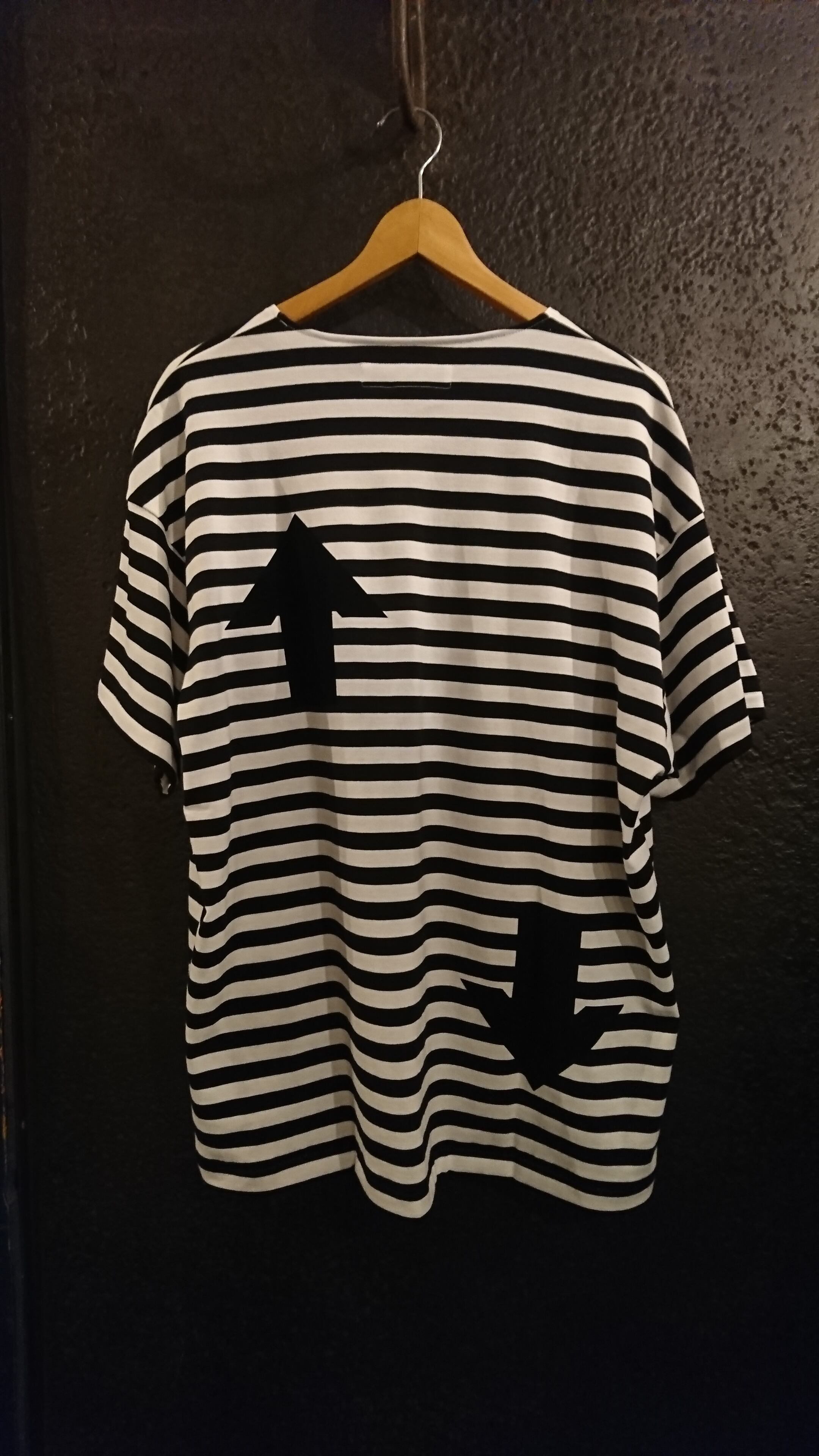 ボーダーT-SHIRTとして再構成し作成。デザインとして前見頃のFCに切り替えをいれて、衿ぐりにスリットを入れました。