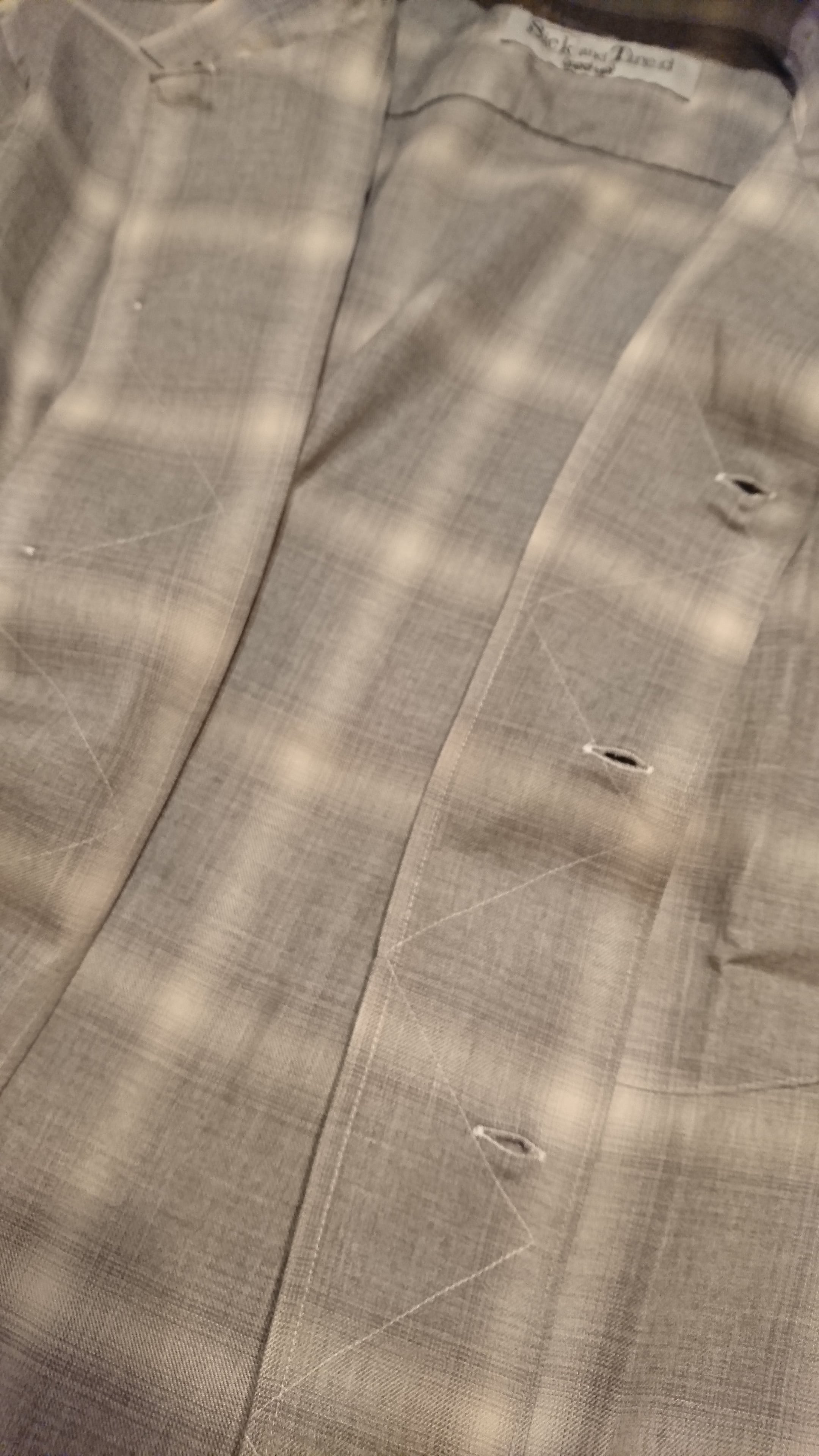 加えて前見返しと地衿にジグザクの飾りステッチを入れ、古い時代の芯地を止め付ける仕様を現代的にディティールとして復活?させて落とし込んだデザイン。RAYON 100%の上質で繊細なオンブレチェック(シャドーチェック)を使用。