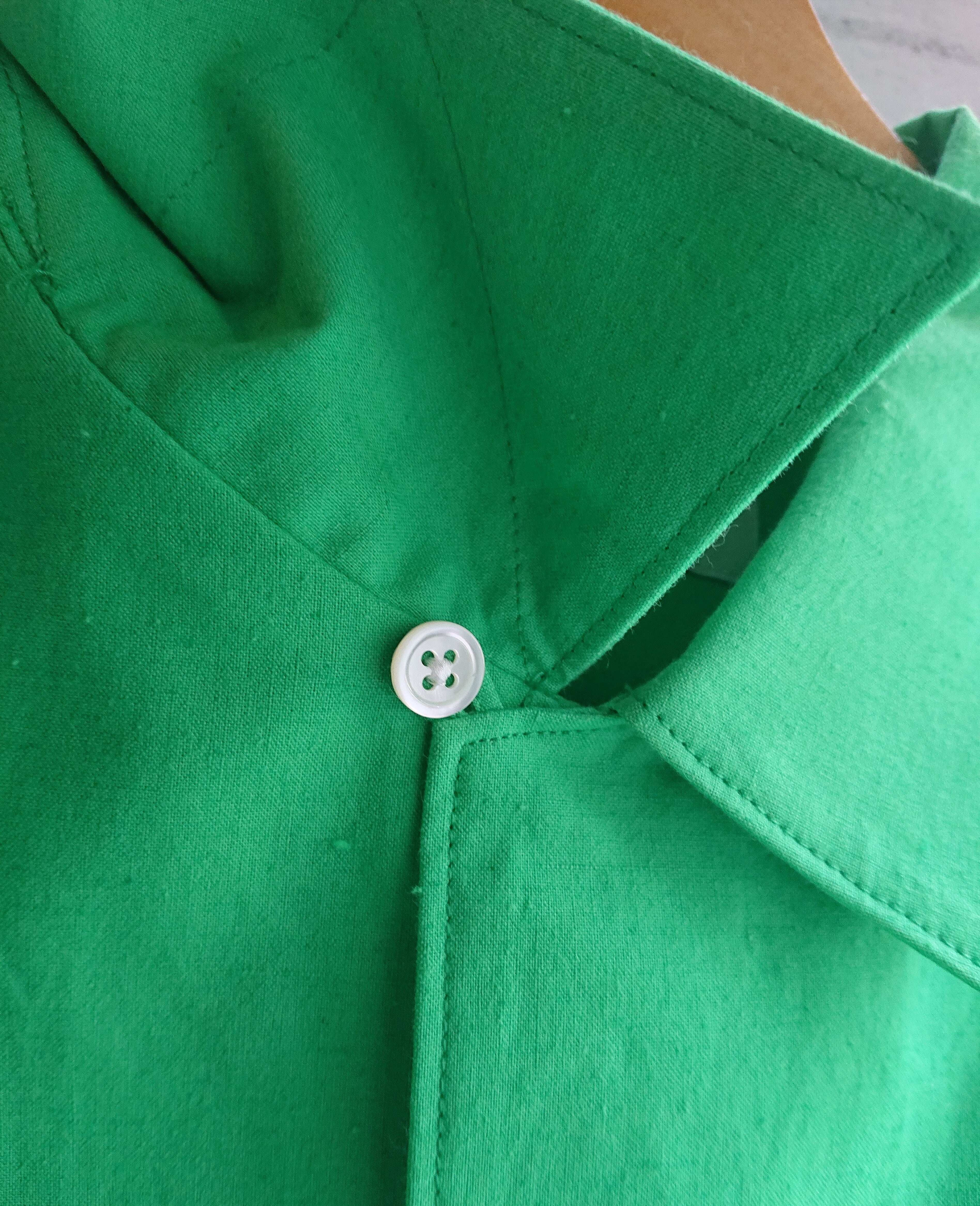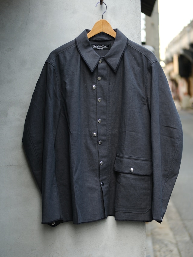 加えて前見返しと地衿にジグザクの飾りステッチを入れ、古い時代の芯地を止め付ける仕様を現代的にディティールとして復活?させて落とし込んだデザイン。COTTON 90% LINEN 10%でシャツ生地としてはしっかりした素材。