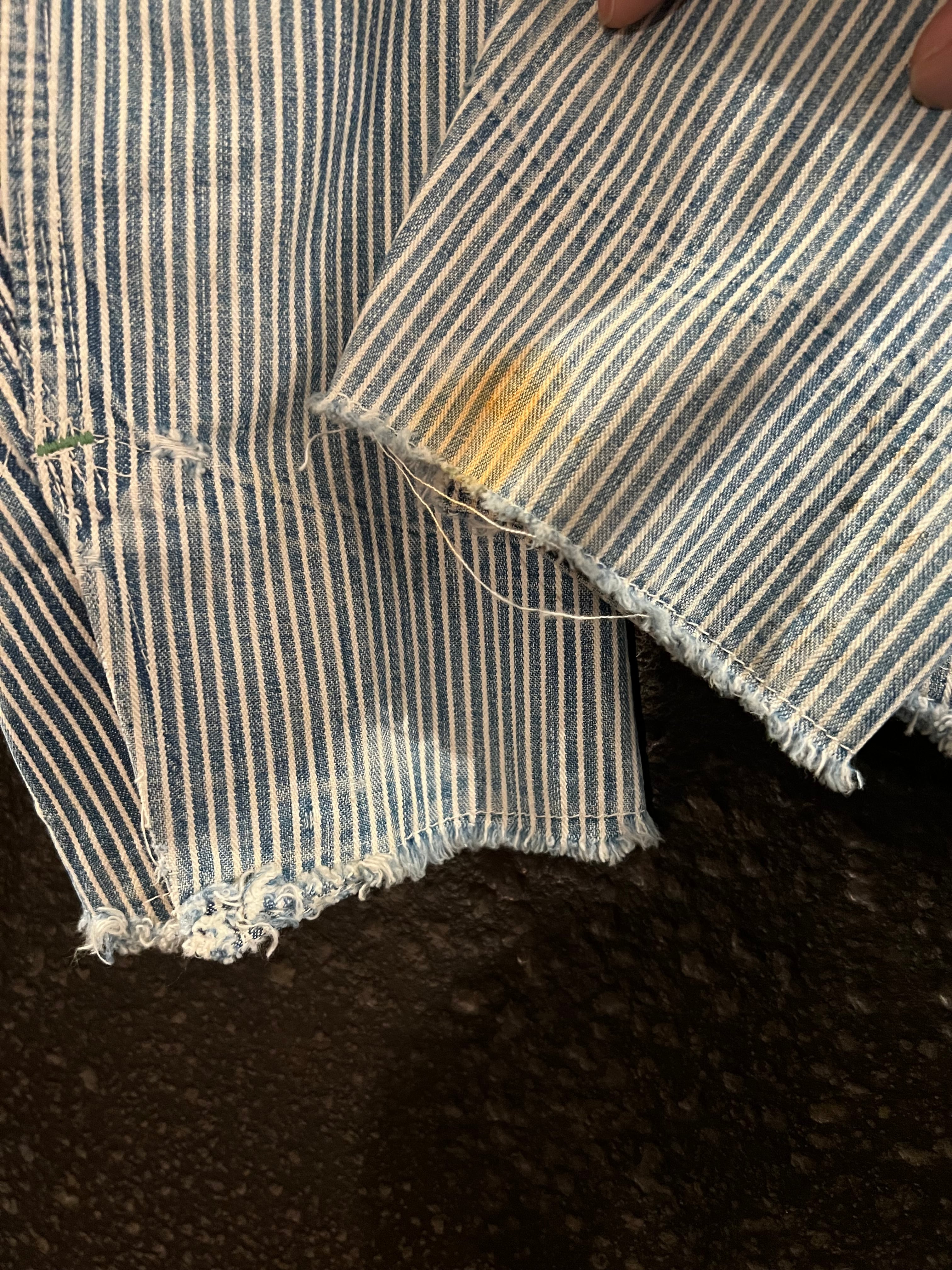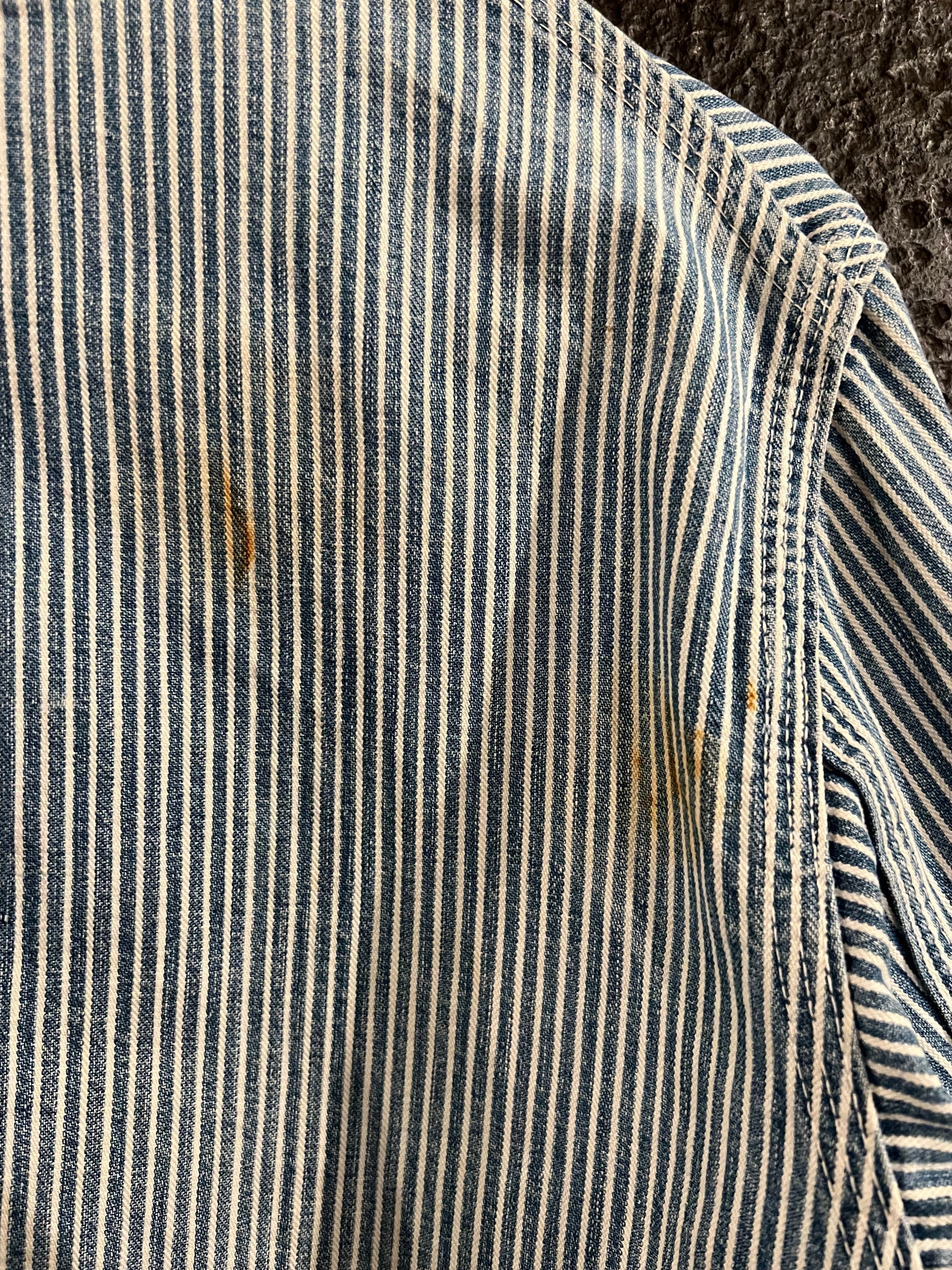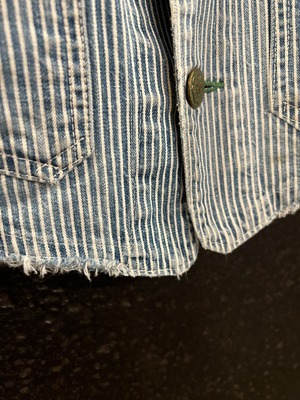 人気の、エンジニアジャケットのご紹介です。1940s Oshkosh-Bgosh ENGINEER JACKET ヒッコリーストライプのタイプで、乳首ボタンが魅力的な逸品。