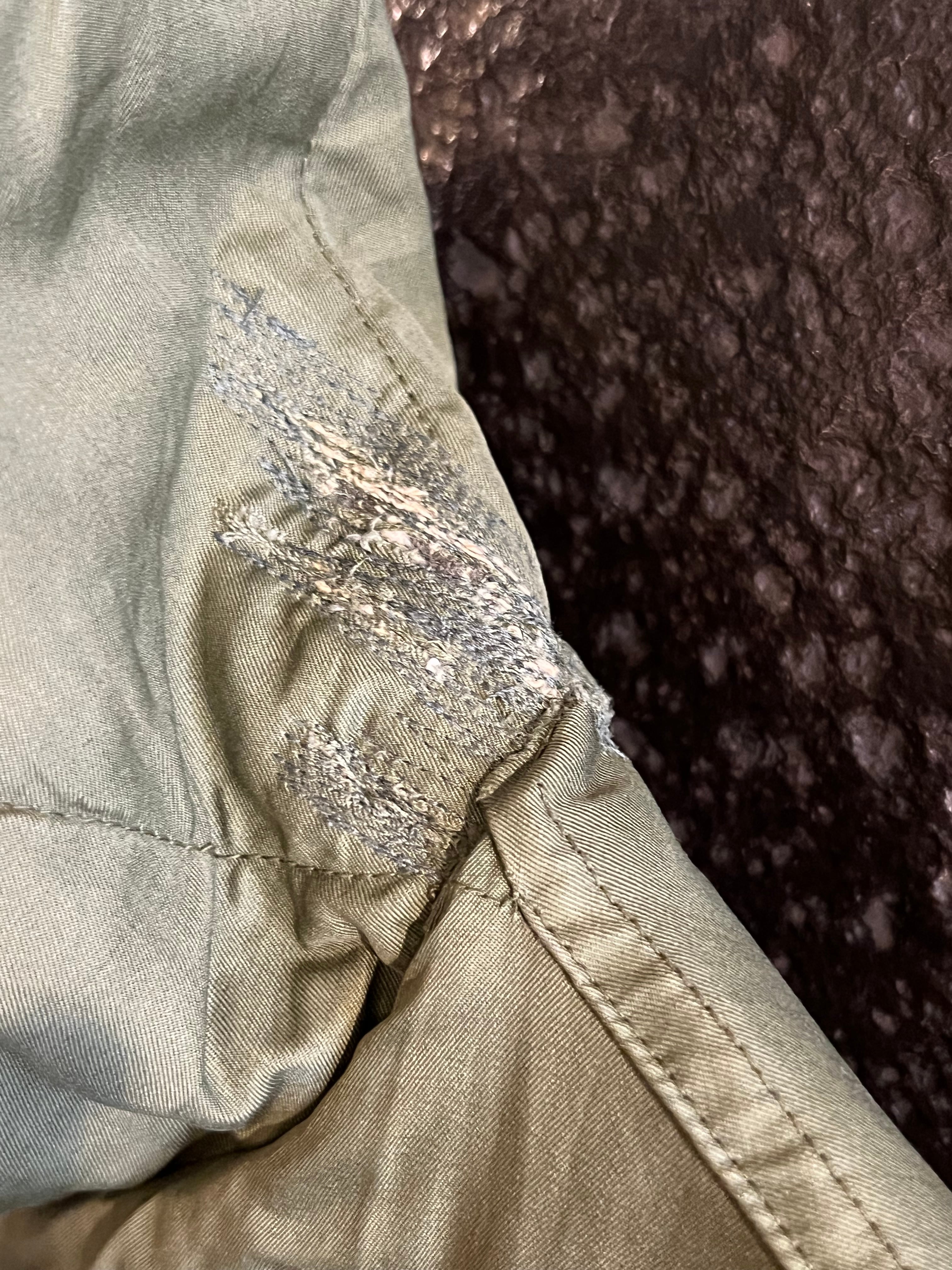 コットンシェルのアルパカライナーのジャケットは、コンディションの良い個体は、ほとんど出なくなりました。襟裏に修理後が1箇所ございますが、致命的な生地の傷みは見られません。コンディション、サイズ、プライスと、三拍子揃ったオススメ品です。