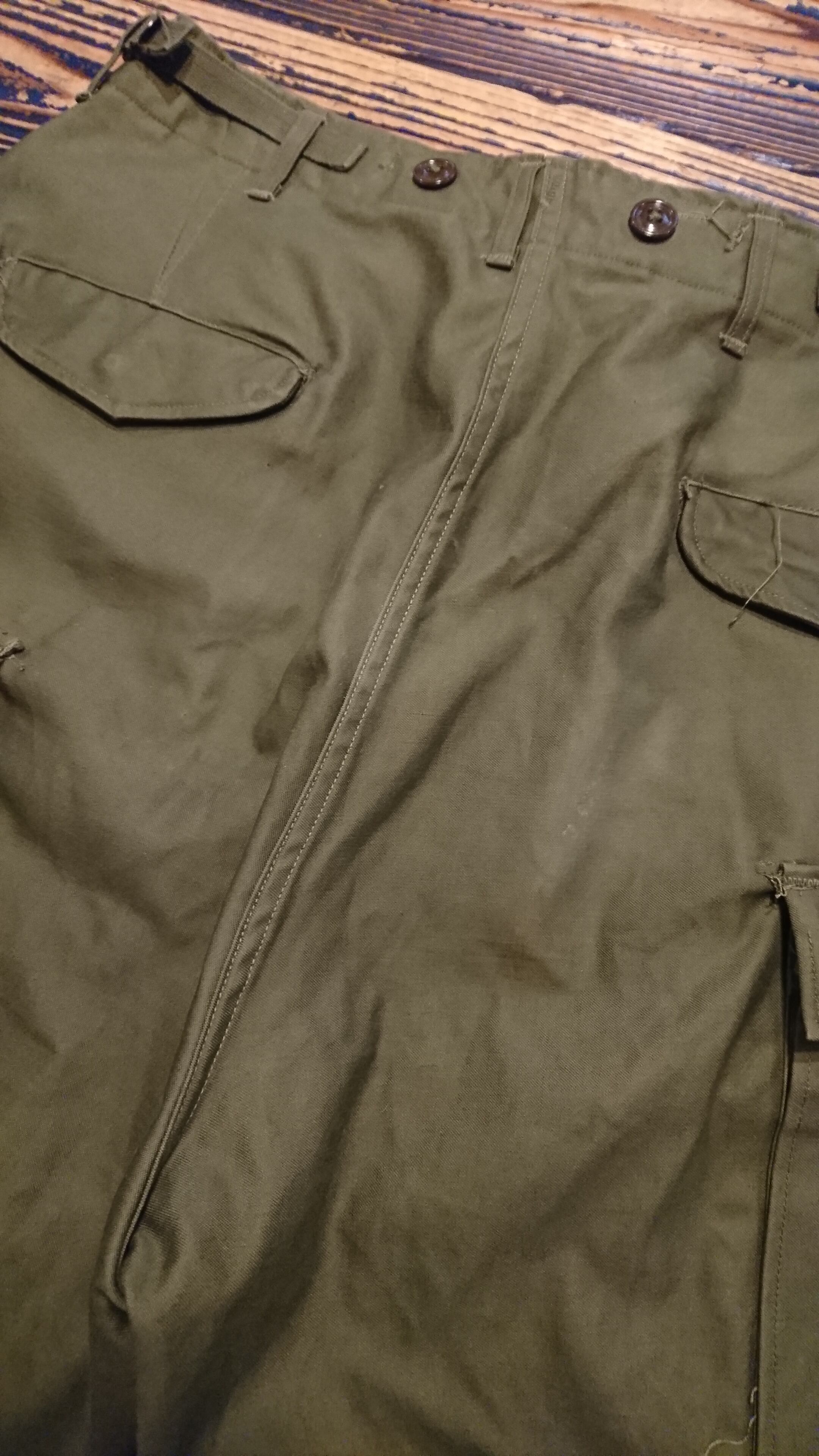 50年代 US ARMY M-1951 FIELD TROUSERSになります。1951年に採用され、後継モデルとなるM-65が登場するまで生産されてました。太めなシルエットで裾のドローコードを絞ればまた違うスタイルも楽しめます。コンディションもかなり良く