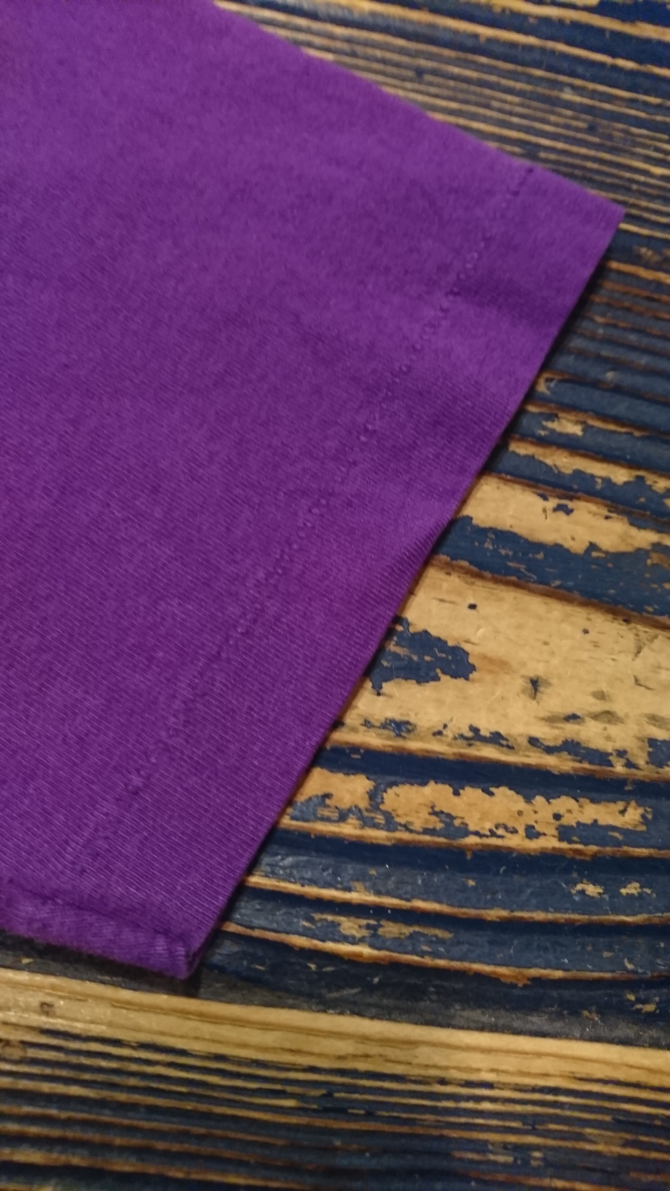 パープルボディで前後同柄。フロントに1ヶ所染み汚れがありますがその他致命的な傷はありません。お好きな方いかがでしょうか。