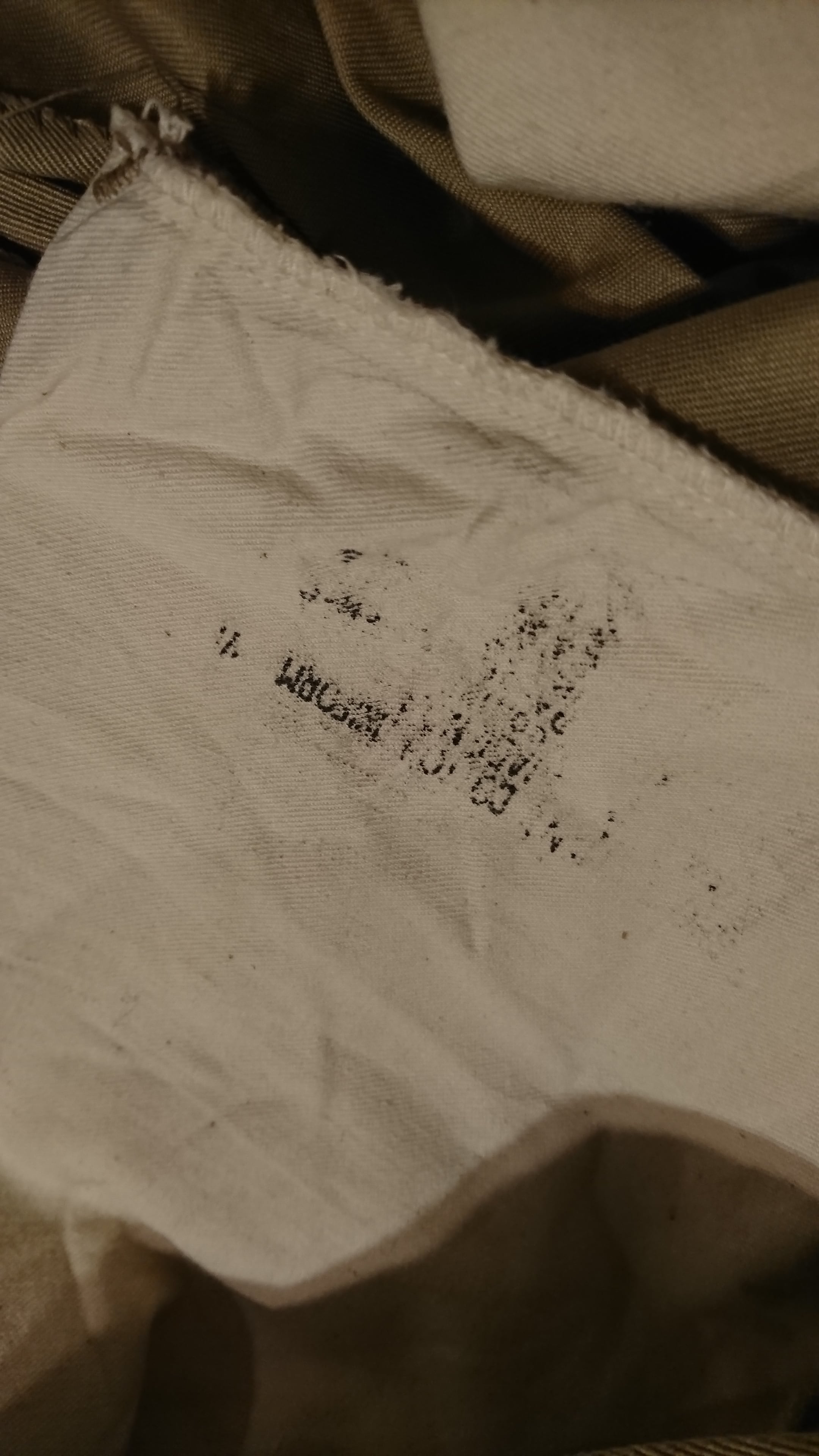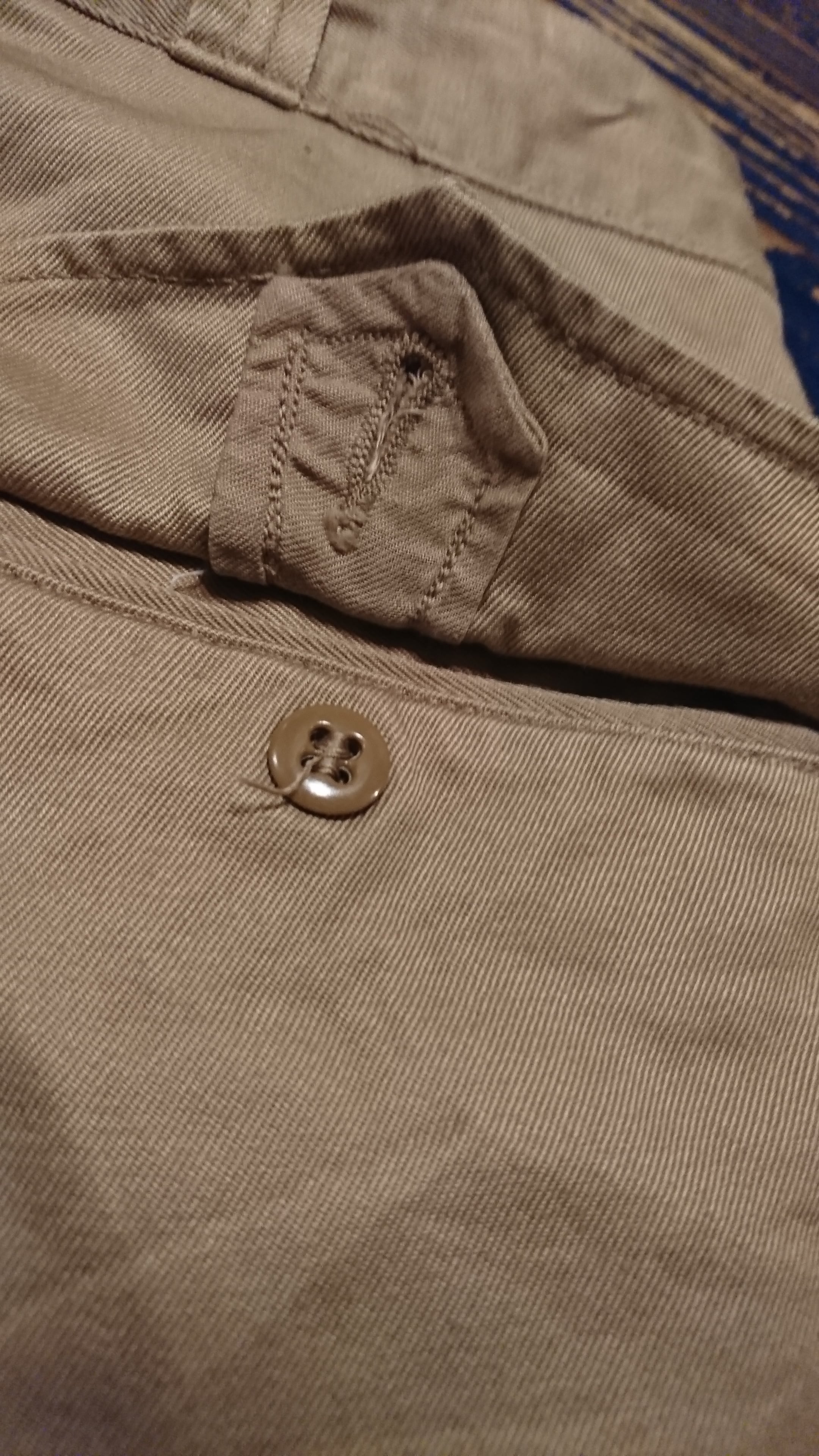 フロントはジッパー。ヒップポケットはフラップ仕様になります。左後ろに小さな染み汚れが
