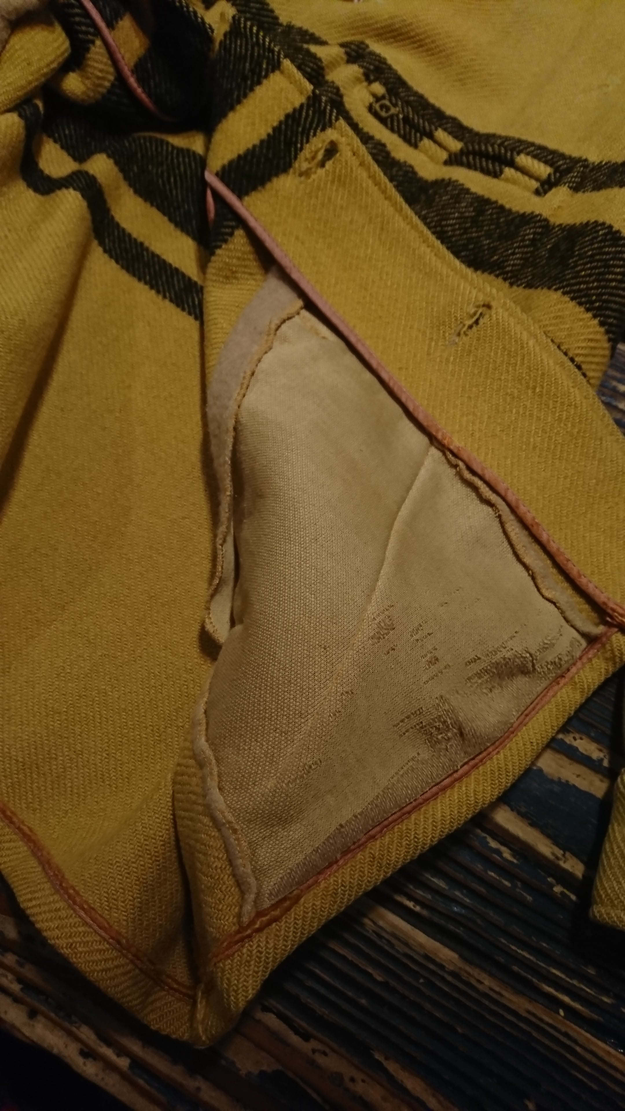 フロントはボタン。マスタードカラーで襟裏と胸元と背中にかけてぐるりでボーダー柄。