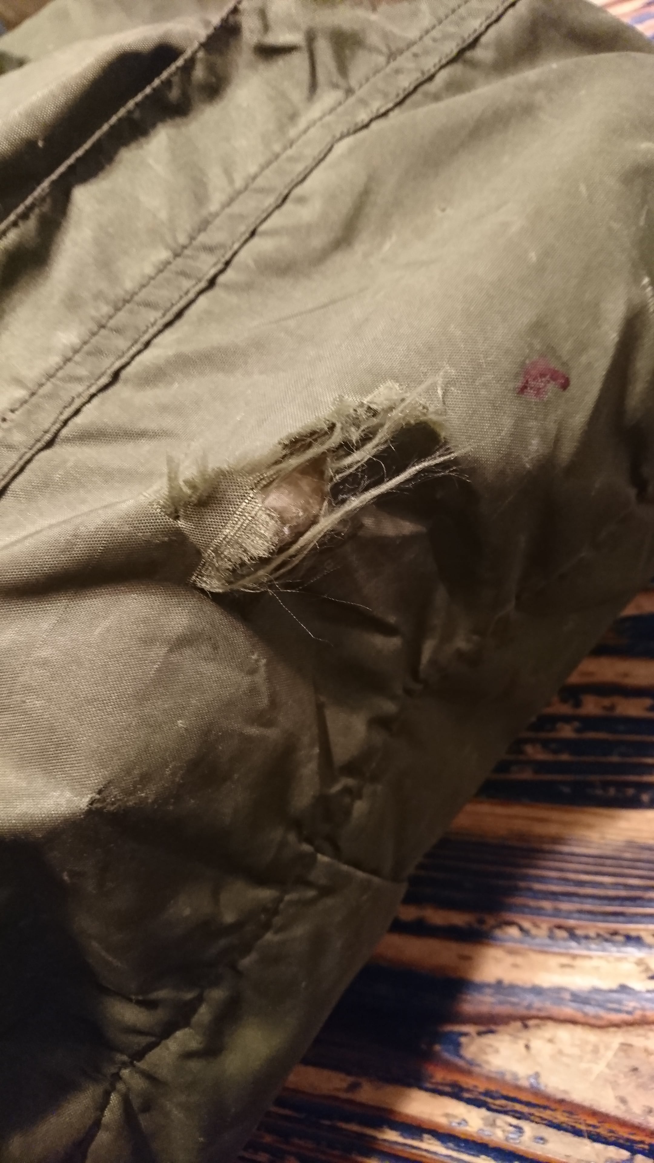 表面全体的に汚れと、底に5㎝ほどの破れがありますが中に貫通はなく、裏面のキルティングは使用感ありますが問題ありません。
