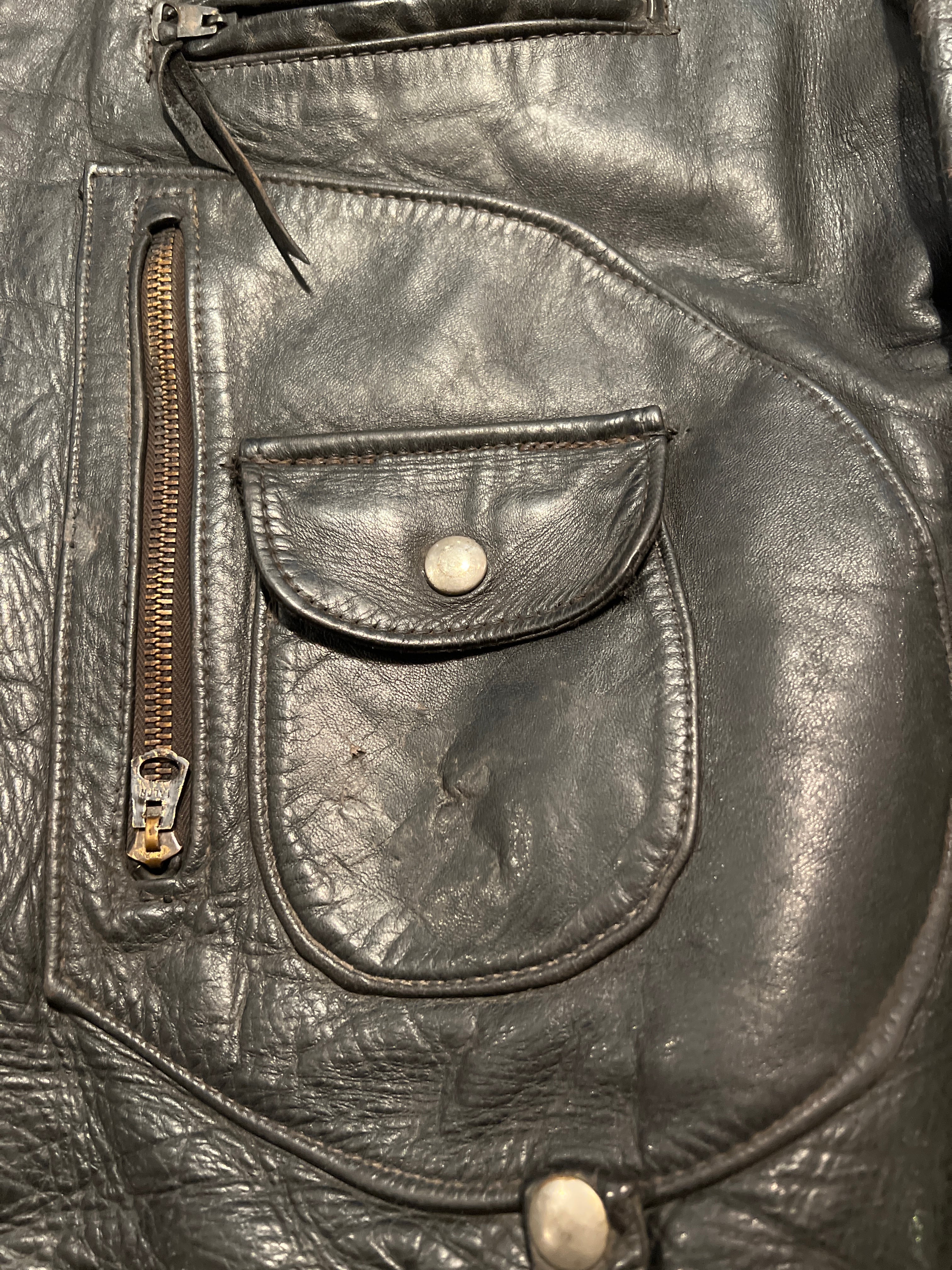 当時のペイントが、美しく残るミュージアムピースな逸品です。この様な美しい状態でペイントが70年以上も後に残るのは奇跡的な事です。何かに引っ掛けた様な傷と5mm程の小穴がございますが、革自体のコンディションがとても良く、劣化による穴ではない為、着用には問題御座いません。