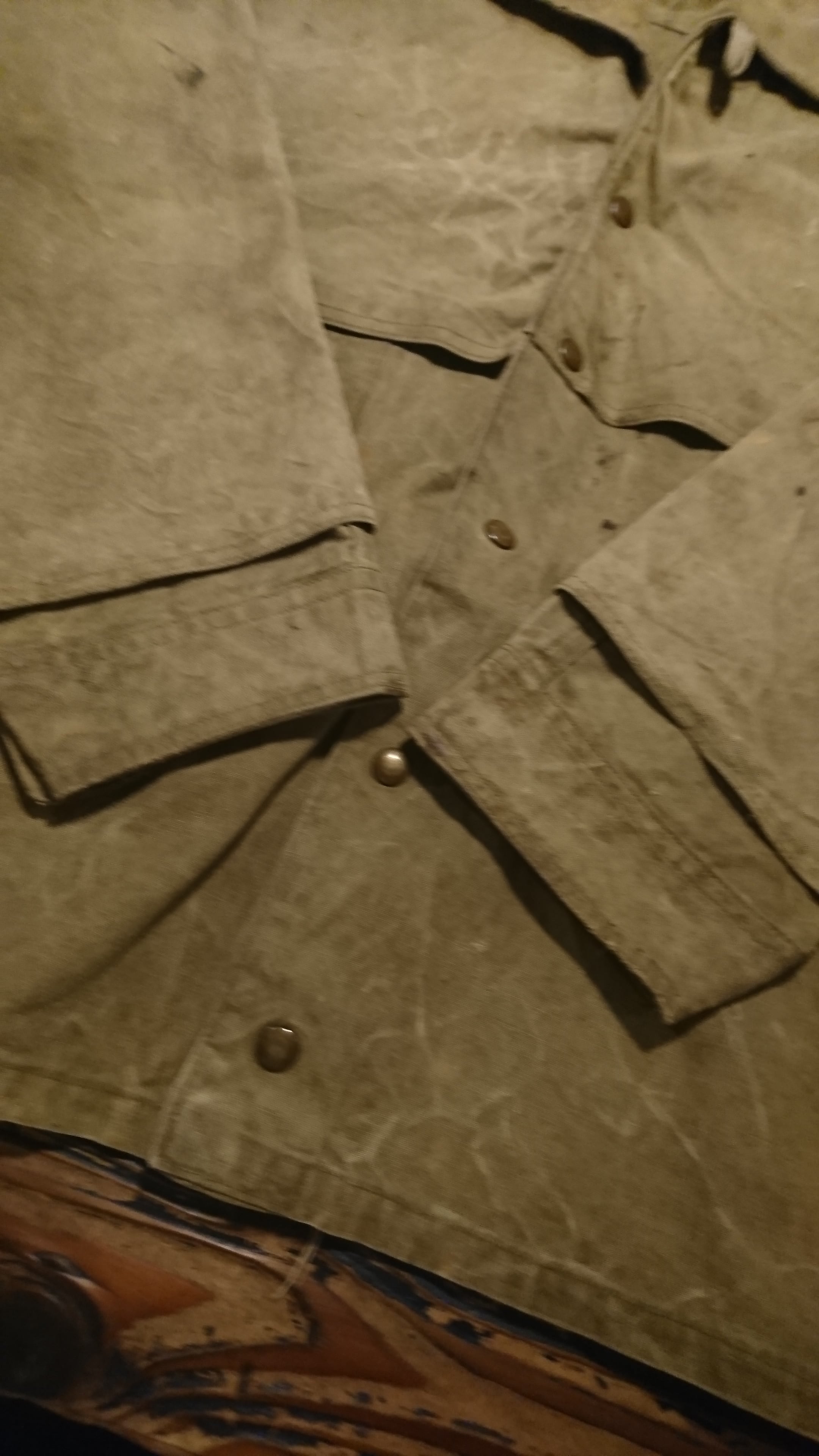 雰囲気抜群の40年代 ワックスド ダブルマッキーノジャケットになります。首もとのボタン欠損、真ん中のスナップボタンの凸が代わってますがちゃんと止めれるので着用に問題はありません。