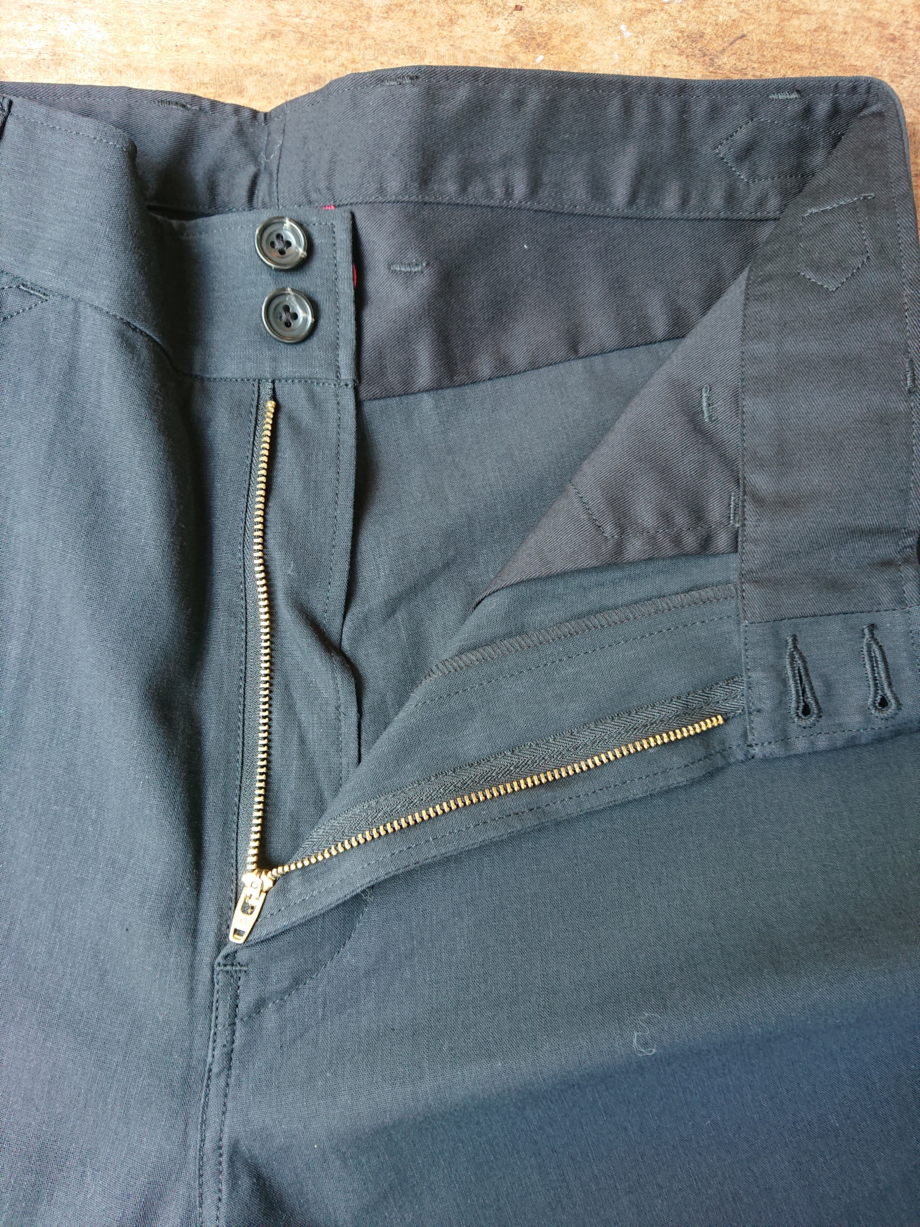 縮みについては洗濯の仕方にもよりますがウエスト2〜3㎝程度、股下3〜4㎝程度縮みがあります(乾燥機無し)。洗いをかけると糊が落ち独特の柔らかさ質感も感じ経年変化も楽しんでいただけます。