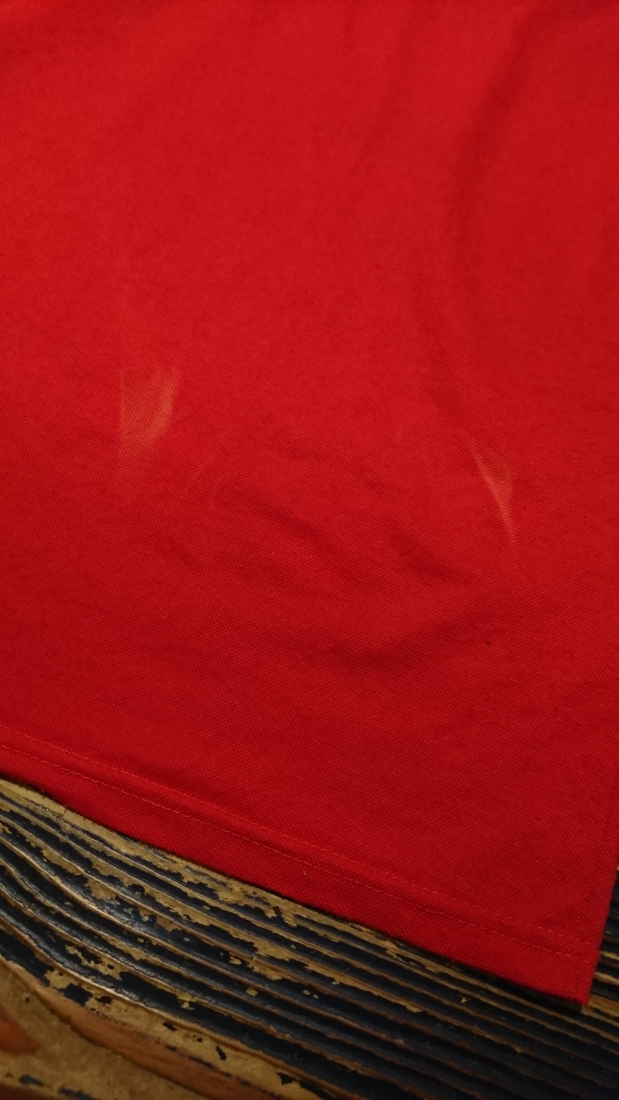 濃いめの綺麗なレッドカラーで、背中裾辺りに