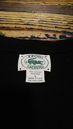 80年代 IZOD LACOSTEのアクリルカーディガンになります。カラーは人気のブラック。