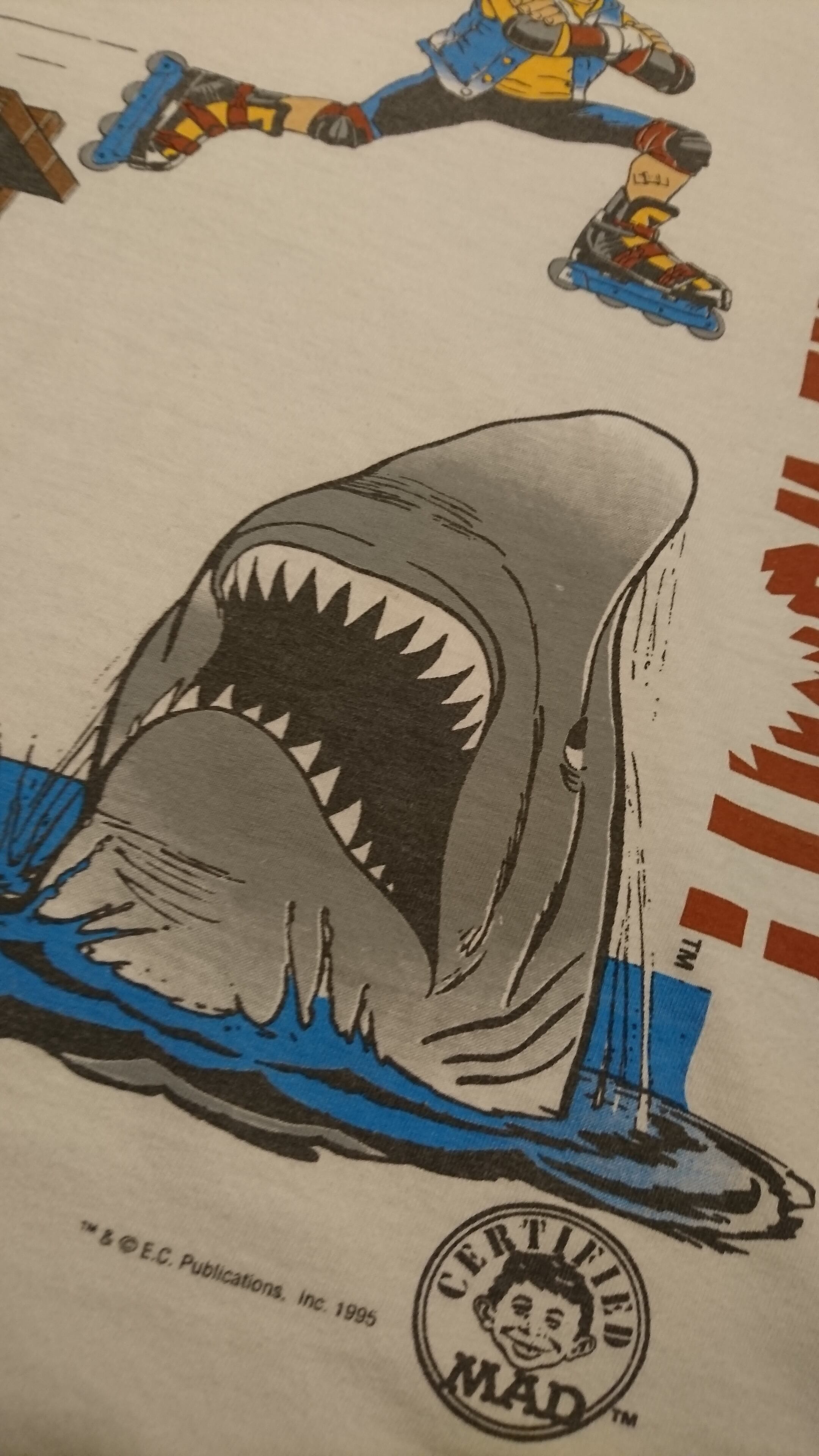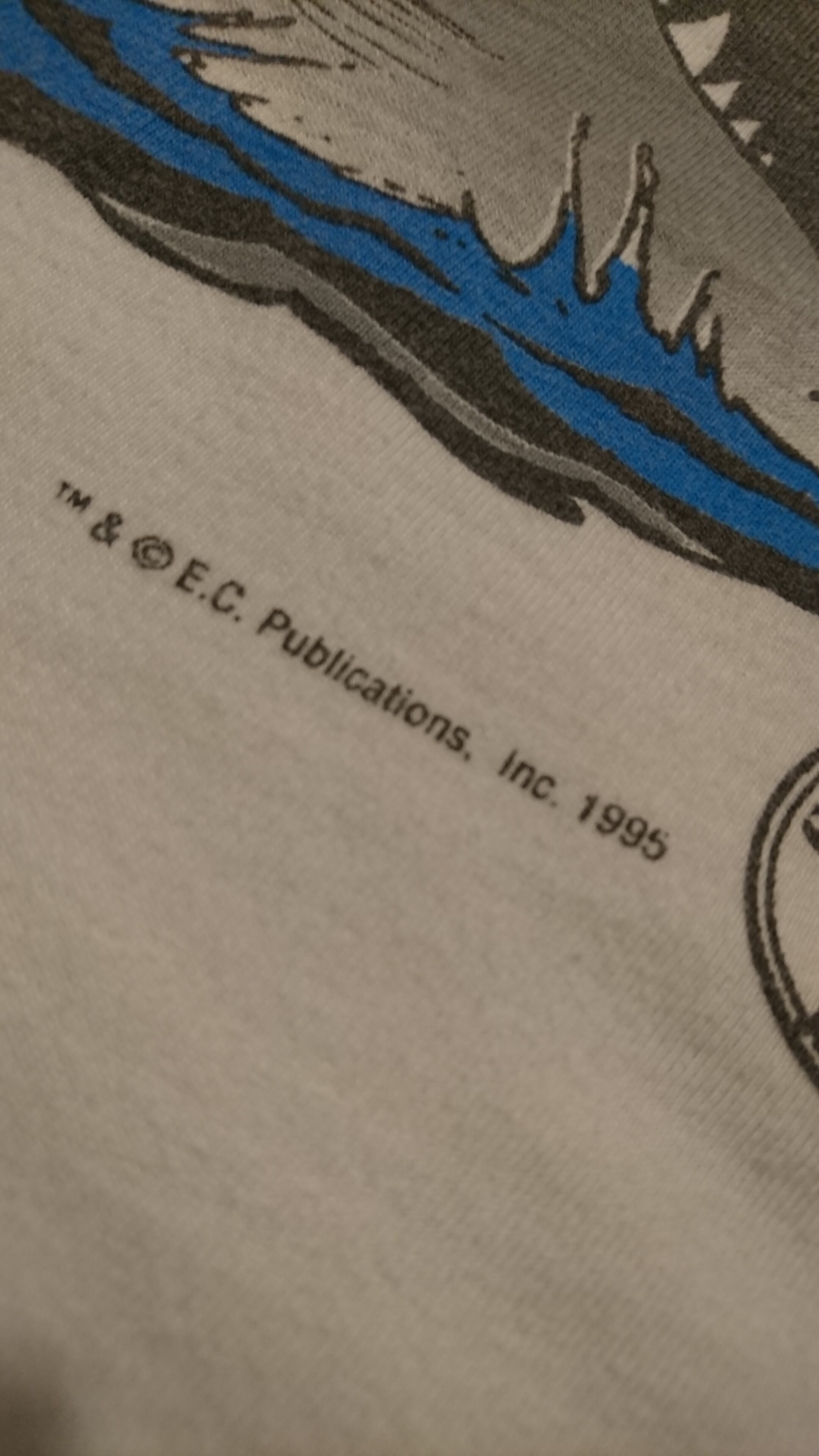 着用感あり。ネックの後ろとフロント左裾が一部抜糸してますが破れ等無く着用に問題はありません。ヴィンテージのMAD関連アイテムは人気があり集めてる方も多いと思います。サイズ合う方は是非!