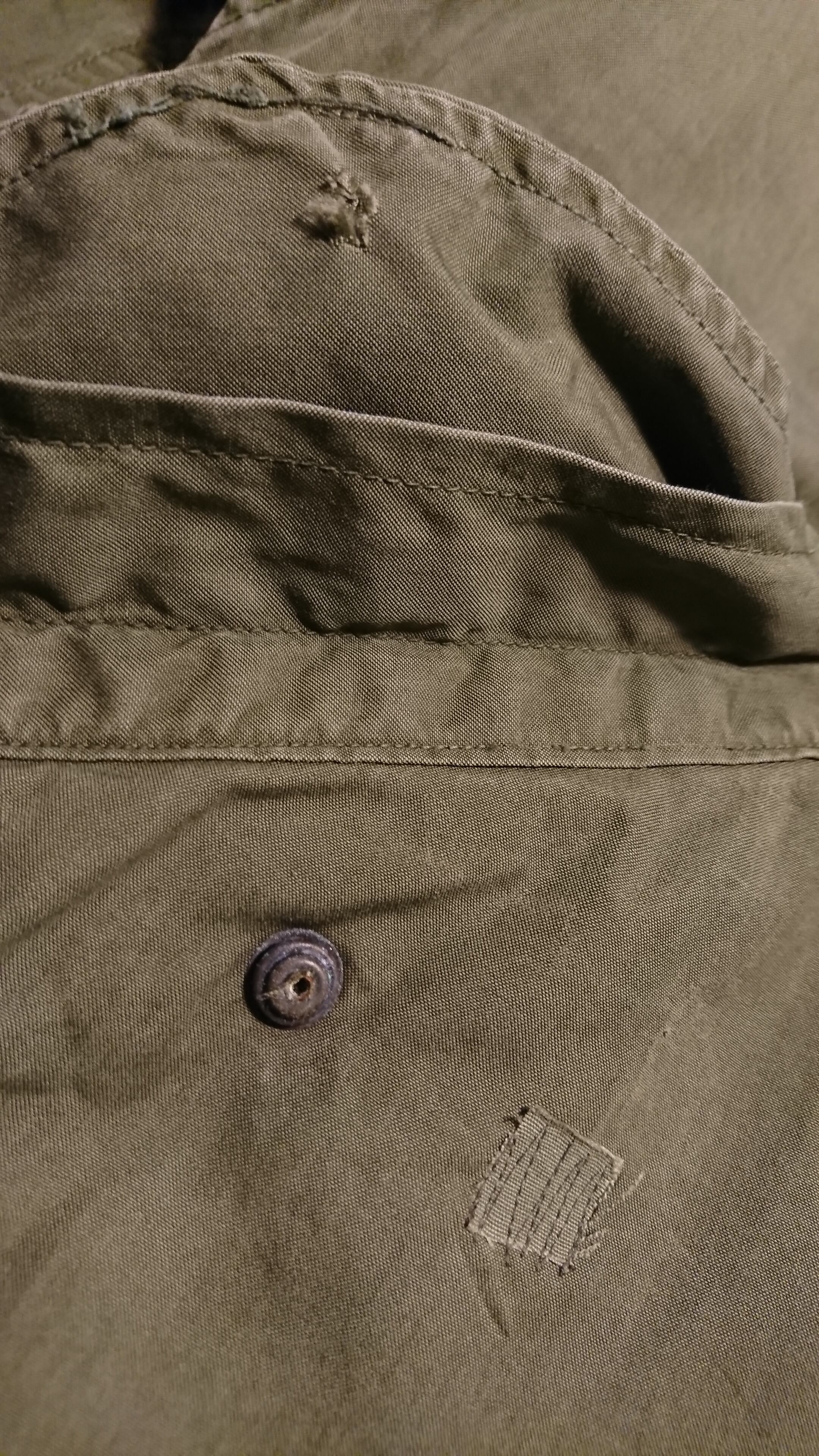 フロントのスナップは上から2番目以外は全て欠損。ジッパーもYKKに代わっています。でもこの雰囲気は他のM-65 PARKAとはかぶらないまさに