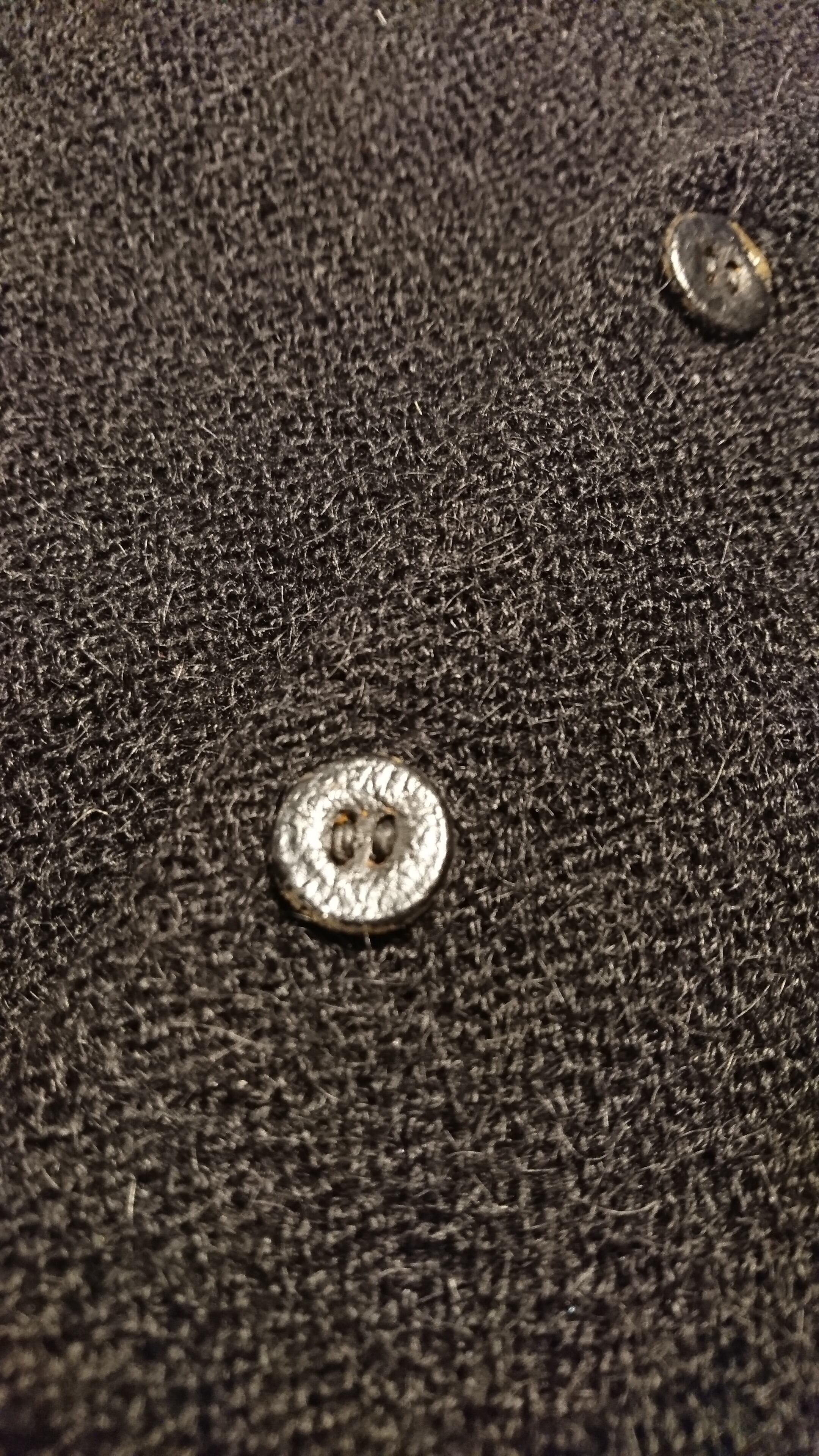 ヴィンテージのウールカーディガンになります。ブラックカラーでレザーボタンなのは魅力。