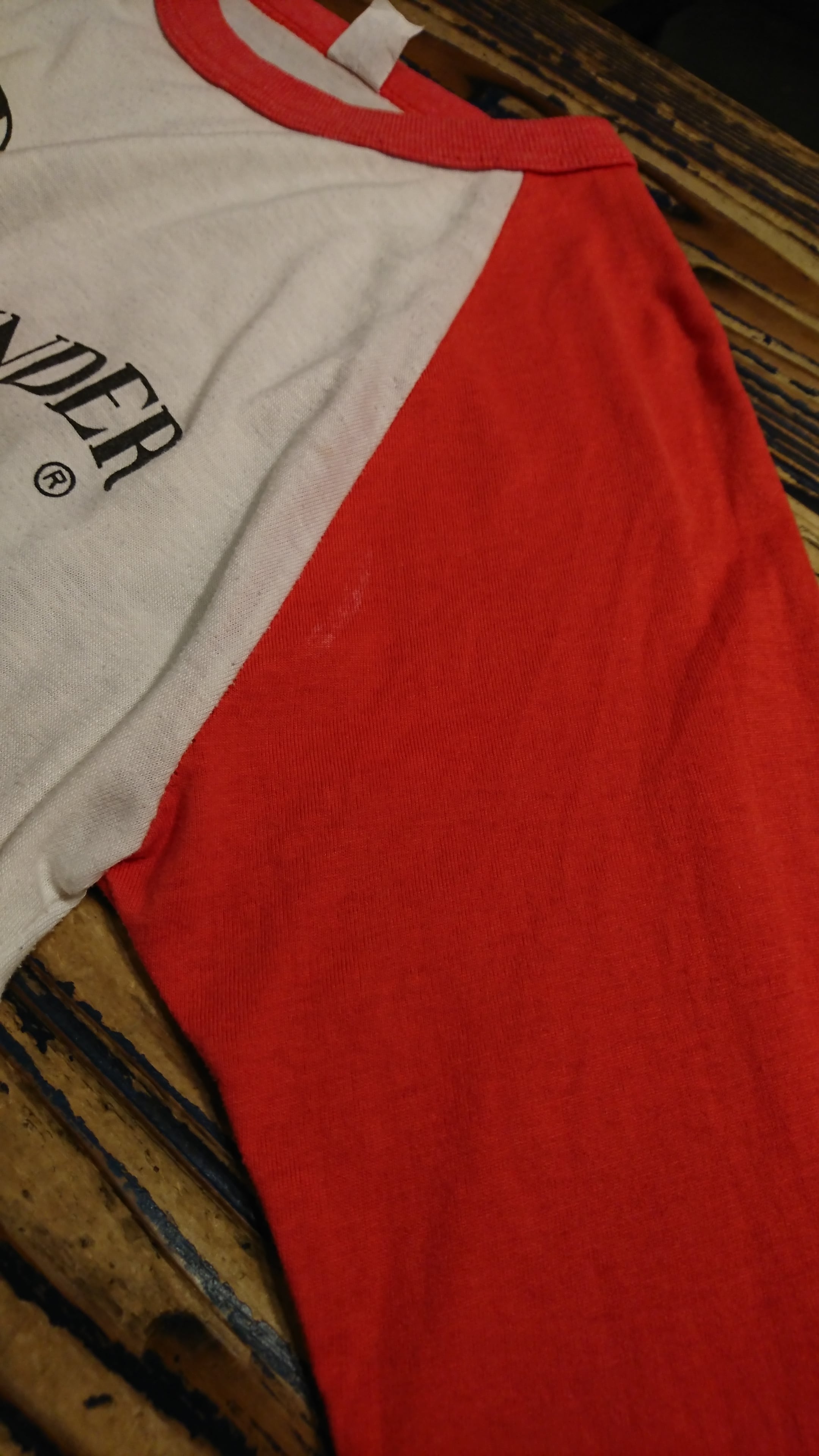 ROLLING THUNDER CYCLEのプリントが目を惹きます。ベースボールTEEのラグランスリーブ。
