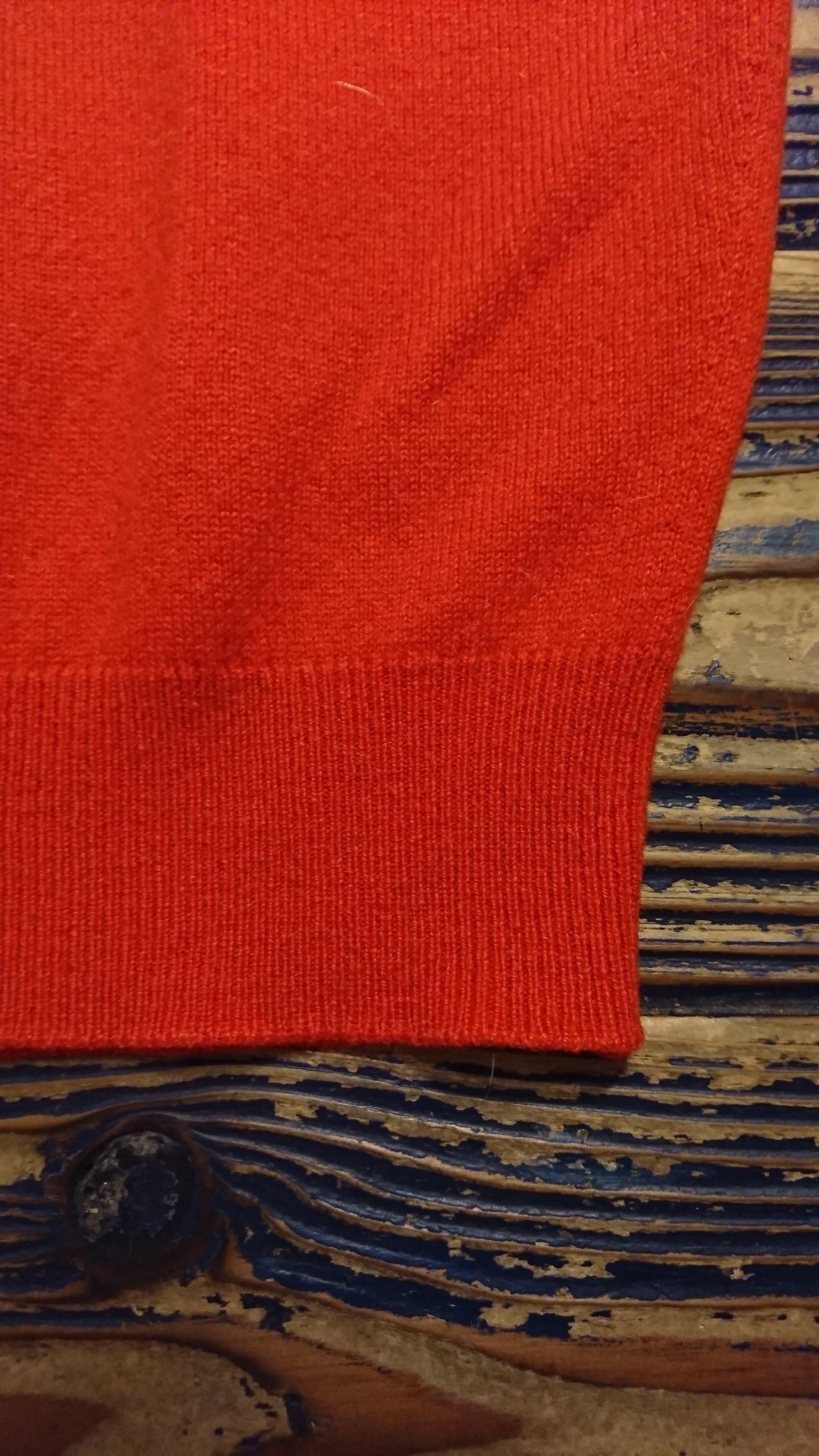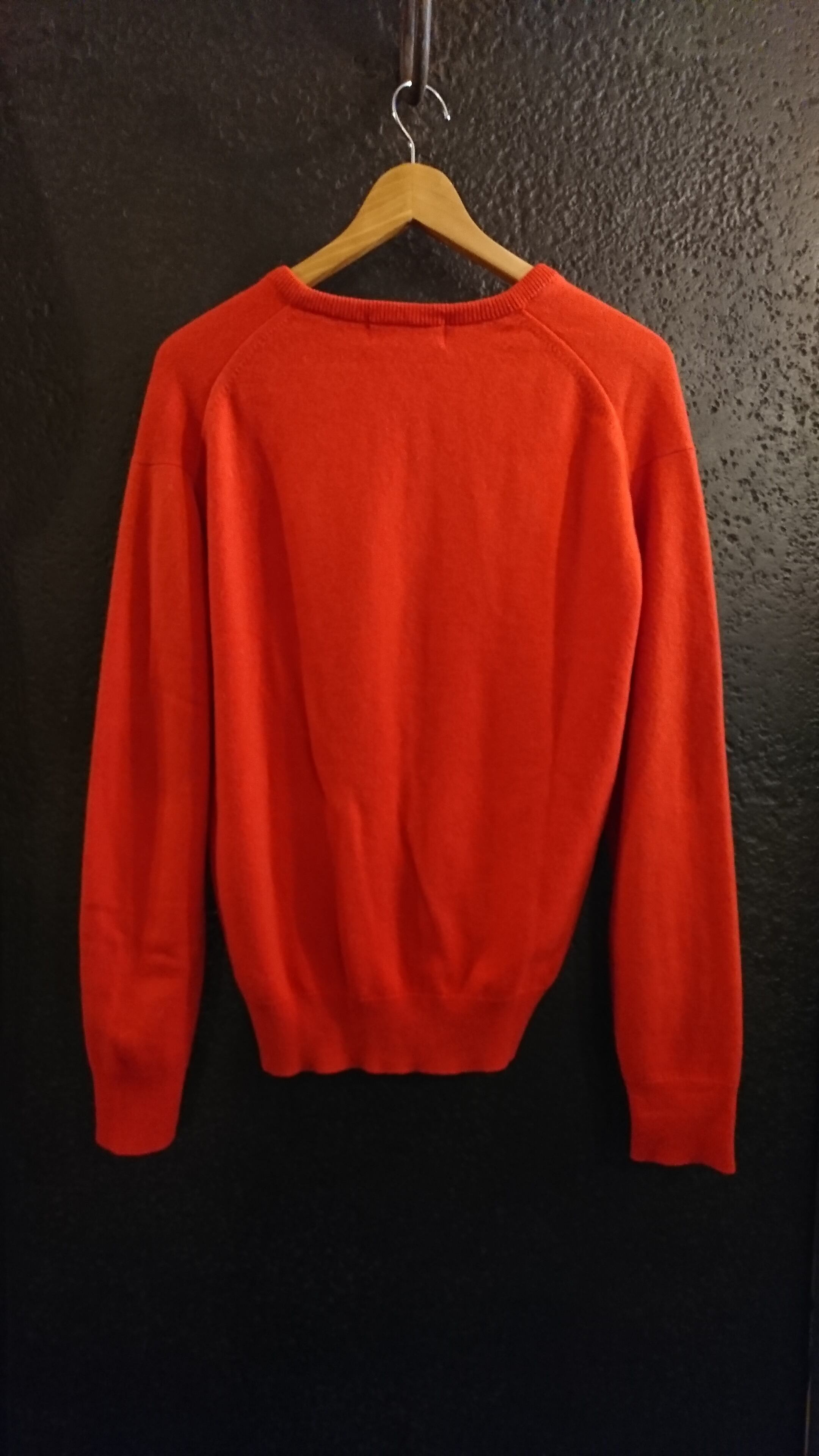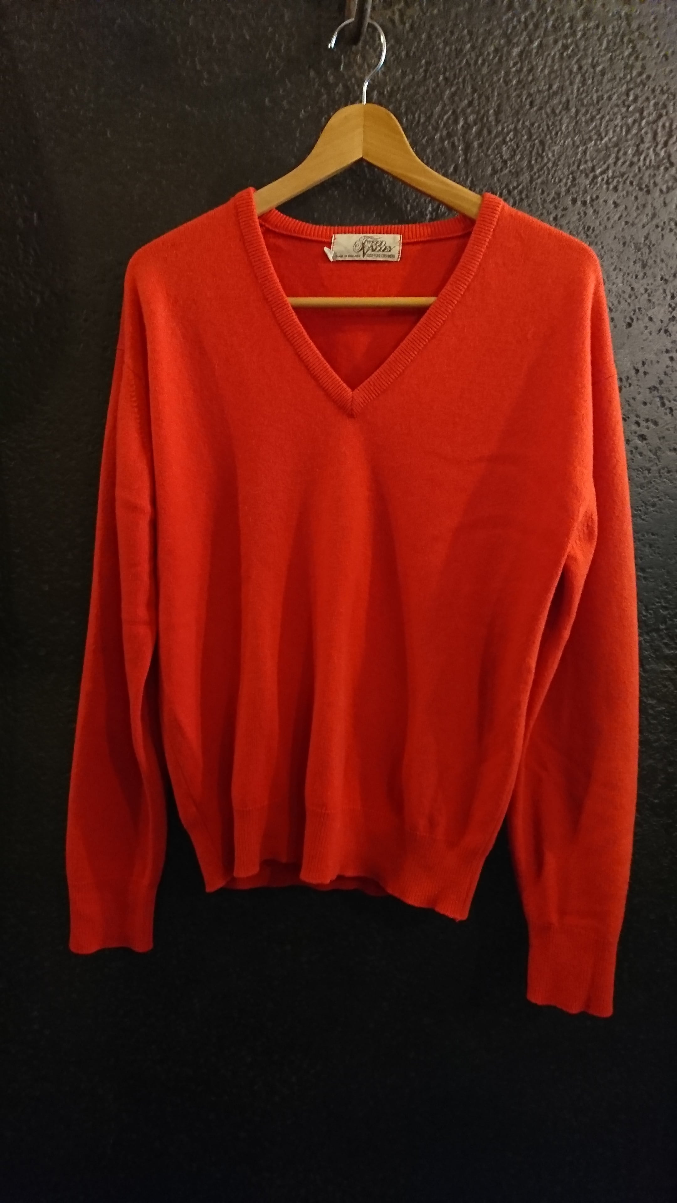 JWEED VALLEYのVネック カシミアセーターになります。赤というより朱色に近い色目。