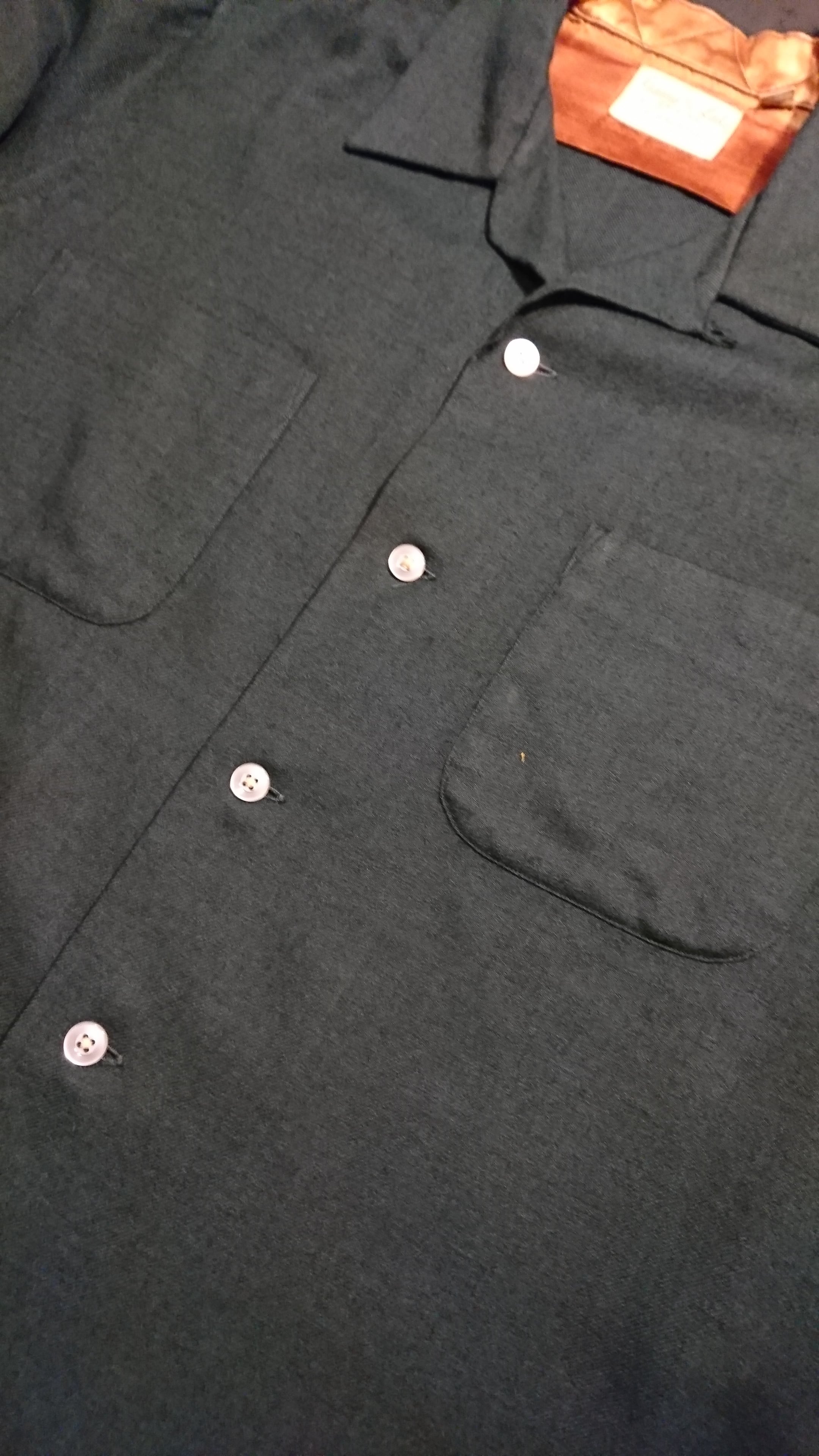 60年代 オープンカラーのウールシャツになります。ボックスタイプで深みのあるグリーンの色目。ウールですがチクチク感が少ないのも魅力。シルエット、コンディション共に良い1着です。