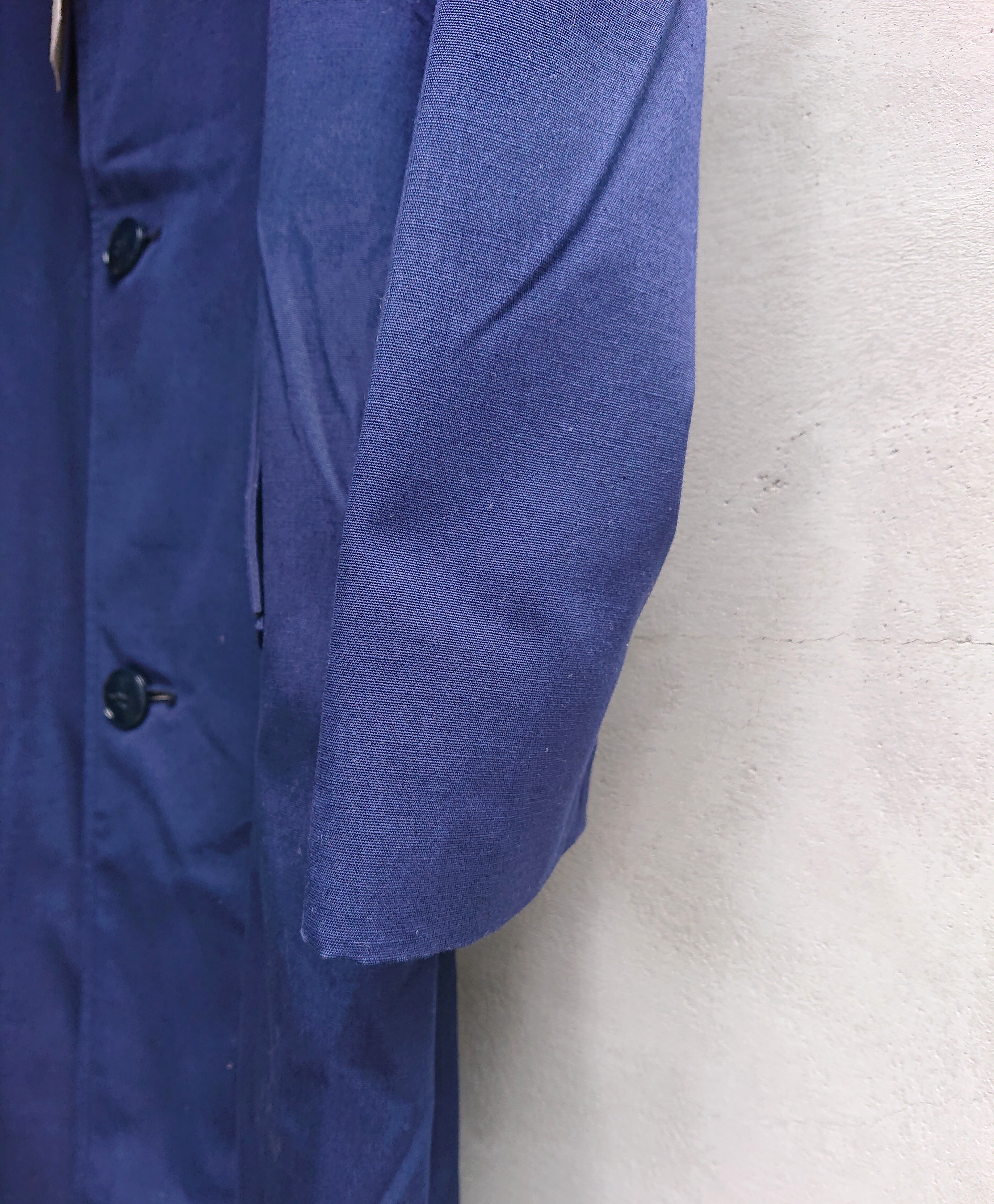 60年代 フランスミリタリーのレインコートになります。撥水加工を施したコットンバックサテン生地。ウェザークロスを使用してますので多少の撥水性もあり。同素材の裏地がつく二重構造。