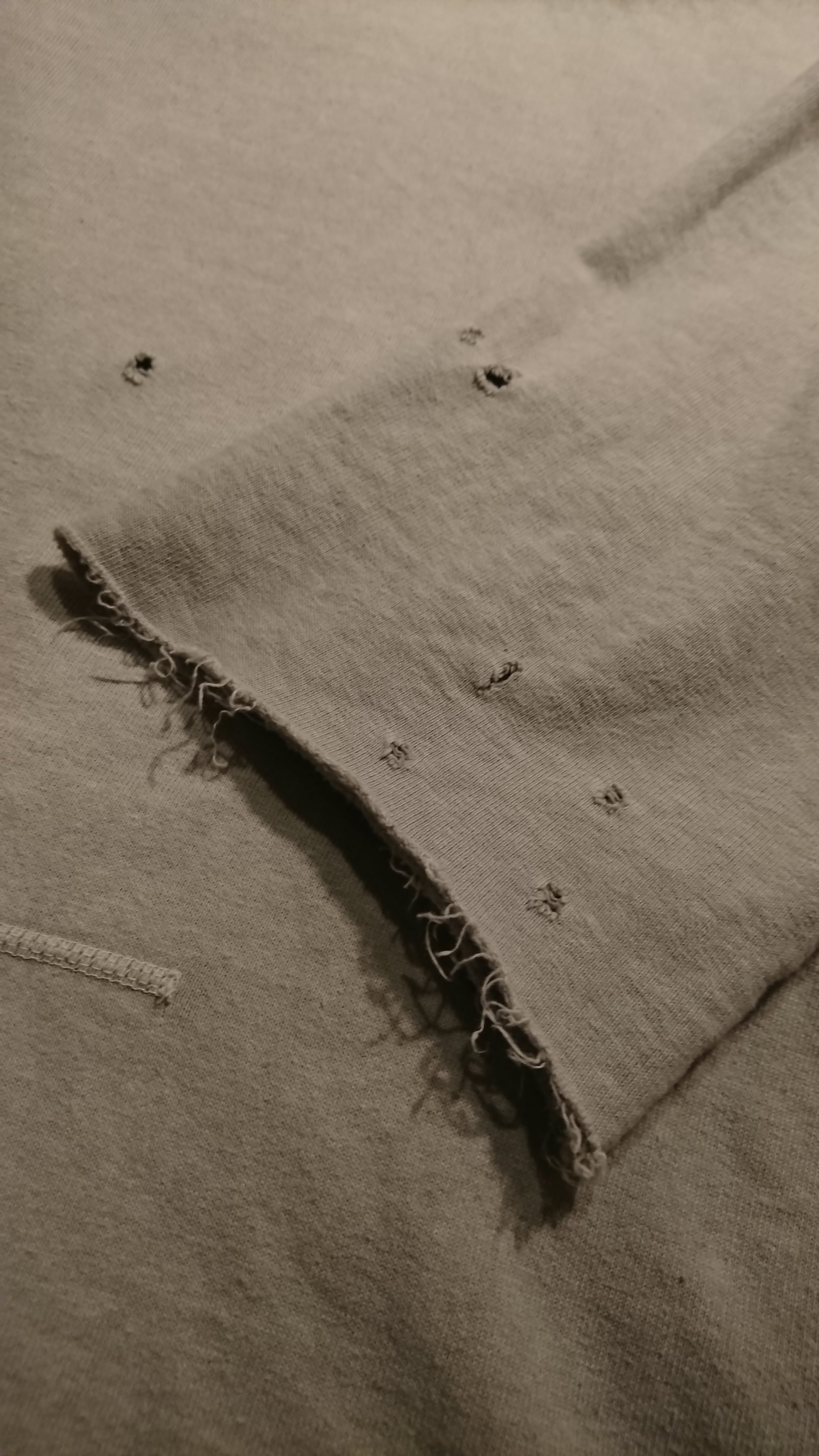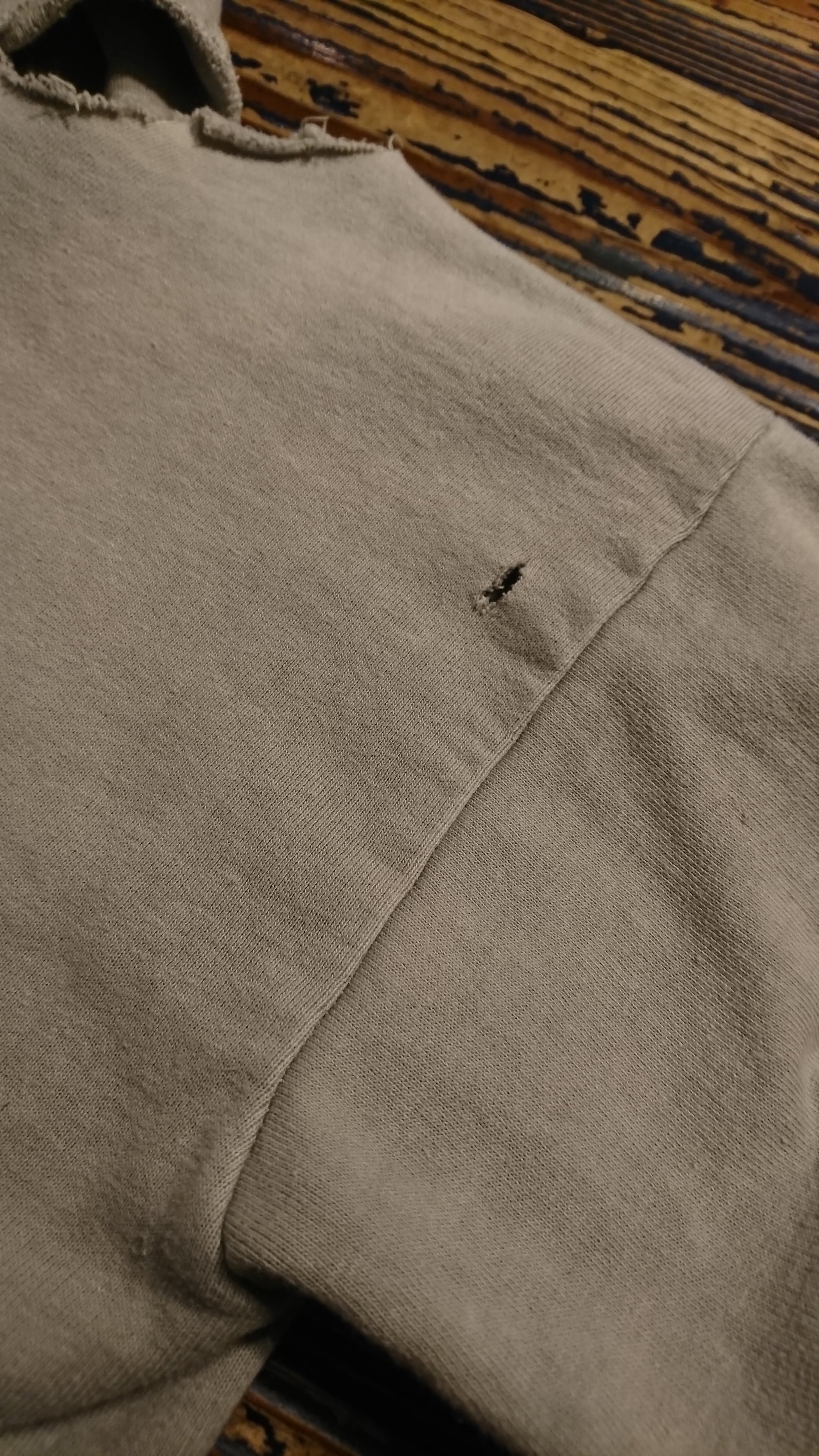 右肩のざっくりあいた所とポケットが外された跡の生地の残りやステッチ。全てにおいて抜群な雰囲気です!両袖カットオフされてるのでレイヤードでも楽しみたい1着。